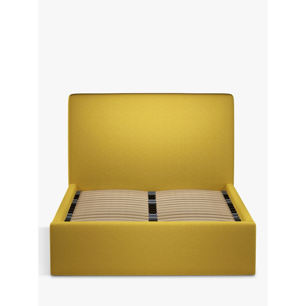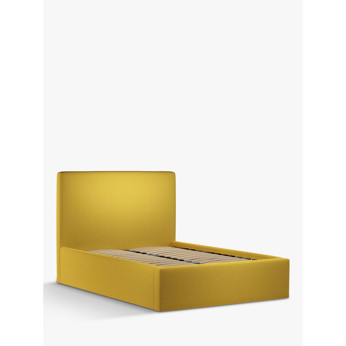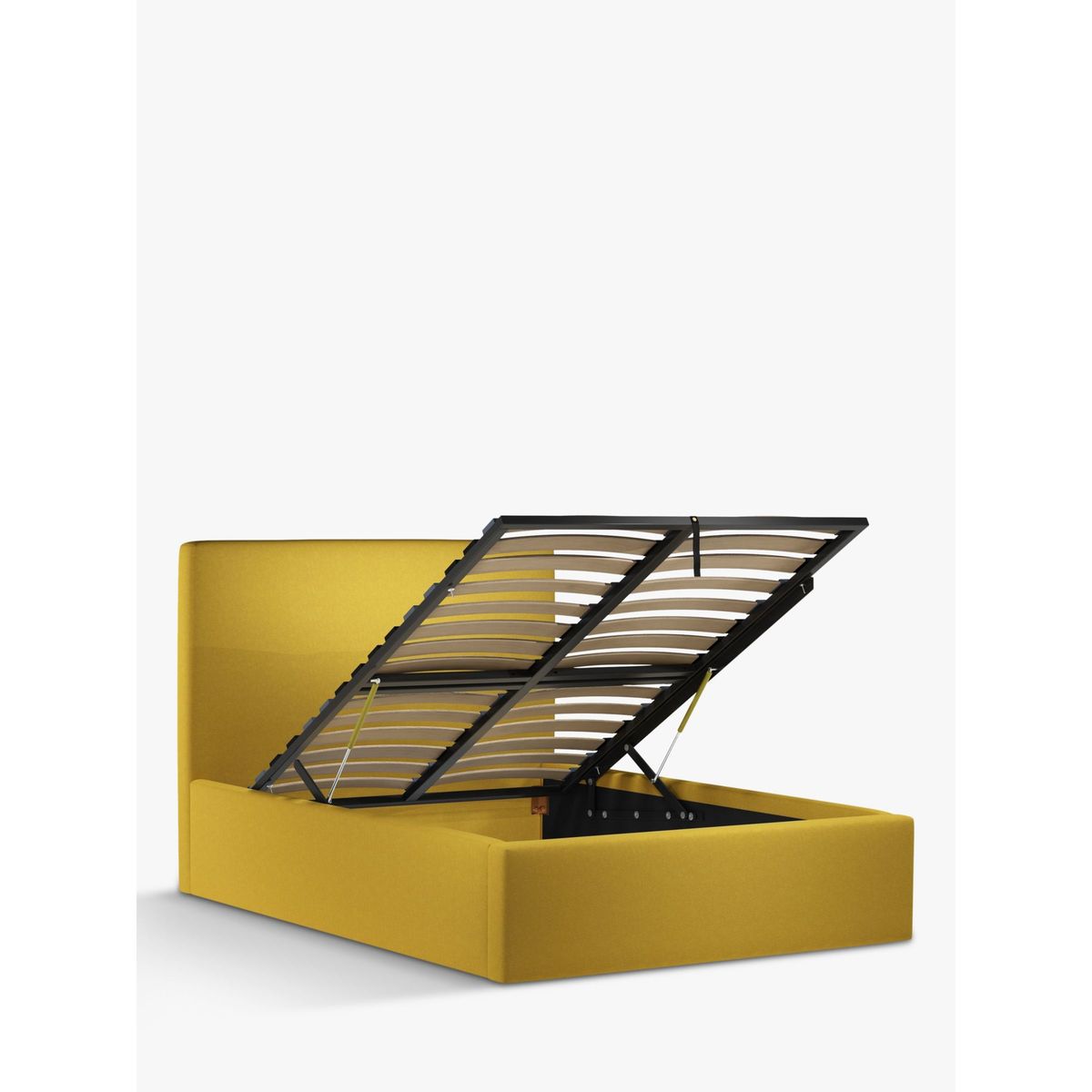 Our Emily ottoman bed frame is designed to free-up your floor space and bring a clever storage option into your bedroom. We've kept the design simple and practical, fusing clean lines with soft edges, and we've incorporated a large, well-padded headboard. With the help of hydraulic arms and a handle, it's easy to lift up the mattress to reveal a functional storage space in the base. Sprung slats provide a more supportive foundation for your mattress. Built with Smart Slats This bed frame is designed with wider slats at the shoulders, lumbar and feet. They provide maximum support for you and your mattress so that you experience perfect spinal alignment while you sleep. The standard slat caps are black so we have added grey slat caps to ensure that you know where to place the wider slats. Choose from one of our fabrics: Our Band A fabric, Canvas is a durable, textured weave that's ideal for styling with bold colours and darker shades Our Band A fabric, Topaz is woven to create a linen-effect feel, and is available in a versatile palette of colours Our Band A fabric, Saga is woven with man-made fibres, making it exceptionally durable and versatile Our Band B fabric, Erin has a velvet-style, chenille feel. It's woven with man-made fibres to create a beautifully soft yarn and can appear two-tone in different lights Our Band B fabric, Opulence is soft and luxurious like velvet and available in a rich colour palette Our Band B fabric, Mole is a soft and cosy woven wool-blend. Piling and bobbling may occur naturally over time Our Band C fabric, Marylamb is woven from both man-made and natural fibres, creating a tactile and soft-touch feel Our Band B fabric, Relaxed Linen is durable, resilient and versatile, woven from man-made and natural fibres Our Band C fabric, Aquaclean Harriet is made from a short, dense pile of velvet that has a soft, brushed finish. An Aquaclean treatment has been applied to this resilient fabric which means you can banish the majority of household stains with water. The treatment covers every fibre with an invisible coating that doesn't need to be retreated or re-coated. It will naturally develop lines, scuffs and shading over time Want to see it first? You may want to see and get a feel for the furniture before ordering. Pop into one of our shops to see the full range of colours and fabrics on offer. We'll be able to tell you where the range you'd like to view is on display.