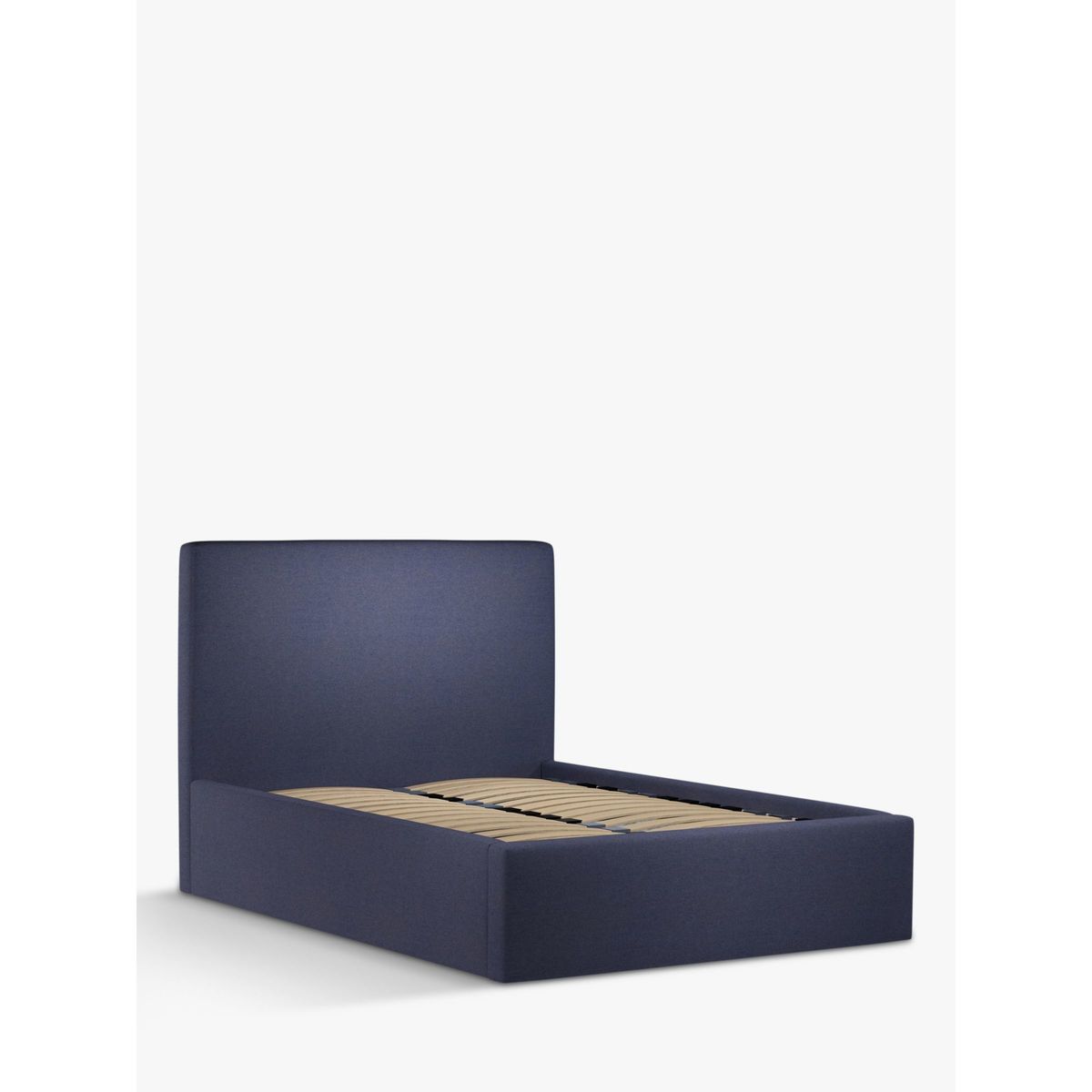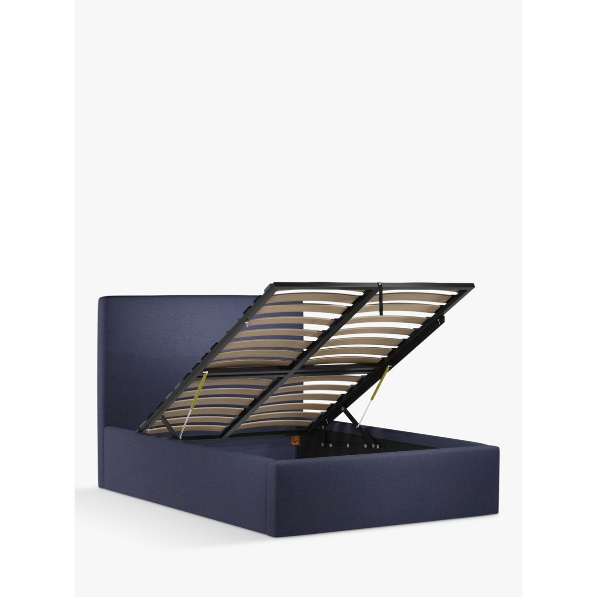 Our Emily ottoman bed frame is designed to free-up your floor space and bring a clever storage option into your bedroom. We've kept the design simple and practical, fusing clean lines with soft edges, and we've incorporated a large, well-padded headboard. With the help of hydraulic arms and a handle, it's easy to lift up the mattress to reveal a functional storage space in the base. Sprung slats provide a more supportive foundation for your mattress. Built with Smart Slats This bed frame is designed with wider slats at the shoulders, lumbar and feet. They provide maximum support for you and your mattress so that you experience perfect spinal alignment while you sleep. The standard slat caps are black so we have added grey slat caps to ensure that you know where to place the wider slats. Choose from one of our fabrics: Our Band A fabric, Canvas is a durable, textured weave that's ideal for styling with bold colours and darker shades Our Band A fabric, Topaz is woven to create a linen-effect feel, and is available in a versatile palette of colours Our Band A fabric, Saga is woven with man-made fibres, making it exceptionally durable and versatile Our Band B fabric, Erin has a velvet-style, chenille feel. It's woven with man-made fibres to create a beautifully soft yarn and can appear two-tone in different lights Our Band B fabric, Opulence is soft and luxurious like velvet and available in a rich colour palette Our Band B fabric, Mole is a soft and cosy woven wool-blend. Piling and bobbling may occur naturally over time Our Band C fabric, Marylamb is woven from both man-made and natural fibres, creating a tactile and soft-touch feel Our Band B fabric, Relaxed Linen is durable, resilient and versatile, woven from man-made and natural fibres Our Band C fabric, Aquaclean Harriet is made from a short, dense pile of velvet that has a soft, brushed finish. An Aquaclean treatment has been applied to this resilient fabric which means you can banish the majority of household stains with water. The treatment covers every fibre with an invisible coating that doesn't need to be retreated or re-coated. It will naturally develop lines, scuffs and shading over time Want to see it first? You may want to see and get a feel for the furniture before ordering. Pop into one of our shops to see the full range of colours and fabrics on offer. We'll be able to tell you where the range you'd like to view is on display.