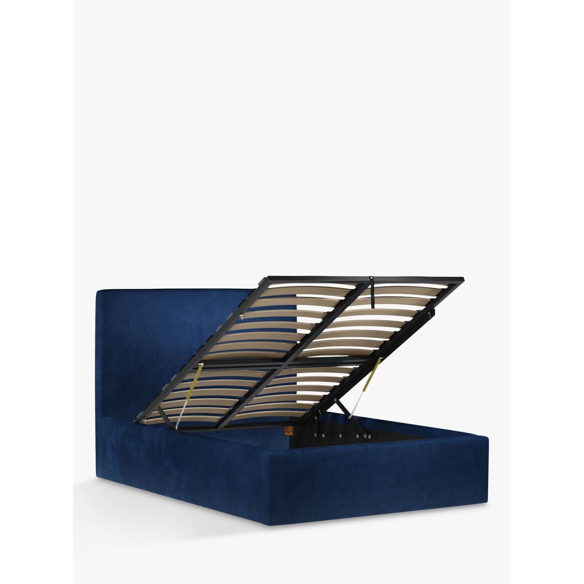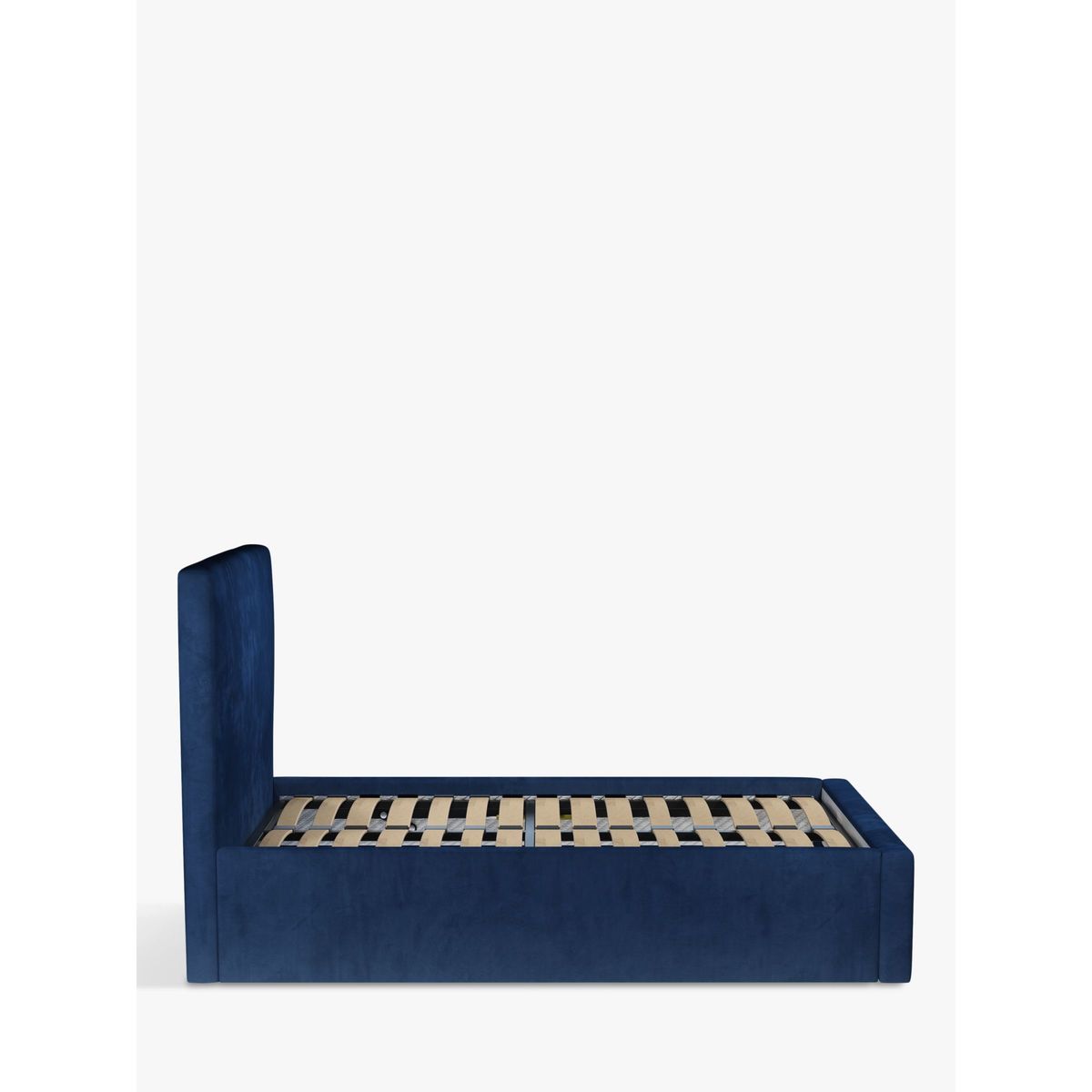 Our Emily ottoman bed frame is designed to free-up your floor space and bring a clever storage option into your bedroom. We've kept the design simple and practical, fusing clean lines with soft edges, and we've incorporated a large, well-padded headboard. With the help of hydraulic arms and a handle, it's easy to lift up the mattress to reveal a functional storage space in the base. Sprung slats provide a more supportive foundation for your mattress. Built with Smart Slats This bed frame is designed with wider slats at the shoulders, lumbar and feet. They provide maximum support for you and your mattress so that you experience perfect spinal alignment while you sleep. The standard slat caps are black so we have added grey slat caps to ensure that you know where to place the wider slats. Choose from one of our fabrics: Our Band A fabric, Canvas is a durable, textured weave that's ideal for styling with bold colours and darker shades Our Band A fabric, Topaz is woven to create a linen-effect feel, and is available in a versatile palette of colours Our Band A fabric, Saga is woven with man-made fibres, making it exceptionally durable and versatile Our Band B fabric, Erin has a velvet-style, chenille feel. It's woven with man-made fibres to create a beautifully soft yarn and can appear two-tone in different lights Our Band B fabric, Opulence is soft and luxurious like velvet and available in a rich colour palette Our Band B fabric, Mole is a soft and cosy woven wool-blend. Piling and bobbling may occur naturally over time Our Band C fabric, Marylamb is woven from both man-made and natural fibres, creating a tactile and soft-touch feel Our Band B fabric, Relaxed Linen is durable, resilient and versatile, woven from man-made and natural fibres Our Band C fabric, Aquaclean Harriet is made from a short, dense pile of velvet that has a soft, brushed finish. An Aquaclean treatment has been applied to this resilient fabric which means you can banish the majority of household stains with water. The treatment covers every fibre with an invisible coating that doesn't need to be retreated or re-coated. It will naturally develop lines, scuffs and shading over time Want to see it first? You may want to see and get a feel for the furniture before ordering. Pop into one of our shops to see the full range of colours and fabrics on offer. We'll be able to tell you where the range you'd like to view is on display.