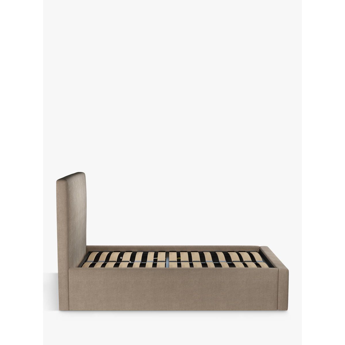 Our Emily ottoman bed frame is designed to free-up your floor space and bring a clever storage option into your bedroom. We've kept the design simple and practical, fusing clean lines with soft edges, and we've incorporated a large, well-padded headboard. With the help of hydraulic arms and a handle, it's easy to lift up the mattress to reveal a functional storage space in the base. Sprung slats provide a more supportive foundation for your mattress. Built with Smart Slats This bed frame is designed with wider slats at the shoulders, lumbar and feet. They provide maximum support for you and your mattress so that you experience perfect spinal alignment while you sleep. The standard slat caps are black so we have added grey slat caps to ensure that you know where to place the wider slats. Choose from one of our fabrics: Our Band A fabric, Canvas is a durable, textured weave that's ideal for styling with bold colours and darker shades Our Band A fabric, Topaz is woven to create a linen-effect feel, and is available in a versatile palette of colours Our Band A fabric, Saga is woven with man-made fibres, making it exceptionally durable and versatile Our Band B fabric, Erin has a velvet-style, chenille feel. It's woven with man-made fibres to create a beautifully soft yarn and can appear two-tone in different lights Our Band B fabric, Opulence is soft and luxurious like velvet and available in a rich colour palette Our Band B fabric, Mole is a soft and cosy woven wool-blend. Piling and bobbling may occur naturally over time Our Band C fabric, Marylamb is woven from both man-made and natural fibres, creating a tactile and soft-touch feel Our Band B fabric, Relaxed Linen is durable, resilient and versatile, woven from man-made and natural fibres Our Band C fabric, Aquaclean Harriet is made from a short, dense pile of velvet that has a soft, brushed finish. An Aquaclean treatment has been applied to this resilient fabric which means you can banish the majority of household stains with water. The treatment covers every fibre with an invisible coating that doesn't need to be retreated or re-coated. It will naturally develop lines, scuffs and shading over time Want to see it first? You may want to see and get a feel for the furniture before ordering. Pop into one of our shops to see the full range of colours and fabrics on offer. We'll be able to tell you where the range you'd like to view is on display.