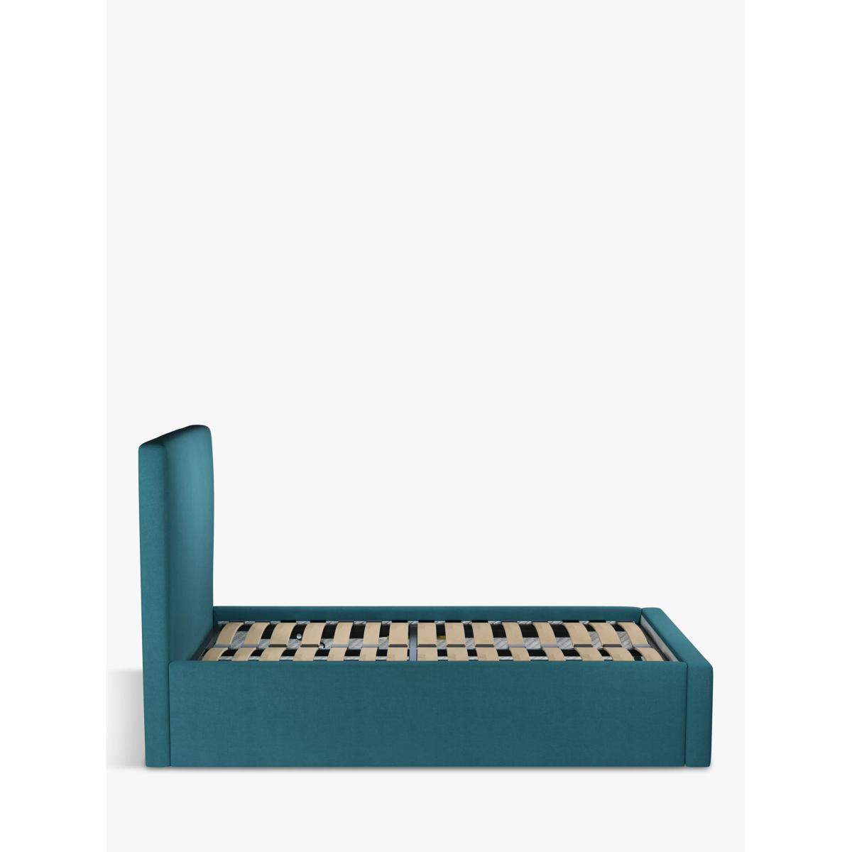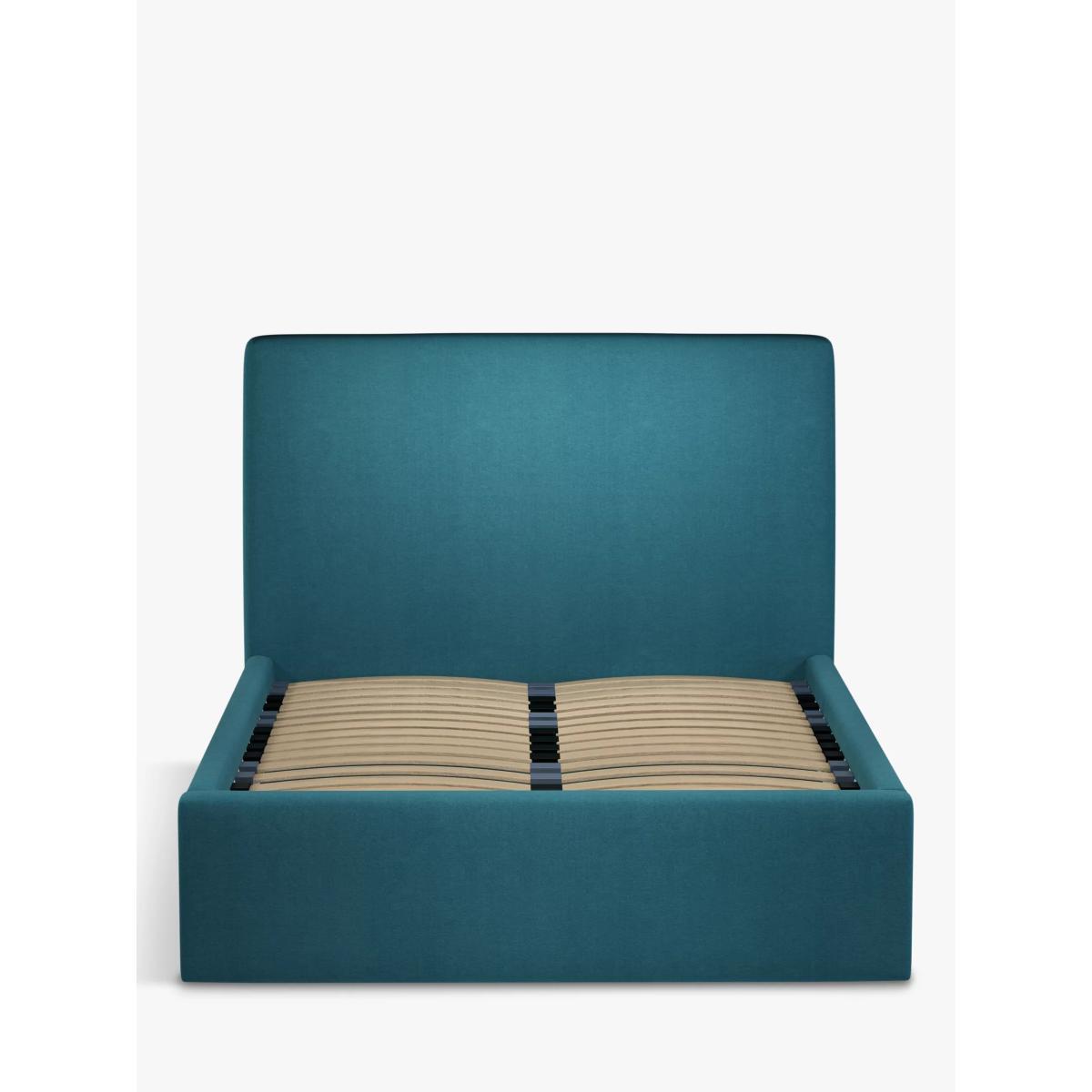 Our Emily ottoman bed frame is designed to free-up your floor space and bring a clever storage option into your bedroom. We've kept the design simple and practical, fusing clean lines with soft edges, and we've incorporated a large, well-padded headboard. With the help of hydraulic arms and a handle, it's easy to lift up the mattress to reveal a functional storage space in the base. Sprung slats provide a more supportive foundation for your mattress. Built with Smart Slats This bed frame is designed with wider slats at the shoulders, lumbar and feet. They provide maximum support for you and your mattress so that you experience perfect spinal alignment while you sleep. The standard slat caps are black so we have added grey slat caps to ensure that you know where to place the wider slats. Choose from one of our fabrics: Our Band A fabric, Canvas is a durable, textured weave that's ideal for styling with bold colours and darker shades Our Band A fabric, Topaz is woven to create a linen-effect feel, and is available in a versatile palette of colours Our Band A fabric, Saga is woven with man-made fibres, making it exceptionally durable and versatile Our Band B fabric, Erin has a velvet-style, chenille feel. It's woven with man-made fibres to create a beautifully soft yarn and can appear two-tone in different lights Our Band B fabric, Opulence is soft and luxurious like velvet and available in a rich colour palette Our Band B fabric, Mole is a soft and cosy woven wool-blend. Piling and bobbling may occur naturally over time Our Band C fabric, Marylamb is woven from both man-made and natural fibres, creating a tactile and soft-touch feel Our Band B fabric, Relaxed Linen is durable, resilient and versatile, woven from man-made and natural fibres Our Band C fabric, Aquaclean Harriet is made from a short, dense pile of velvet that has a soft, brushed finish. An Aquaclean treatment has been applied to this resilient fabric which means you can banish the majority of household stains with water. The treatment covers every fibre with an invisible coating that doesn't need to be retreated or re-coated. It will naturally develop lines, scuffs and shading over time Want to see it first? You may want to see and get a feel for the furniture before ordering. Pop into one of our shops to see the full range of colours and fabrics on offer. We'll be able to tell you where the range you'd like to view is on display.