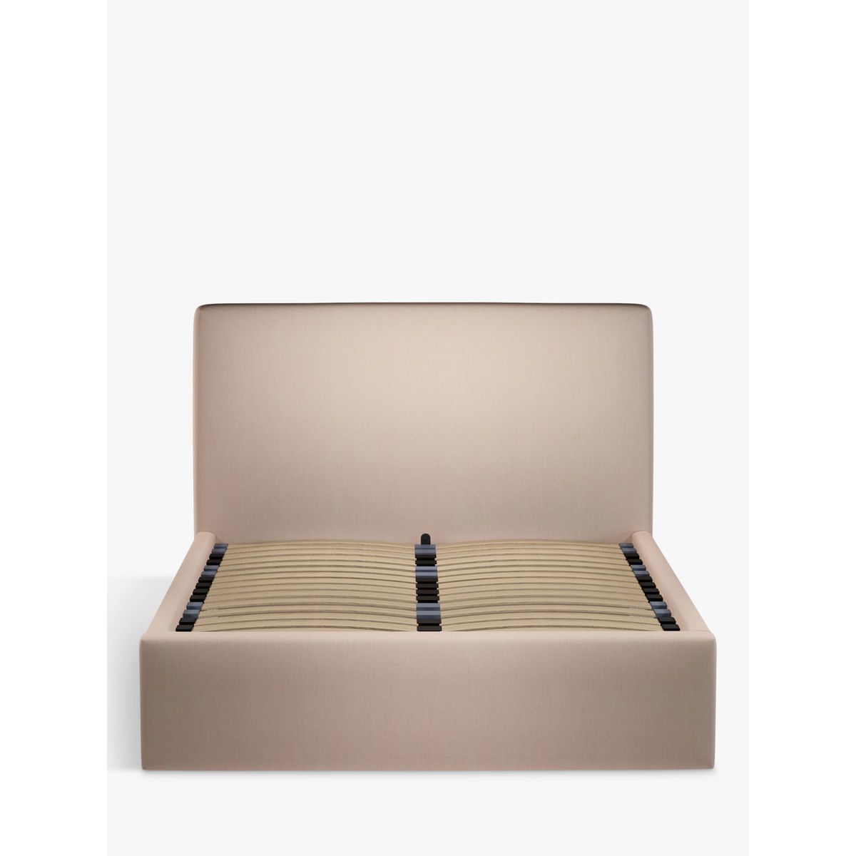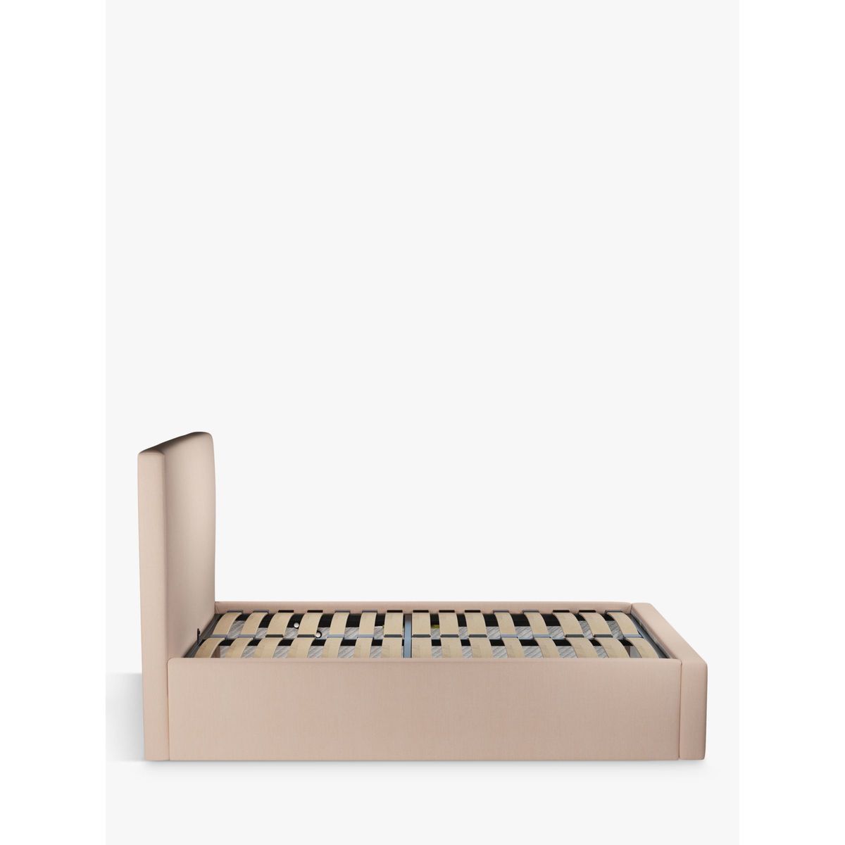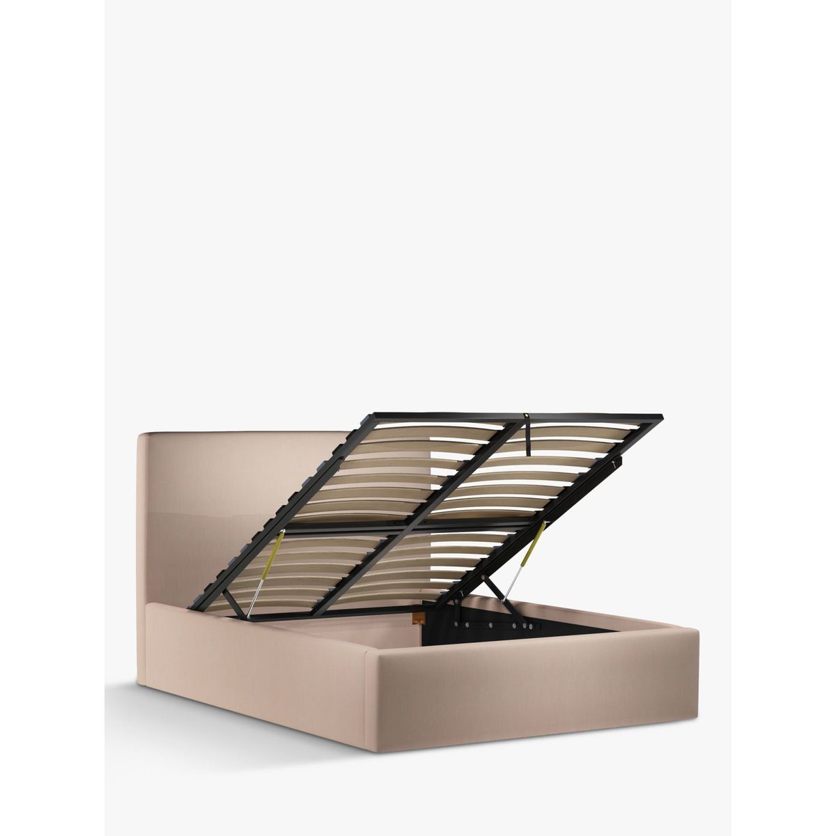 Our Emily ottoman bed frame is designed to free-up your floor space and bring a clever storage option into your bedroom. We've kept the design simple and practical, fusing clean lines with soft edges, and we've incorporated a large, well-padded headboard. With the help of hydraulic arms and a handle, it's easy to lift up the mattress to reveal a functional storage space in the base. Sprung slats provide a more supportive foundation for your mattress. Built with Smart Slats This bed frame is designed with wider slats at the shoulders, lumbar and feet. They provide maximum support for you and your mattress so that you experience perfect spinal alignment while you sleep. The standard slat caps are black so we have added grey slat caps to ensure that you know where to place the wider slats. Choose from one of our fabrics: Our Band A fabric, Canvas is a durable, textured weave that's ideal for styling with bold colours and darker shades Our Band A fabric, Topaz is woven to create a linen-effect feel, and is available in a versatile palette of colours Our Band A fabric, Saga is woven with man-made fibres, making it exceptionally durable and versatile Our Band B fabric, Erin has a velvet-style, chenille feel. It's woven with man-made fibres to create a beautifully soft yarn and can appear two-tone in different lights Our Band B fabric, Opulence is soft and luxurious like velvet and available in a rich colour palette Our Band B fabric, Mole is a soft and cosy woven wool-blend. Piling and bobbling may occur naturally over time Our Band C fabric, Marylamb is woven from both man-made and natural fibres, creating a tactile and soft-touch feel Our Band B fabric, Relaxed Linen is durable, resilient and versatile, woven from man-made and natural fibres Our Band C fabric, Aquaclean Harriet is made from a short, dense pile of velvet that has a soft, brushed finish. An Aquaclean treatment has been applied to this resilient fabric which means you can banish the majority of household stains with water. The treatment covers every fibre with an invisible coating that doesn't need to be retreated or re-coated. It will naturally develop lines, scuffs and shading over time Want to see it first? You may want to see and get a feel for the furniture before ordering. Pop into one of our shops to see the full range of colours and fabrics on offer. We'll be able to tell you where the range you'd like to view is on display.
