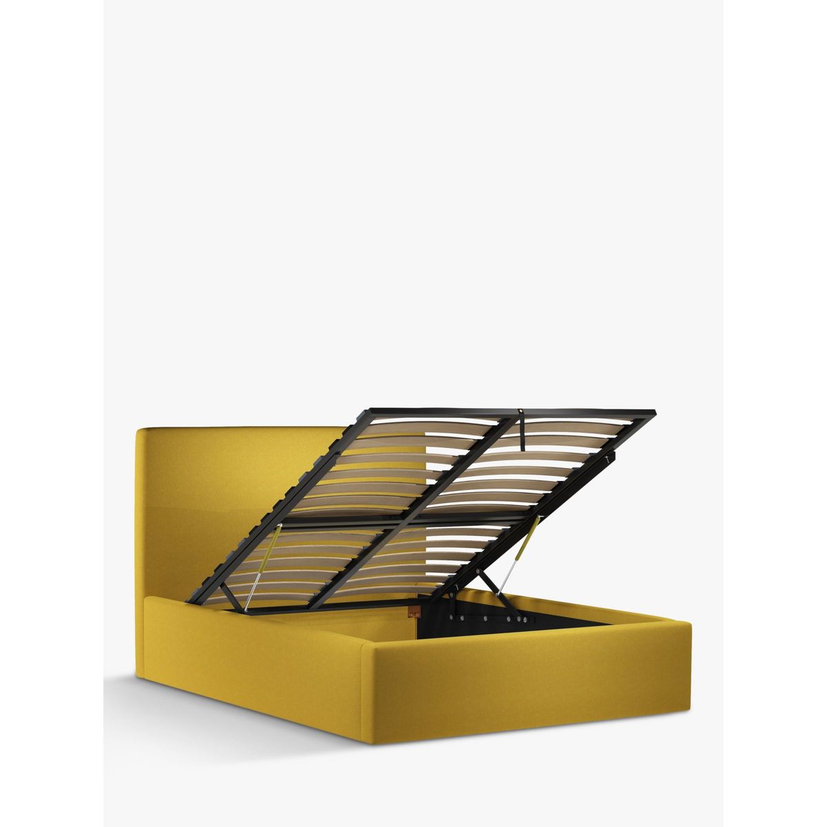 Our Emily ottoman bed frame is designed to free-up your floor space and bring a clever storage option into your bedroom. We've kept the design simple and practical, fusing clean lines with soft edges, and we've incorporated a large, well-padded headboard. With the help of hydraulic arms and a handle, it's easy to lift up the mattress to reveal a functional storage space in the base. Sprung slats provide a more supportive foundation for your mattress. Built with Smart Slats This bed frame is designed with wider slats at the shoulders, lumbar and feet. They provide maximum support for you and your mattress so that you experience perfect spinal alignment while you sleep. The standard slat caps are black so we have added grey slat caps to ensure that you know where to place the wider slats. Choose from one of our fabrics: Our Band A fabric, Canvas is a durable, textured weave that's ideal for styling with bold colours and darker shades Our Band A fabric, Topaz is woven to create a linen-effect feel, and is available in a versatile palette of colours Our Band A fabric, Saga is woven with man-made fibres, making it exceptionally durable and versatile Our Band B fabric, Erin has a velvet-style, chenille feel. It's woven with man-made fibres to create a beautifully soft yarn and can appear two-tone in different lights Our Band B fabric, Opulence is soft and luxurious like velvet and available in a rich colour palette Our Band B fabric, Mole is a soft and cosy woven wool-blend. Piling and bobbling may occur naturally over time Our Band C fabric, Marylamb is woven from both man-made and natural fibres, creating a tactile and soft-touch feel Our Band B fabric, Relaxed Linen is durable, resilient and versatile, woven from man-made and natural fibres Our Band C fabric, Aquaclean Harriet is made from a short, dense pile of velvet that has a soft, brushed finish. An Aquaclean treatment has been applied to this resilient fabric which means you can banish the majority of household stains with water. The treatment covers every fibre with an invisible coating that doesn't need to be retreated or re-coated. It will naturally develop lines, scuffs and shading over time Want to see it first? You may want to see and get a feel for the furniture before ordering. Pop into one of our shops to see the full range of colours and fabrics on offer. We'll be able to tell you where the range you'd like to view is on display.