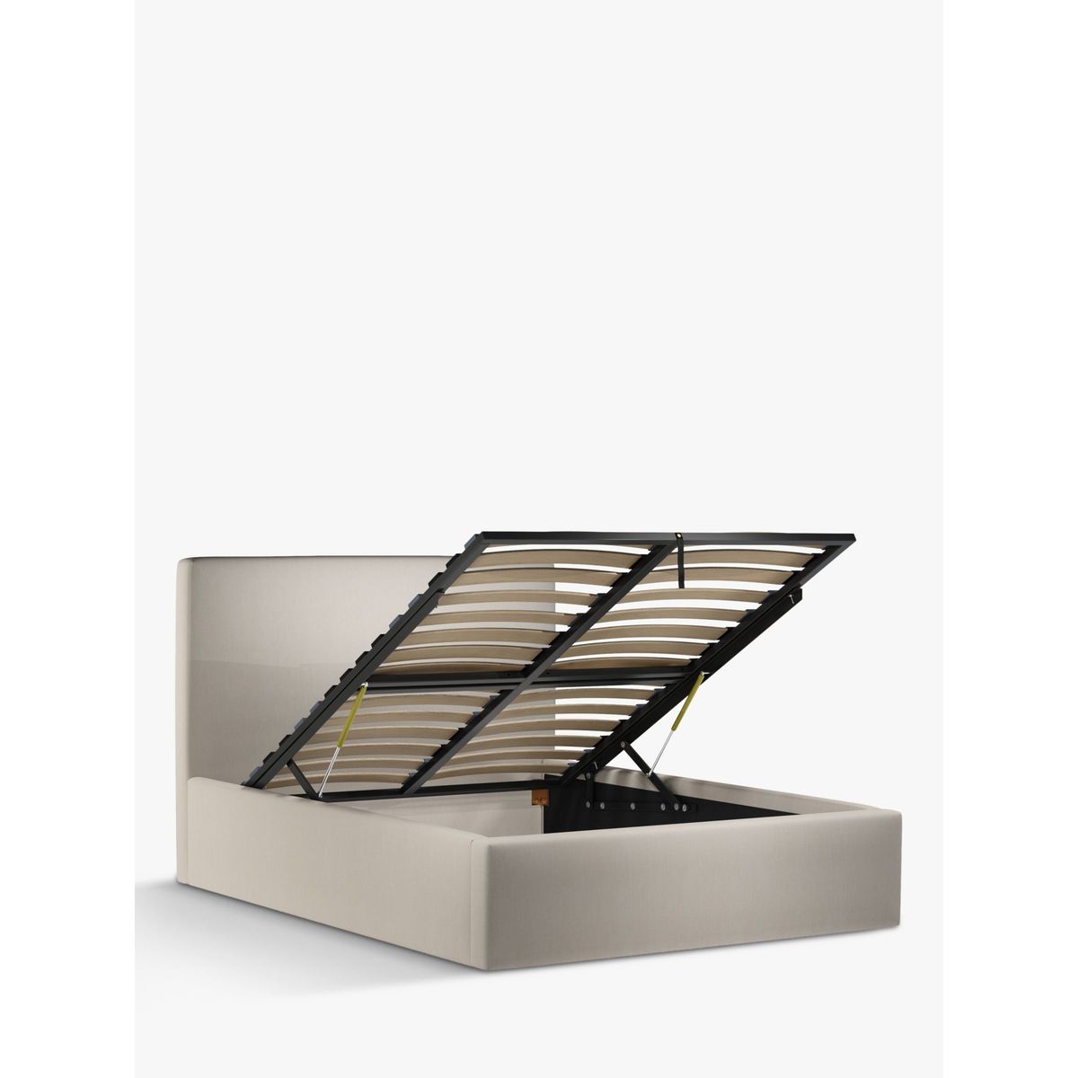 Our Emily ottoman bed frame is designed to free-up your floor space and bring a clever storage option into your bedroom. We've kept the design simple and practical, fusing clean lines with soft edges, and we've incorporated a large, well-padded headboard. With the help of hydraulic arms and a handle, it's easy to lift up the mattress to reveal a functional storage space in the base. Sprung slats provide a more supportive foundation for your mattress. Built with Smart Slats This bed frame is designed with wider slats at the shoulders, lumbar and feet. They provide maximum support for you and your mattress so that you experience perfect spinal alignment while you sleep. The standard slat caps are black so we have added grey slat caps to ensure that you know where to place the wider slats. Choose from one of our fabrics: Our Band A fabric, Canvas is a durable, textured weave that's ideal for styling with bold colours and darker shades Our Band A fabric, Topaz is woven to create a linen-effect feel, and is available in a versatile palette of colours Our Band A fabric, Saga is woven with man-made fibres, making it exceptionally durable and versatile Our Band B fabric, Erin has a velvet-style, chenille feel. It's woven with man-made fibres to create a beautifully soft yarn and can appear two-tone in different lights Our Band B fabric, Opulence is soft and luxurious like velvet and available in a rich colour palette Our Band B fabric, Mole is a soft and cosy woven wool-blend. Piling and bobbling may occur naturally over time Our Band C fabric, Marylamb is woven from both man-made and natural fibres, creating a tactile and soft-touch feel Our Band B fabric, Relaxed Linen is durable, resilient and versatile, woven from man-made and natural fibres Our Band C fabric, Aquaclean Harriet is made from a short, dense pile of velvet that has a soft, brushed finish. An Aquaclean treatment has been applied to this resilient fabric which means you can banish the majority of household stains with water. The treatment covers every fibre with an invisible coating that doesn't need to be retreated or re-coated. It will naturally develop lines, scuffs and shading over time Want to see it first? You may want to see and get a feel for the furniture before ordering. Pop into one of our shops to see the full range of colours and fabrics on offer. We'll be able to tell you where the range you'd like to view is on display.