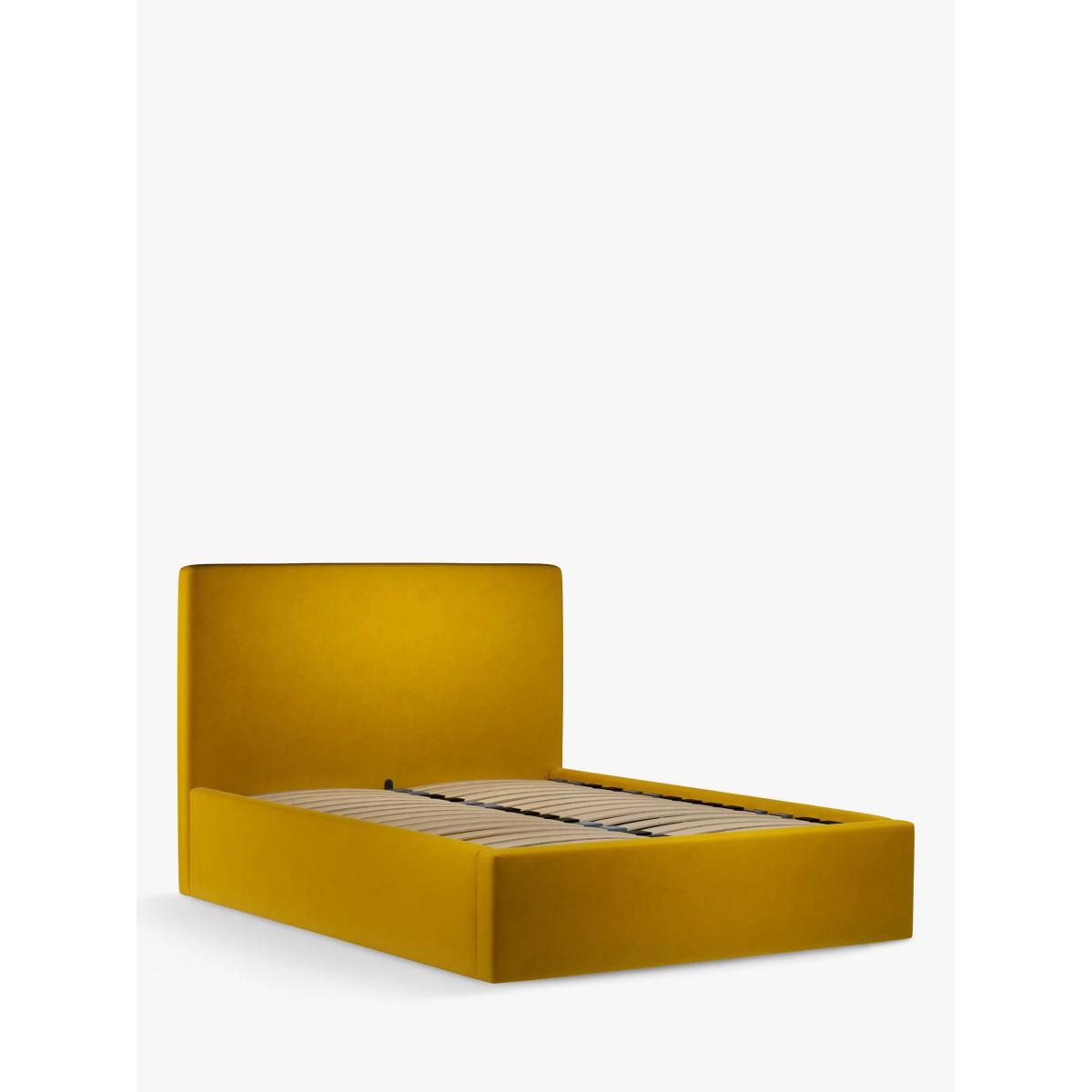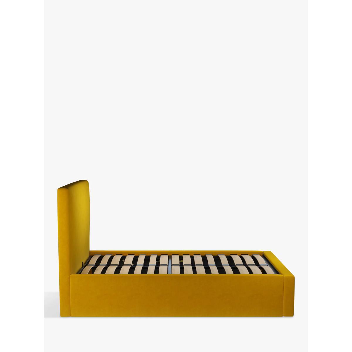 Our Emily ottoman bed frame is designed to free-up your floor space and bring a clever storage option into your bedroom. We've kept the design simple and practical, fusing clean lines with soft edges, and we've incorporated a large, well-padded headboard. With the help of hydraulic arms and a handle, it's easy to lift up the mattress to reveal a functional storage space in the base. Sprung slats provide a more supportive foundation for your mattress. Built with Smart Slats This bed frame is designed with wider slats at the shoulders, lumbar and feet. They provide maximum support for you and your mattress so that you experience perfect spinal alignment while you sleep. The standard slat caps are black so we have added grey slat caps to ensure that you know where to place the wider slats. Choose from one of our fabrics: Our Band A fabric, Canvas is a durable, textured weave that's ideal for styling with bold colours and darker shades Our Band A fabric, Topaz is woven to create a linen-effect feel, and is available in a versatile palette of colours Our Band A fabric, Saga is woven with man-made fibres, making it exceptionally durable and versatile Our Band B fabric, Erin has a velvet-style, chenille feel. It's woven with man-made fibres to create a beautifully soft yarn and can appear two-tone in different lights Our Band B fabric, Opulence is soft and luxurious like velvet and available in a rich colour palette Our Band B fabric, Mole is a soft and cosy woven wool-blend. Piling and bobbling may occur naturally over time Our Band C fabric, Marylamb is woven from both man-made and natural fibres, creating a tactile and soft-touch feel Our Band B fabric, Relaxed Linen is durable, resilient and versatile, woven from man-made and natural fibres Our Band C fabric, Aquaclean Harriet is made from a short, dense pile of velvet that has a soft, brushed finish. An Aquaclean treatment has been applied to this resilient fabric which means you can banish the majority of household stains with water. The treatment covers every fibre with an invisible coating that doesn't need to be retreated or re-coated. It will naturally develop lines, scuffs and shading over time Want to see it first? You may want to see and get a feel for the furniture before ordering. Pop into one of our shops to see the full range of colours and fabrics on offer. We'll be able to tell you where the range you'd like to view is on display.