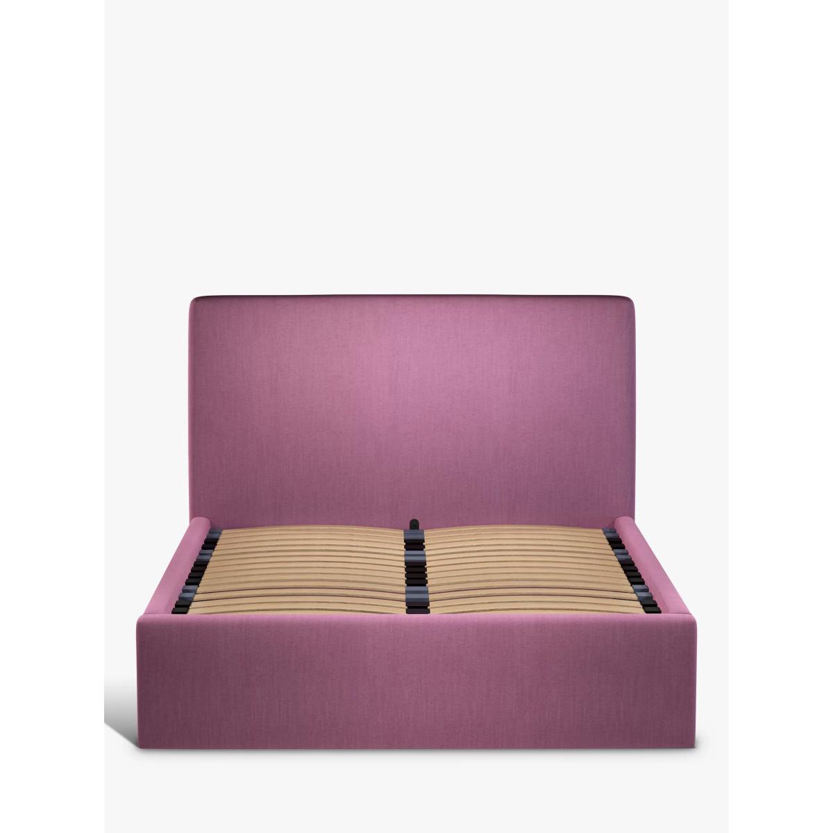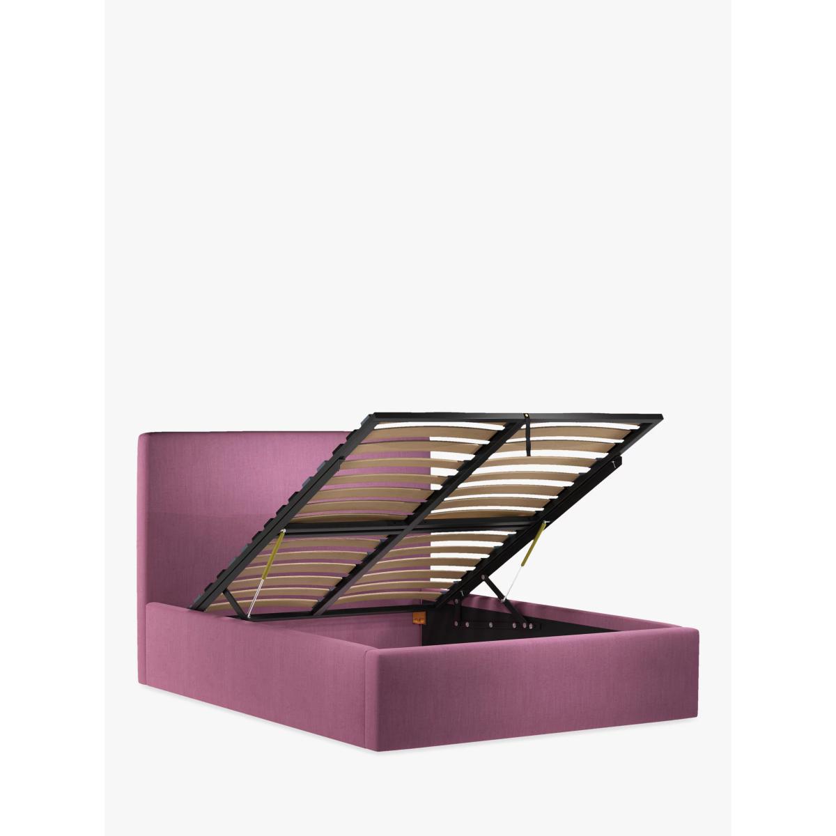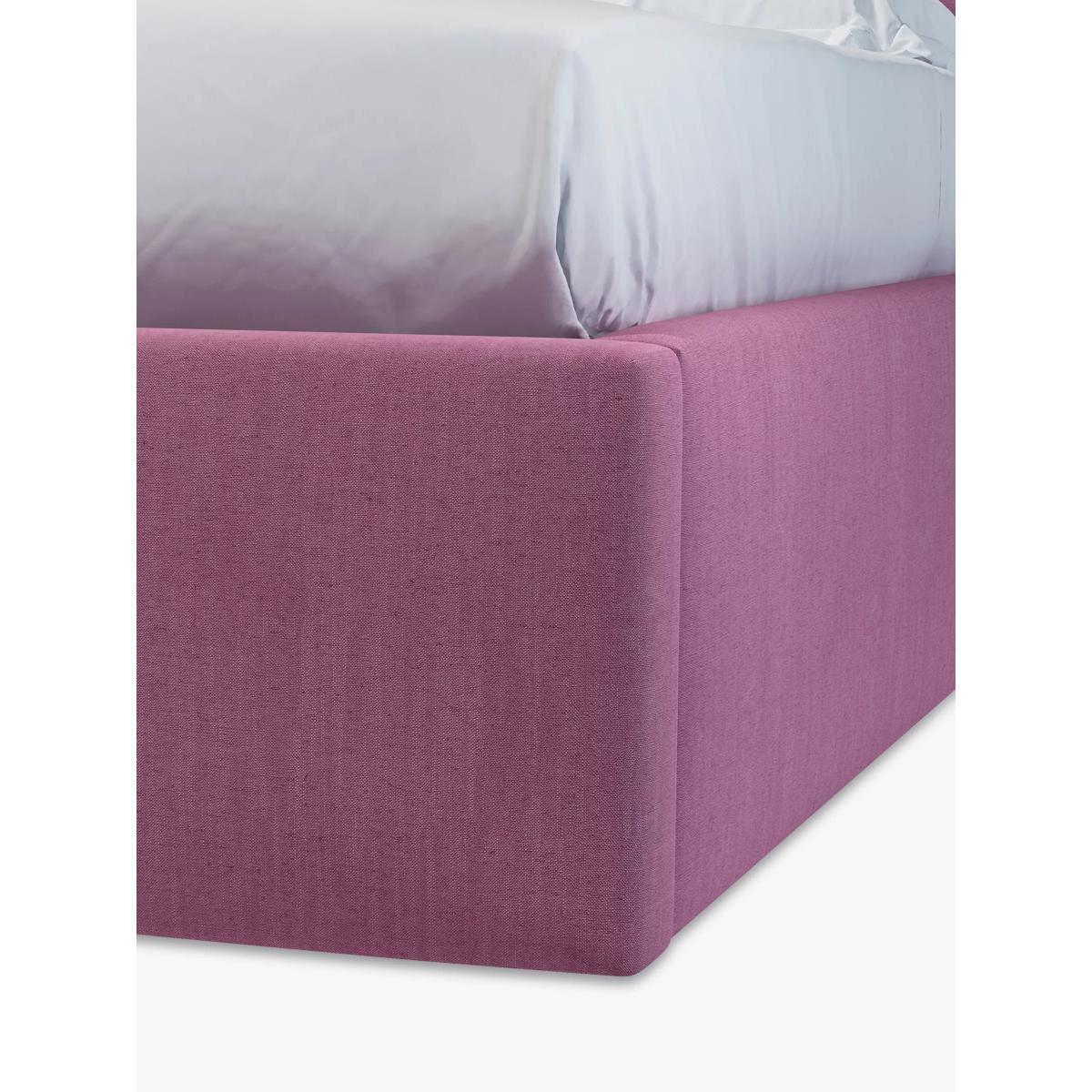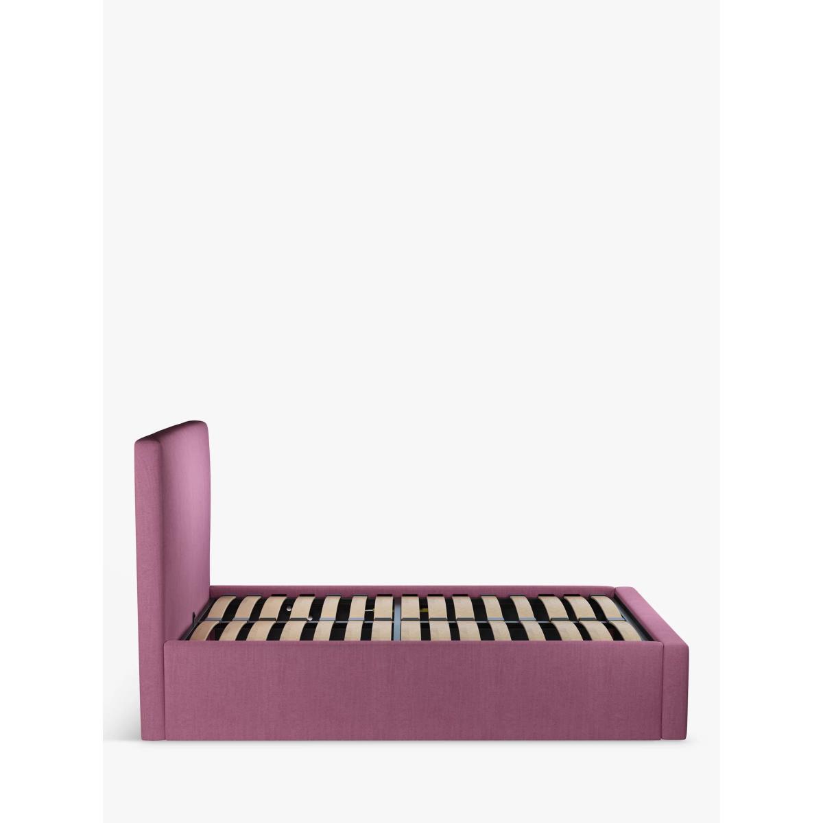 Our Emily ottoman bed frame is designed to free-up your floor space and bring a clever storage option into your bedroom. We've kept the design simple and practical, fusing clean lines with soft edges, and we've incorporated a large, well-padded headboard. With the help of hydraulic arms and a handle, it's easy to lift up the mattress to reveal a functional storage space in the base. Sprung slats provide a more supportive foundation for your mattress. Built with Smart Slats This bed frame is designed with wider slats at the shoulders, lumbar and feet. They provide maximum support for you and your mattress so that you experience perfect spinal alignment while you sleep. The standard slat caps are black so we have added grey slat caps to ensure that you know where to place the wider slats. Choose from one of our fabrics: Our Band A fabric, Canvas is a durable, textured weave that's ideal for styling with bold colours and darker shades Our Band A fabric, Topaz is woven to create a linen-effect feel, and is available in a versatile palette of colours Our Band A fabric, Saga is woven with man-made fibres, making it exceptionally durable and versatile Our Band B fabric, Erin has a velvet-style, chenille feel. It's woven with man-made fibres to create a beautifully soft yarn and can appear two-tone in different lights Our Band B fabric, Opulence is soft and luxurious like velvet and available in a rich colour palette Our Band B fabric, Mole is a soft and cosy woven wool-blend. Piling and bobbling may occur naturally over time Our Band C fabric, Marylamb is woven from both man-made and natural fibres, creating a tactile and soft-touch feel Our Band B fabric, Relaxed Linen is durable, resilient and versatile, woven from man-made and natural fibres Our Band C fabric, Aquaclean Harriet is made from a short, dense pile of velvet that has a soft, brushed finish. An Aquaclean treatment has been applied to this resilient fabric which means you can banish the majority of household stains with water. The treatment covers every fibre with an invisible coating that doesn't need to be retreated or re-coated. It will naturally develop lines, scuffs and shading over time Want to see it first? You may want to see and get a feel for the furniture before ordering. Pop into one of our shops to see the full range of colours and fabrics on offer. We'll be able to tell you where the range you'd like to view is on display.