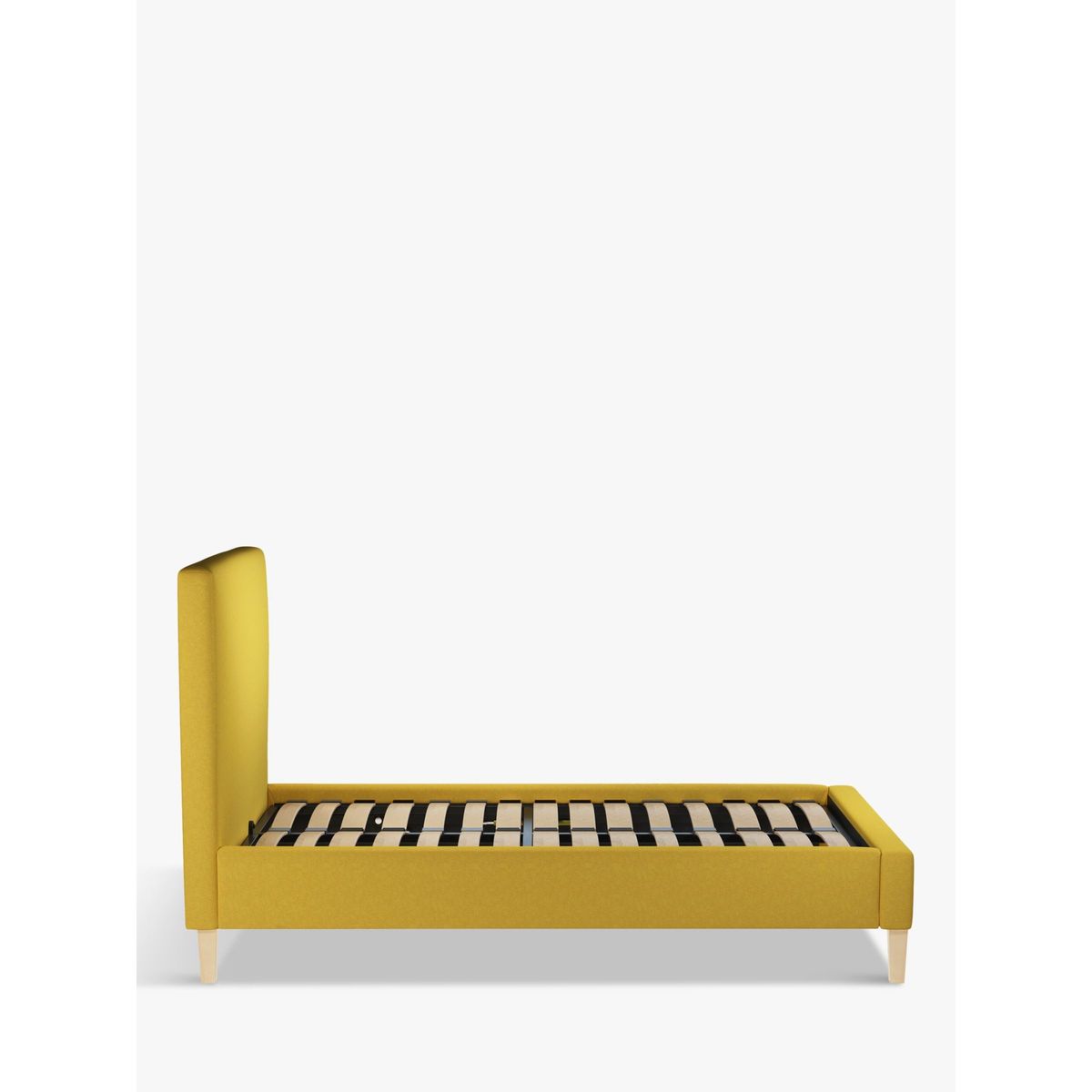 We've kept the design of our Emily bed frame simple and clean-lined so it's a practical choice for modern bedrooms. Easy to assemble and made from high-quality timbers, its versatile shape incorporates a large and well-padded headboard and we've added sprung slats in the base to provide a more supportive foundation for your mattress. Built with Smart Slats This bed frame is designed with wider slats at the shoulders, lumbar and feet. They provide maximum support for you and your mattress so that you experience perfect spinal alignment while you sleep. The standard slat caps are black so we have added grey slat caps to ensure that you know where to place the wider slats. Choose from one of our fabrics: Our Band A fabric, Topaz is woven to create a linen-effect feel, and is available in a versatile palette of colours Our Band A fabric, Saga is woven with man-made fibres, making it exceptionally durable and versatile Our Band B fabric, Erin has a velvet-style, chenille feel. It's woven with man-made fibres to create a beautifully soft yarn and can appear two-tone in different lights Our Band B fabric, Opulence is soft and luxurious like velvet and available in a rich colour palette Our Band B fabric, Mole is a soft and cosy woven wool-blend. Piling and bobbling may occur naturally over time Our Band B fabric, Relaxed Linen is durable, resilient and versatile, woven from man-made and natural fibres Our Band C fabric, Marylamb is woven from both man-made and natural fibres, creating a tactile and soft-touch feel. Our Band C fabric, Aquaclean Harriet is made from a short, dense pile of velvet that has a soft, brushed finish. An Aquaclean treatment has been applied to this resilient fabric which means you can banish the majority of household stains with water. The treatment covers every fibre with an invisible coating that doesn't need to be retreated or re-coated. It will naturally develop lines, scuffs and shading over time. Want to see it first? You may want to see and get a feel for the furniture before ordering. Pop into one of our shops to see the full range of colours and fabrics on offer. We'll be able to tell you where the range you'd like to view is on display.
