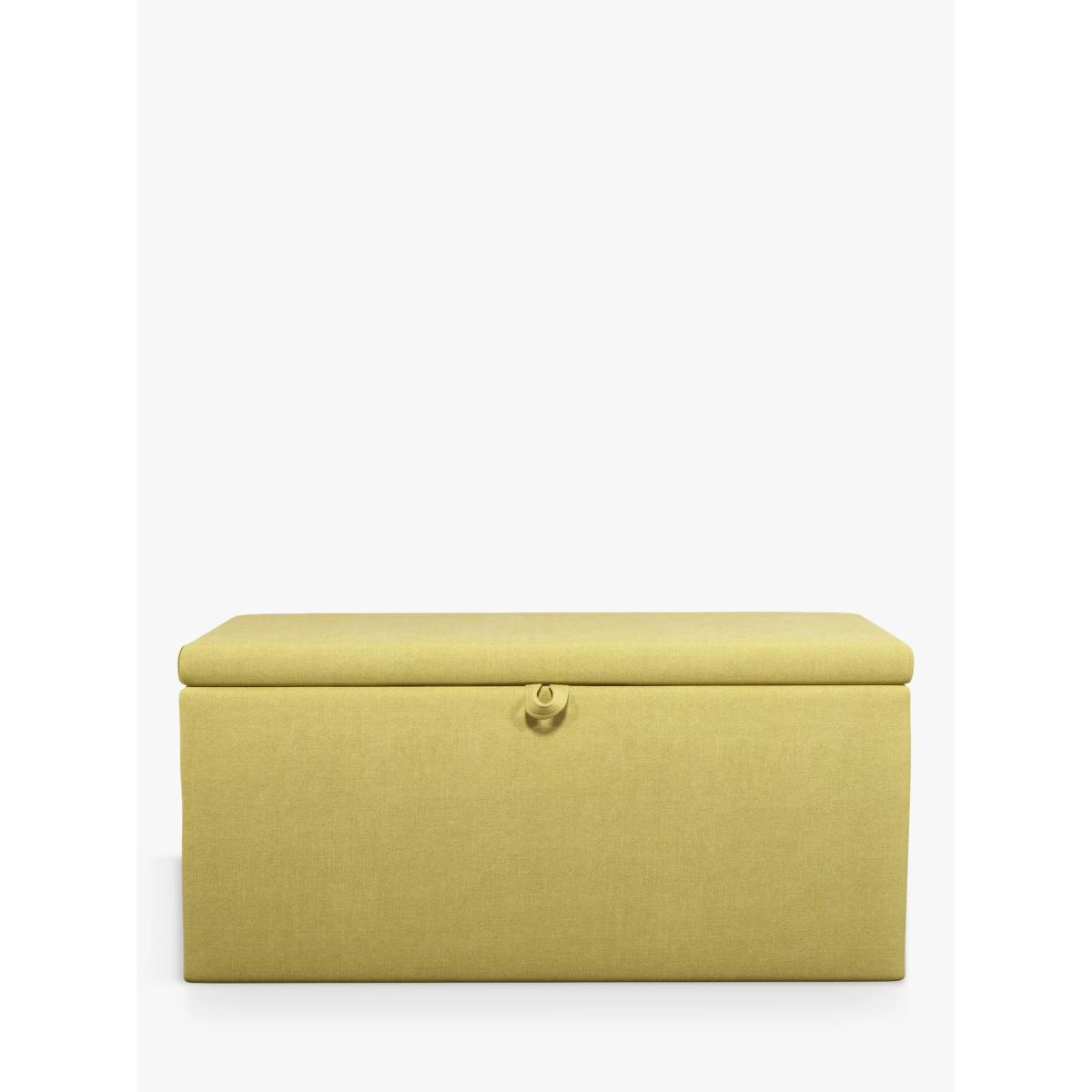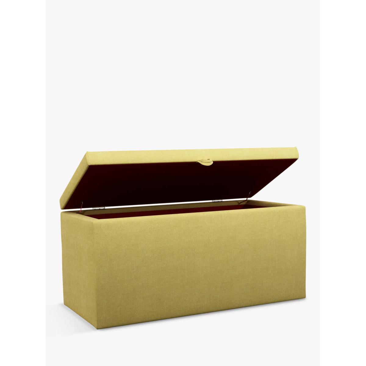 With its deep and clean-lined design, our Emily ottoman storage box provides handy additional storage space. It's easy to open thanks to a hinged lid and loop-pull and it's ideal for stashing your extra blankets, linens and throws. Choose from one of our fabrics: Our Band A fabric, Canvas is a durable, textured weave that's ideal for styling with bold colours and darker shades Our Band A fabric, Topaz is woven to create a linen-effect feel, and is available in a versatile palette of colours Our Band A fabric, Saga is woven with man-made fibres, making it exceptionally durable and versatile Our Band B fabric, Erin has a velvet-style, chenille feel. It's woven with man-made fibres to create a beautifully soft yarn and can appear two-tone in different lights Our Band B fabric, Opulence is soft and luxurious like velvet and available in a rich colour palette Our Band B fabric, Mole is a soft and cosy woven wool-blend. Piling and bobbling may occur naturally over time Our Band C fabric, Marylamb is woven from both man-made and natural fibres, creating a tactile and soft-touch feel Our Band B fabric, Relaxed Linen is durable, resilient and versatile, woven from man-made and natural fibres Our Band C fabric, Aquaclean Harriet is made from a short, dense pile of velvet that has a soft, brushed finish. An Aquaclean treatment has been applied to this resilient fabric which means you can banish the majority of household stains with water. The treatment covers every fibre with an invisible coating that doesn't need to be retreated or re-coated. It will naturally develop lines, scuffs and shading over time Want to see it first? You may want to see and get a feel for the furniture before ordering. Pop into one of our shops to see the full range of colours and fabrics on offer. We'll be able to tell you where the range you'd like to view is on display.