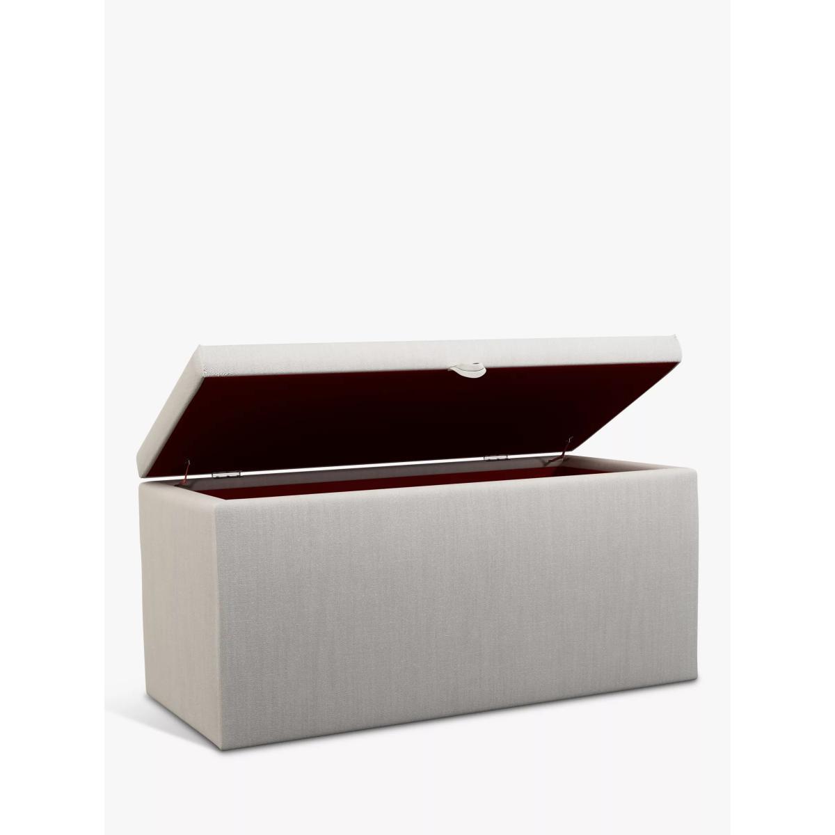 With its deep and clean-lined design, our Emily ottoman storage box provides handy additional storage space. It's easy to open thanks to a hinged lid and loop-pull and it's ideal for stashing your extra blankets, linens and throws. Choose from one of our fabrics: Our Band A fabric, Canvas is a durable, textured weave that's ideal for styling with bold colours and darker shades Our Band A fabric, Topaz is woven to create a linen-effect feel, and is available in a versatile palette of colours Our Band A fabric, Saga is woven with man-made fibres, making it exceptionally durable and versatile Our Band B fabric, Erin has a velvet-style, chenille feel. It's woven with man-made fibres to create a beautifully soft yarn and can appear two-tone in different lights Our Band B fabric, Opulence is soft and luxurious like velvet and available in a rich colour palette Our Band B fabric, Mole is a soft and cosy woven wool-blend. Piling and bobbling may occur naturally over time Our Band C fabric, Marylamb is woven from both man-made and natural fibres, creating a tactile and soft-touch feel Our Band B fabric, Relaxed Linen is durable, resilient and versatile, woven from man-made and natural fibres Our Band C fabric, Aquaclean Harriet is made from a short, dense pile of velvet that has a soft, brushed finish. An Aquaclean treatment has been applied to this resilient fabric which means you can banish the majority of household stains with water. The treatment covers every fibre with an invisible coating that doesn't need to be retreated or re-coated. It will naturally develop lines, scuffs and shading over time Want to see it first? You may want to see and get a feel for the furniture before ordering. Pop into one of our shops to see the full range of colours and fabrics on offer. We'll be able to tell you where the range you'd like to view is on display.