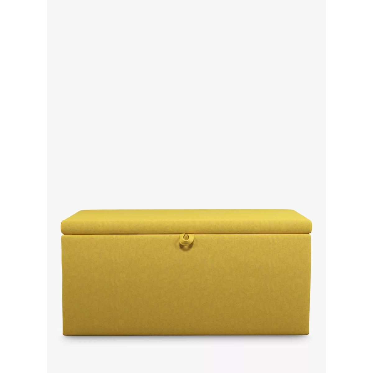 With its deep and clean-lined design, our Emily ottoman storage box provides handy additional storage space. It's easy to open thanks to a hinged lid and loop-pull and it's ideal for stashing your extra blankets, linens and throws. Choose from one of our fabrics: Our Band A fabric, Canvas is a durable, textured weave that's ideal for styling with bold colours and darker shades Our Band A fabric, Topaz is woven to create a linen-effect feel, and is available in a versatile palette of colours Our Band A fabric, Saga is woven with man-made fibres, making it exceptionally durable and versatile Our Band B fabric, Erin has a velvet-style, chenille feel. It's woven with man-made fibres to create a beautifully soft yarn and can appear two-tone in different lights Our Band B fabric, Opulence is soft and luxurious like velvet and available in a rich colour palette Our Band B fabric, Mole is a soft and cosy woven wool-blend. Piling and bobbling may occur naturally over time Our Band C fabric, Marylamb is woven from both man-made and natural fibres, creating a tactile and soft-touch feel Our Band B fabric, Relaxed Linen is durable, resilient and versatile, woven from man-made and natural fibres Our Band C fabric, Aquaclean Harriet is made from a short, dense pile of velvet that has a soft, brushed finish. An Aquaclean treatment has been applied to this resilient fabric which means you can banish the majority of household stains with water. The treatment covers every fibre with an invisible coating that doesn't need to be retreated or re-coated. It will naturally develop lines, scuffs and shading over time Want to see it first? You may want to see and get a feel for the furniture before ordering. Pop into one of our shops to see the full range of colours and fabrics on offer. We'll be able to tell you where the range you'd like to view is on display.