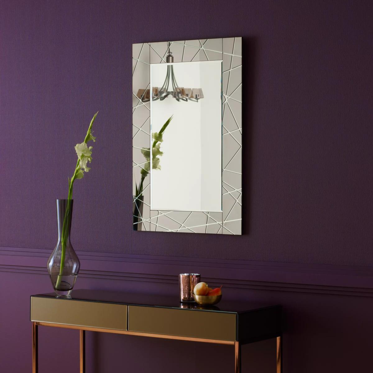 Etched with geometric lines, this contemporary wall mirror has a beautifully tinted frame. This rectangular mirror has a strap hanger at the back and can be fixed to either a brick wall, using steel screws, or a cavity wall, using cavity bolts. Never hang this mirror on a damp wall. Drill holes into the wall at a slight downward slope and secure with 5mm of the screw still showing. Ensure the fixings are strong enough to support the weight of the mirror. Hang the strap directly onto the screw head and your mirror should now be hung securely on the wall. Do not use a cord, wire or chain to wall-mount. Wall fixings are not provided. A generic hanging and fitting instruction manual is included. The Engraved Rectangular Wall Mirror is available in these sizes. Dimensions Weight H90 x W60 x D1.5cm 8.1kg H102 x W76 x D1.5cm 10.2kg Have you thought about wall ?