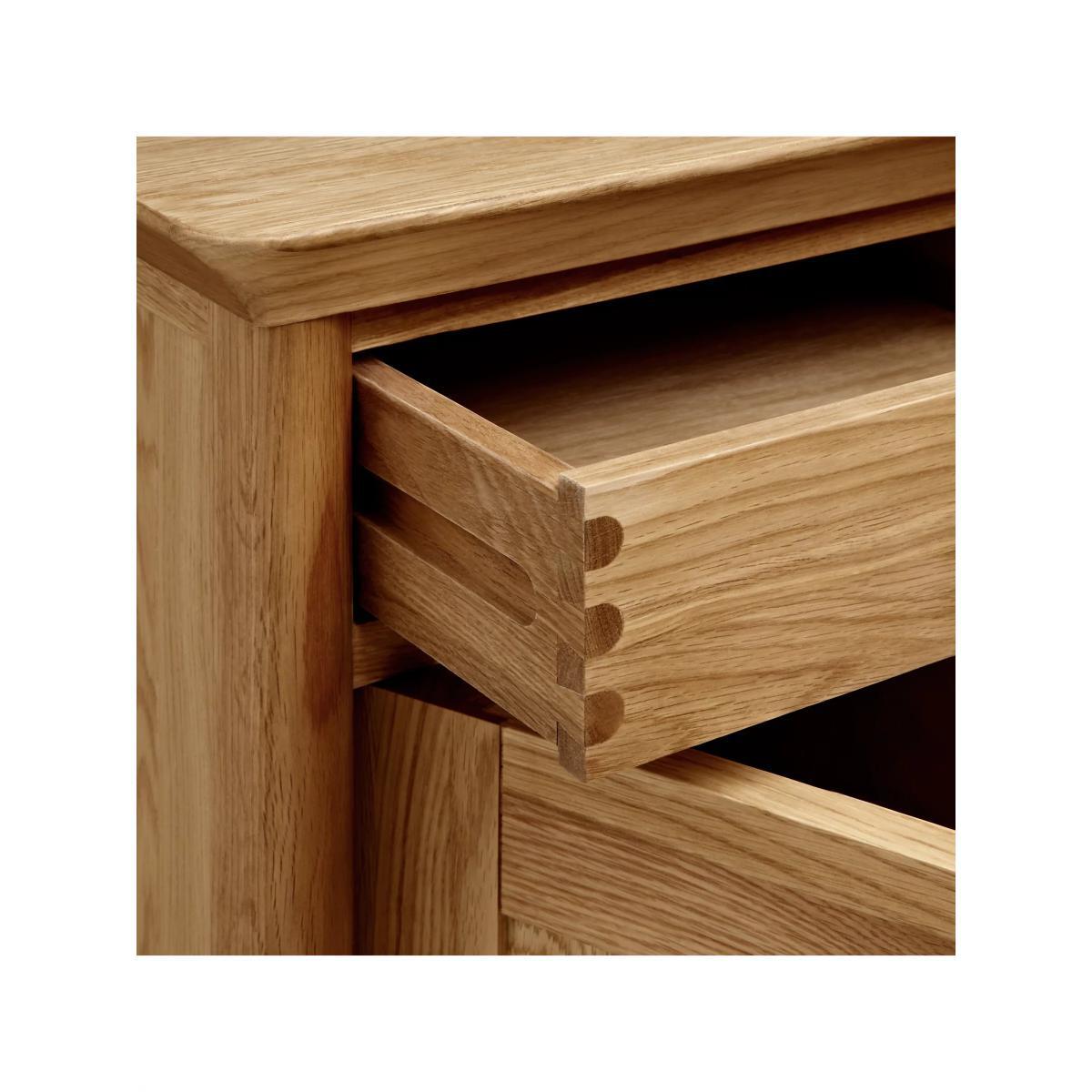 This compact bedside table is made from a combination of solid European oak and high-quality oak veneers for an appealingly natural look. We've designed it with a single drawer and small storage section, and dovetail joints ensure a robust finish. It's perfect for bedside storage, especially in smaller bedrooms. Want to see it first? You may want to see and get a feel for the furniture in one of our shops before ordering. We'll be able to tell you where the range you'd like to view is on display.