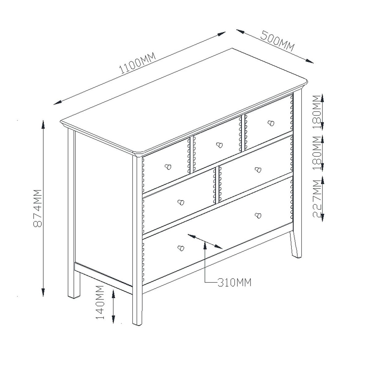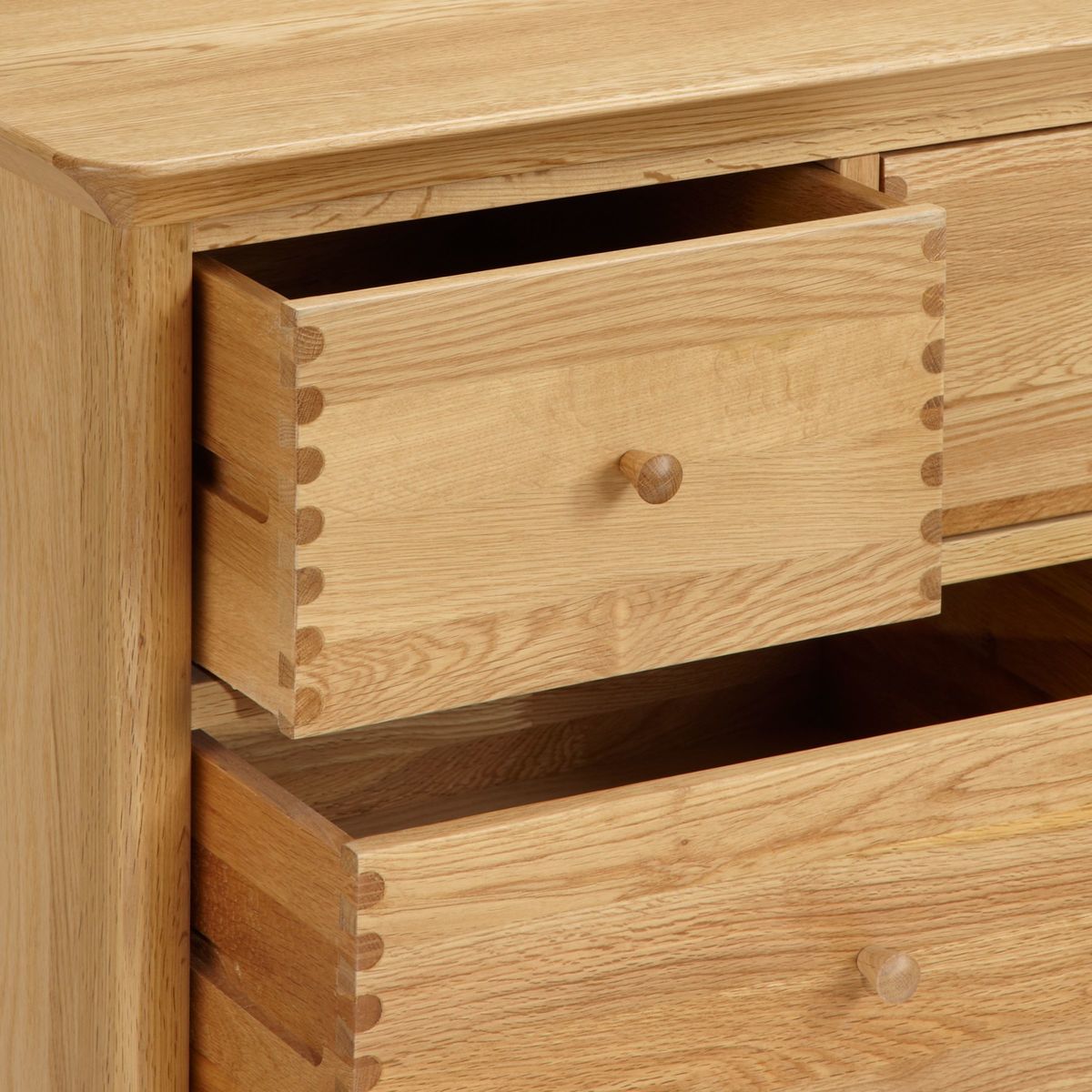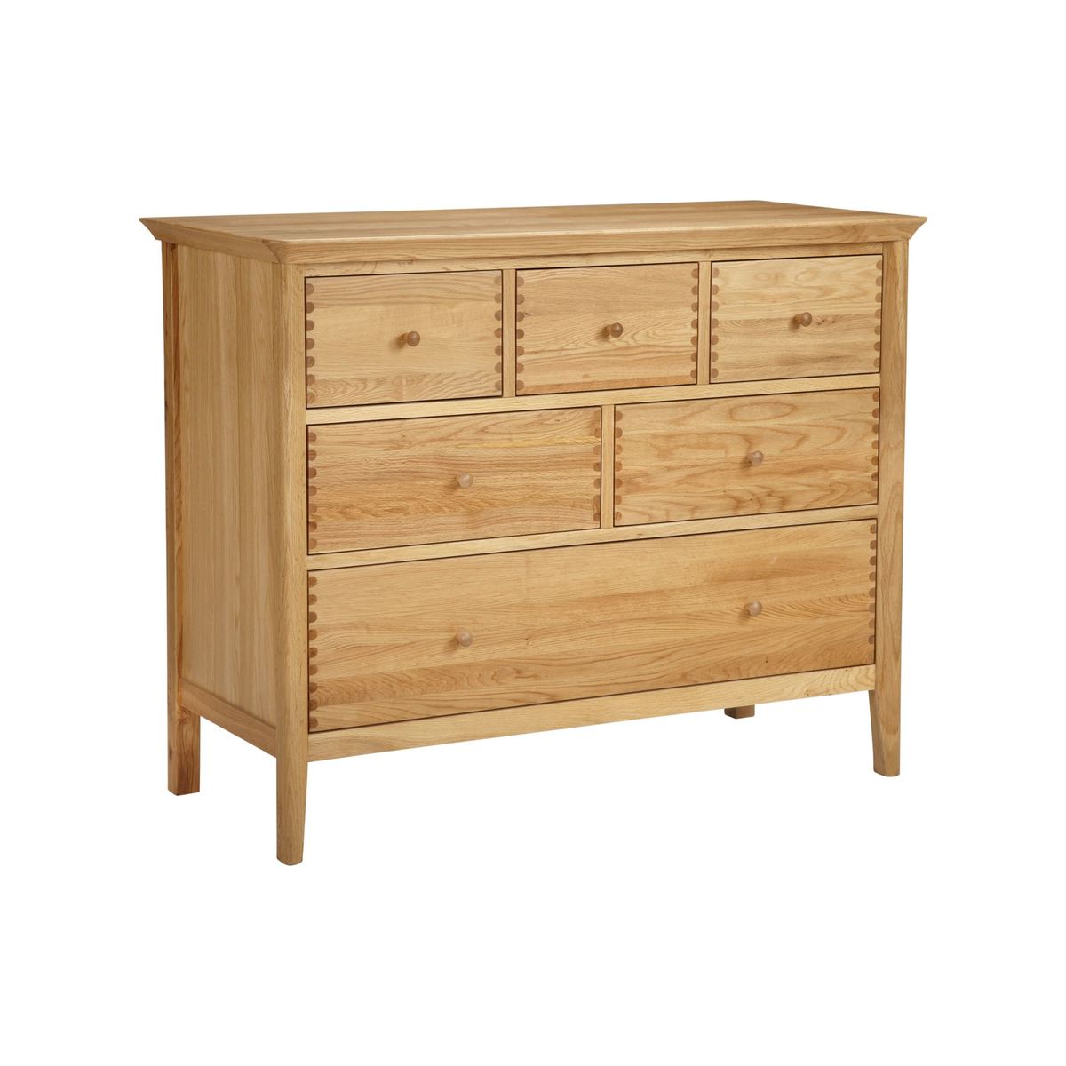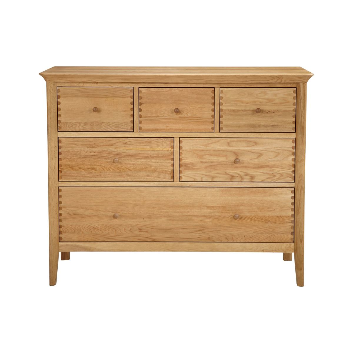This spacious chest of drawers is made from a sturdy combination of solid oak and veneers for an appealingly natural look. The White option has a more contemporary feel, thanks to its painted finish and Chinese birch and MDF construction. Designed with six deep drawers that glide open easily, dovetail joints reinforce its high-quality and robust profile, that's accented with rounded corners and a smooth finish. Supplied fully assembled, its a timeless and functional storage option for your bedroom.