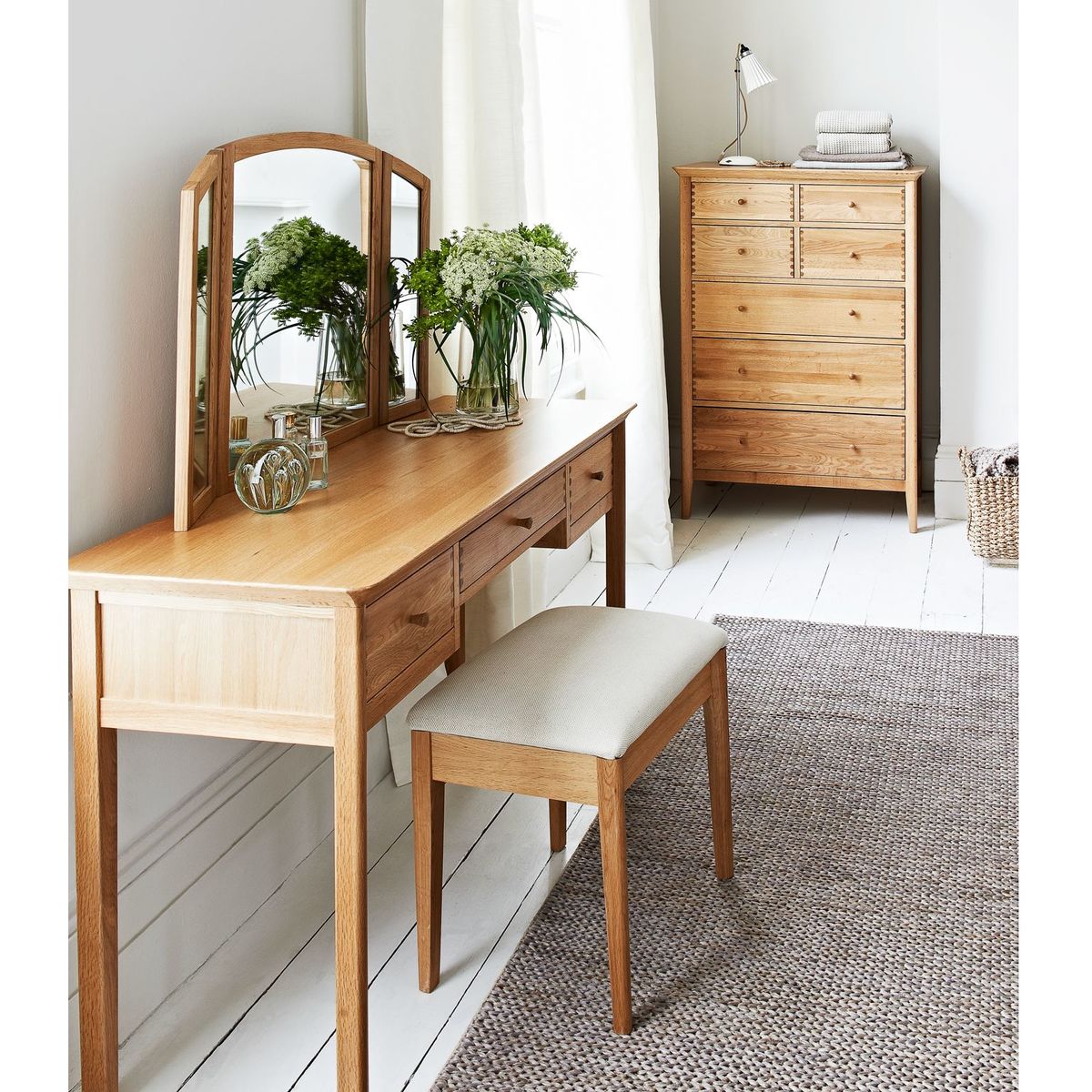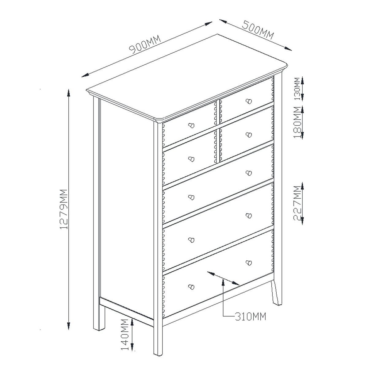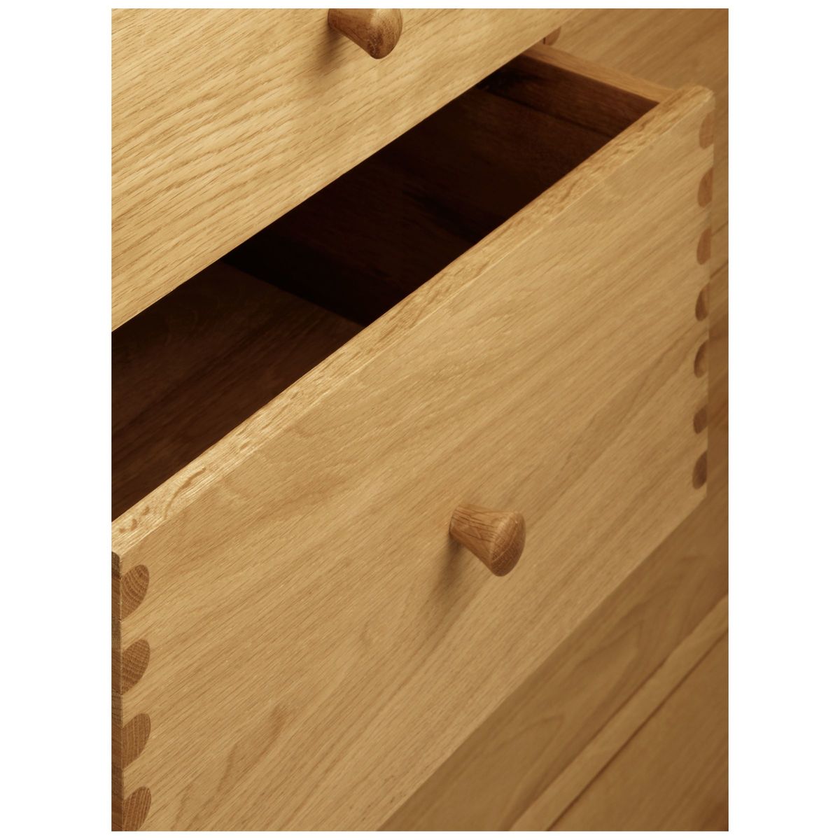 This spacious chest of drawers is made from a sturdy combination of solid oak and veneers for an appealingly natural look. The White option has a more contemporary feel, thanks to its painted finish and Chinese birch and MDF construction. It's designed with seven drawers of differing depths, that glide open easily and provide ample storage space for clothing and accessories. Dovetail joints reinforce its high-quality and robust profile, that's enhanced with rounded corners and a smooth finish. Supplied fully assembled, its a timeless and functional storage option for your bedroom.