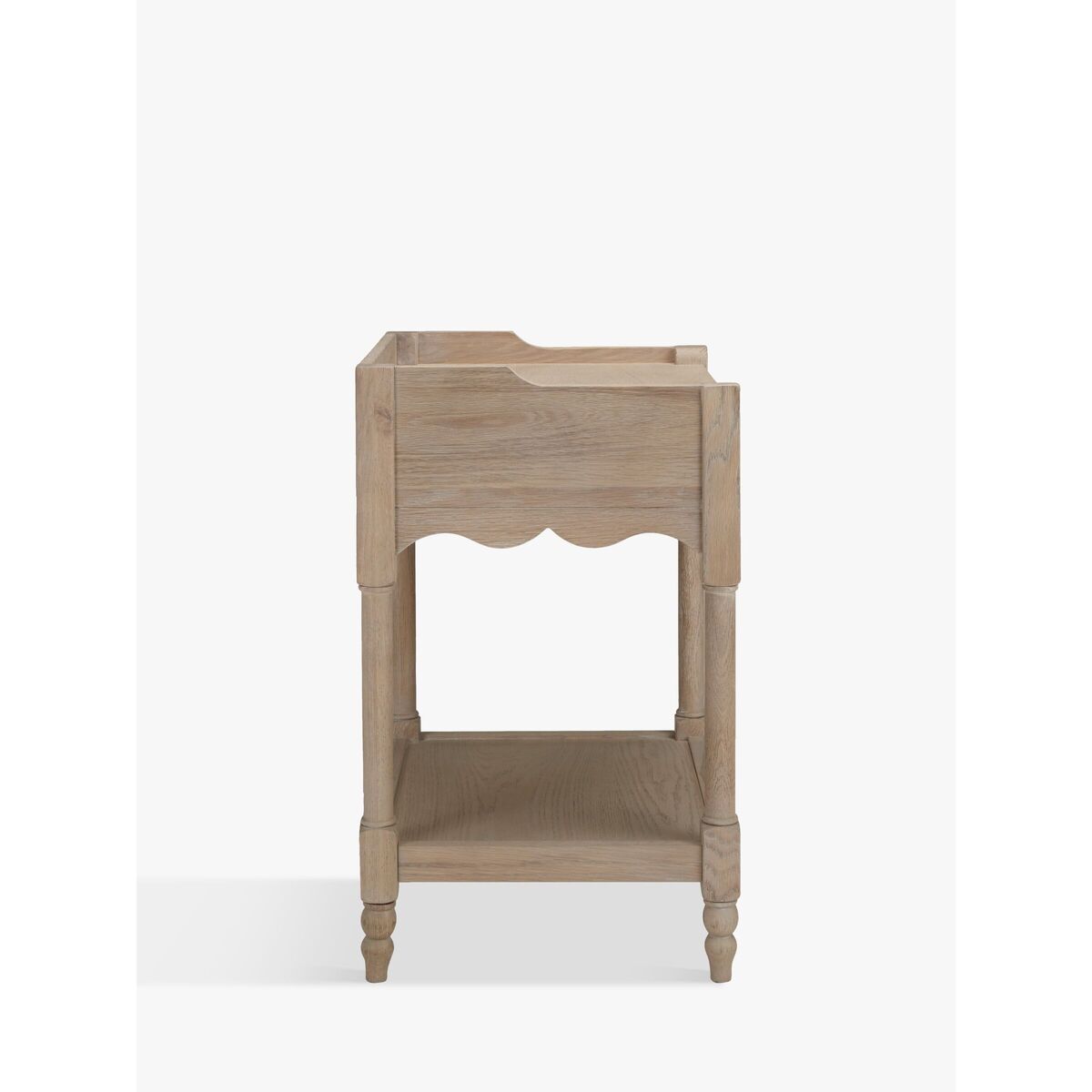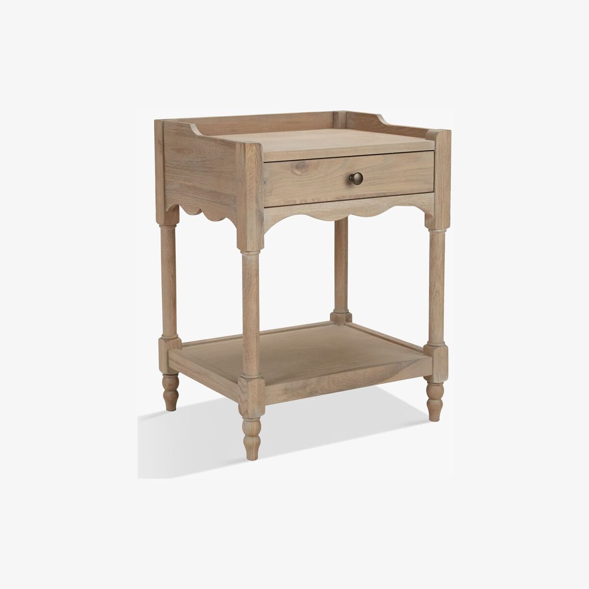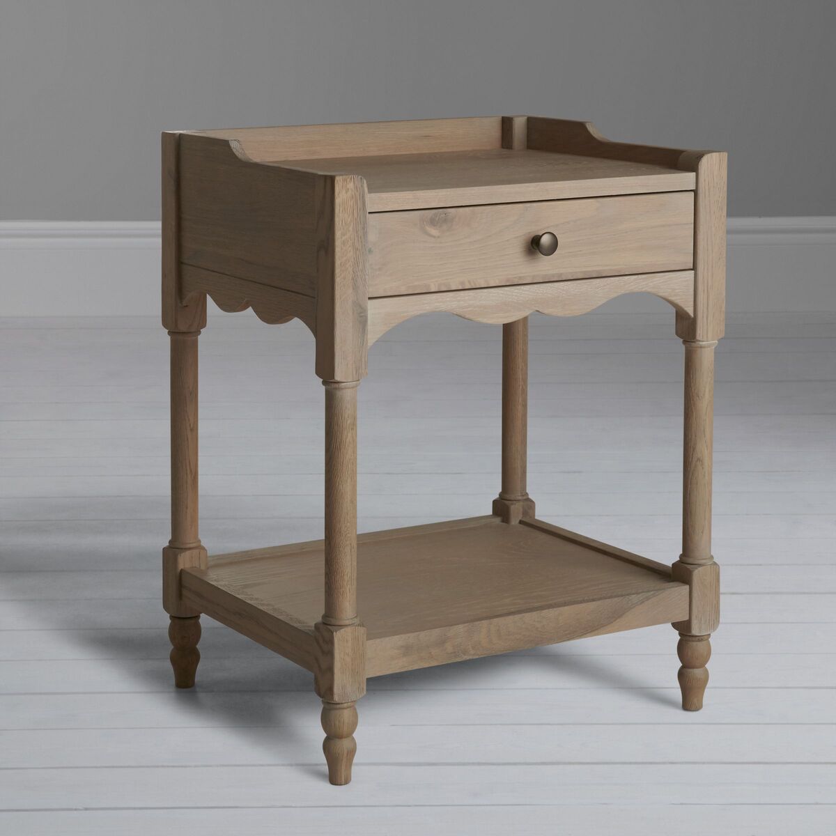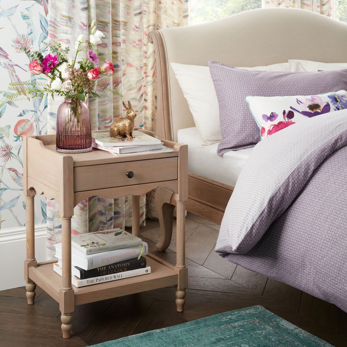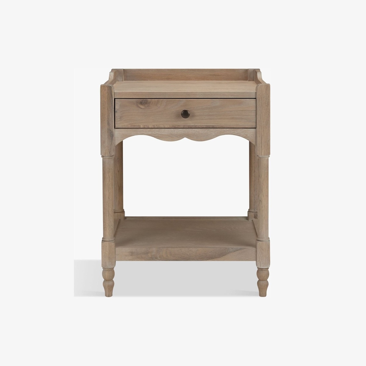 Keep your night-time necessaries close to hand while enhancing your bedroom decor with the pared-back styling of the Etienne bedside table. Inspired by the simple elegance of Gustavian styling, this elegant piece has a subtle hand-distressed finish, giving it an air of antique appeal. The resulting appearance is clean and bright, expressing individuality that enhances a variety of decors. The beautiful Etienne collection is crafted from solid oak and oak veneers cultured in a rustic rich tone with an artistic weathered finish. This charming collection of bedroom pieces features handcrafted carvings and delicate profiles, illustrating superb design and craftsmanship. Want to see it first? You may want to see and get a feel for the product in one of our shops before ordering. We'll be able to tell you where the range you'd like to view is on display.