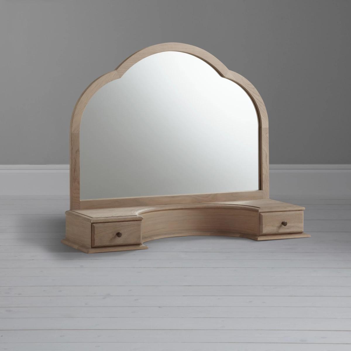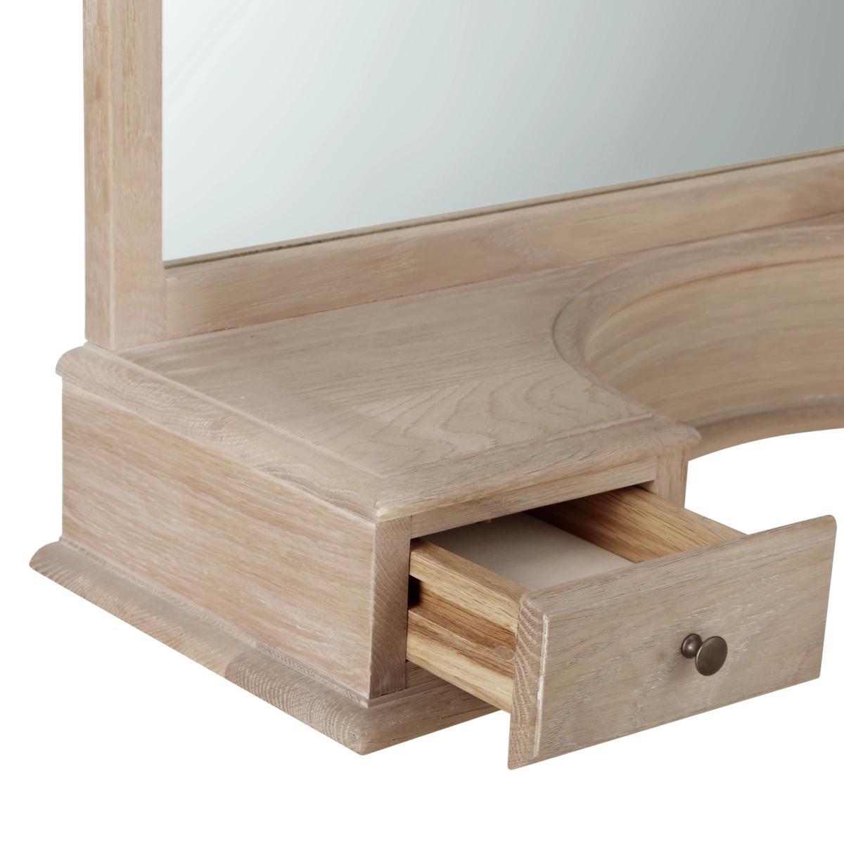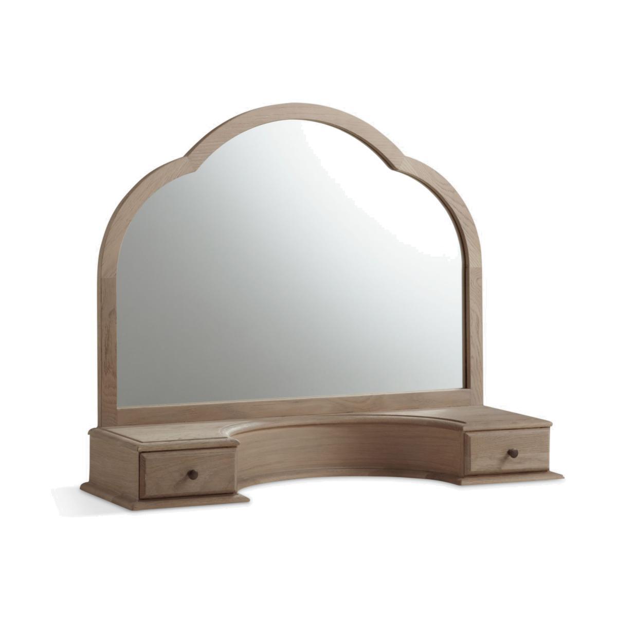 Inspired by Swedish Gustavian styling, the Etienne gallery mirror is the ideal companion to the Etienne dressing table. It features two cream velvet-lined drawers for keeping jewellery. The beautiful Etienne bedroom collection is crafted from solid oak and oak veneers cultured in a rustic rich tone with an artistic weathered finish. This charming collection of bedroom pieces features handcrafted carvings and delicate profiles, illustrating superb design and craftsmanship. Please note: not all our ranges are on display in our shops.
