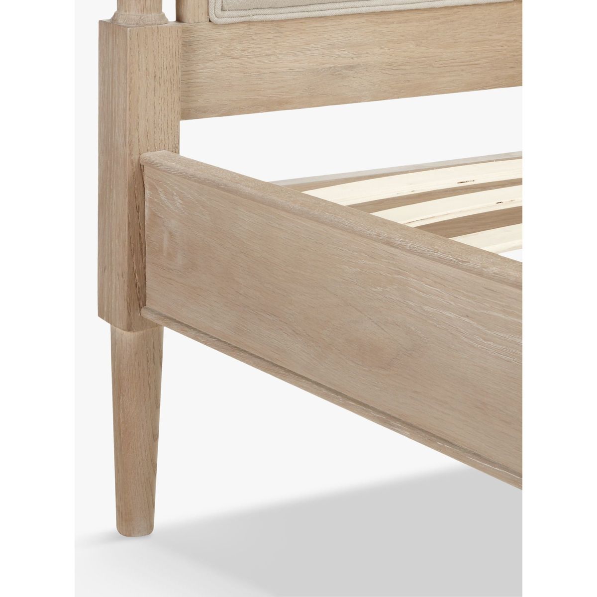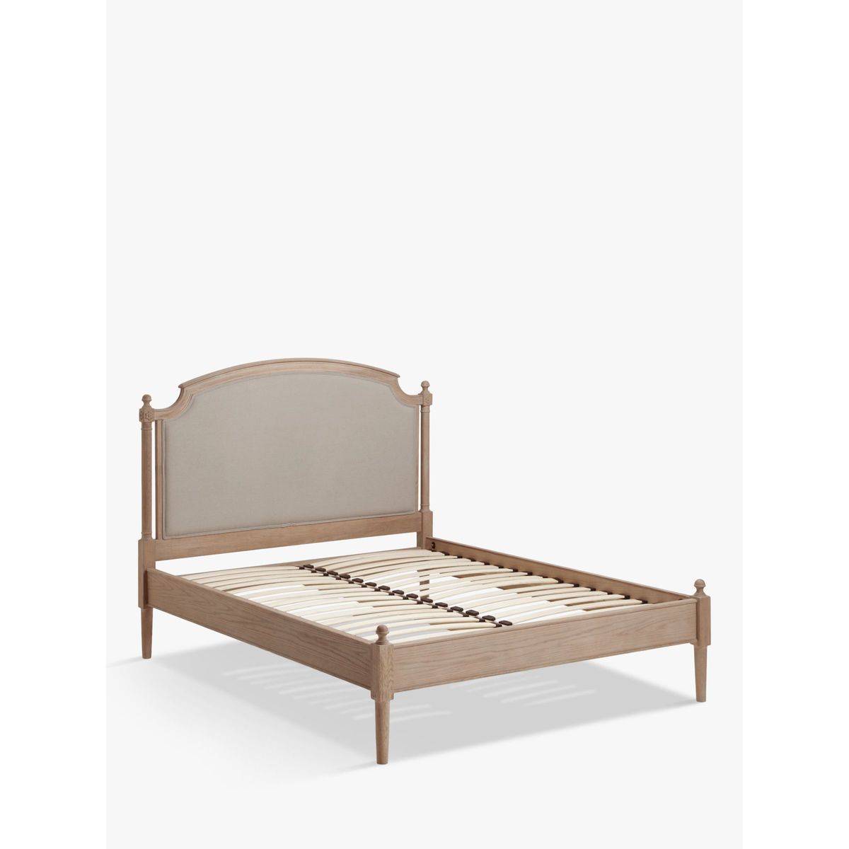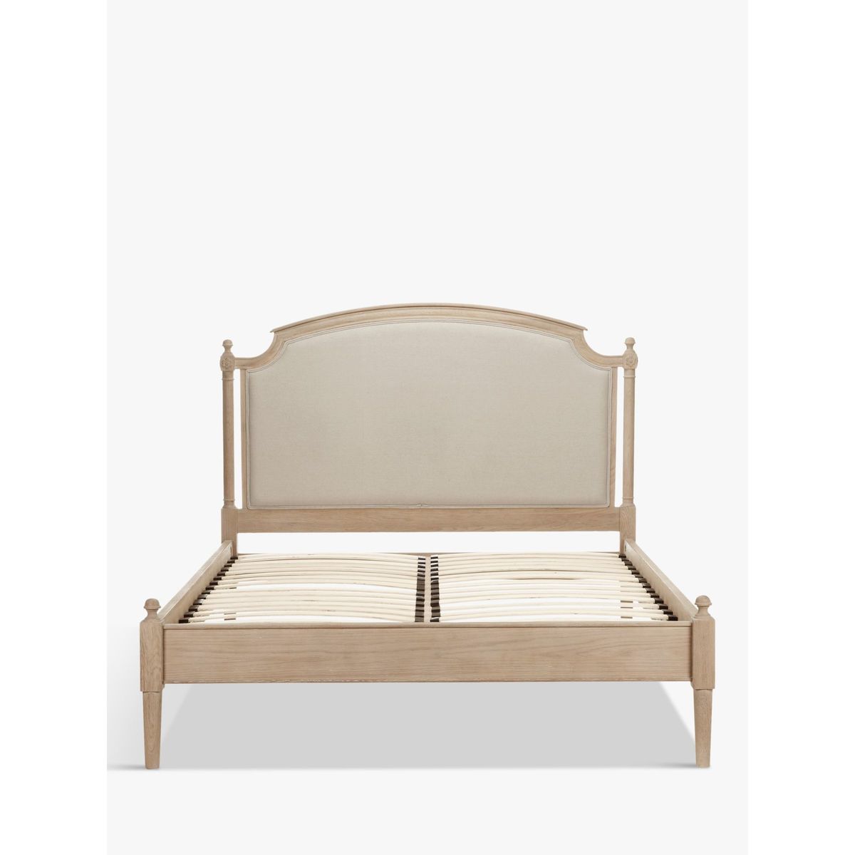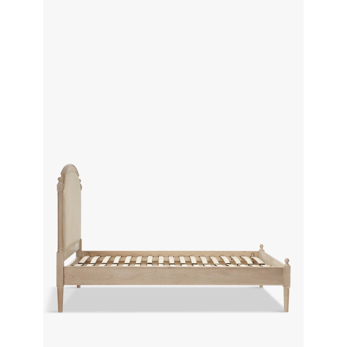 With a design inspired by ornate Louis XV era furnishings, this Etienne bedstead is upholstered in a neutral cotton and linen fabric that complements the aged finish of the outer wood frame. Hand-distressed wood gives this bed an air of antique appeal: the resulting appearance is full of character and charm, expressing individuality to enhance a variety of décors. The beautiful Etienne bedroom collection is crafted from solid oak and oak veneers cultured in a rustic rich tone with an artistic weathered finish. This charming collection of bedroom pieces features handcrafted carvings and delicate profiles, illustrating superb design and craftsmanship. Please note: not all our ranges are on display in our shops. Have you thought about a new mattress? Shop here.