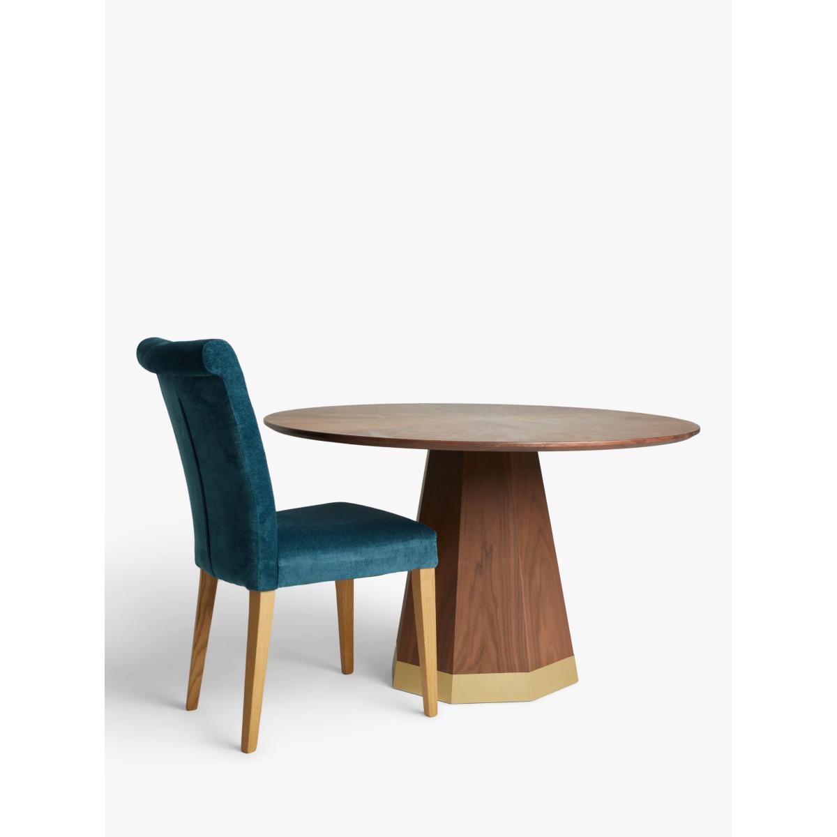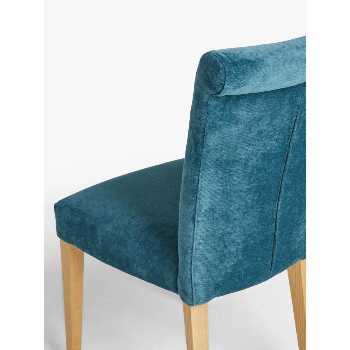 We've paid attention to the finer details to make this dining chair incredibly comfortable and robust. It's made from high-quality ash wood and MDF and upholstered in soft, Aquaclean-treated velvet. The seat is wide and deep and has a plush foam-filling, making it larger than conventional dining chairs and suitable for hours of continual use. Plus, the rolled edge on the high backrest and the tapered legs in a natural wood finish honours classic design principles. Brilliantly paired with a wooden dining table. Treated to prevent stains An Aquaclean treatment has been applied to this fabric which means you can banish the majority of household stains just with water. The treatment covers every fibre with an invisible coating that doesn't need to be re-treated or re-coated, making it a good choice for busy households where you might be worried about potential stains. Want to see it first? You may want to see and get a feel for the furniture in one of our shops before ordering. We'll be able to tell you where the range you'd like to view is on display.