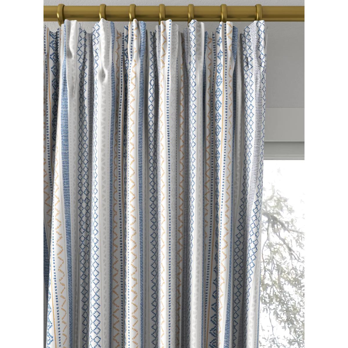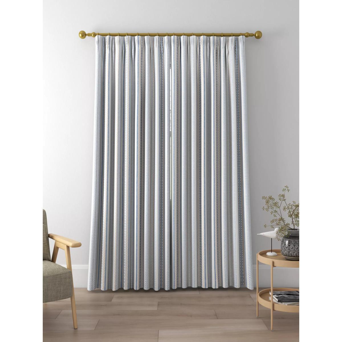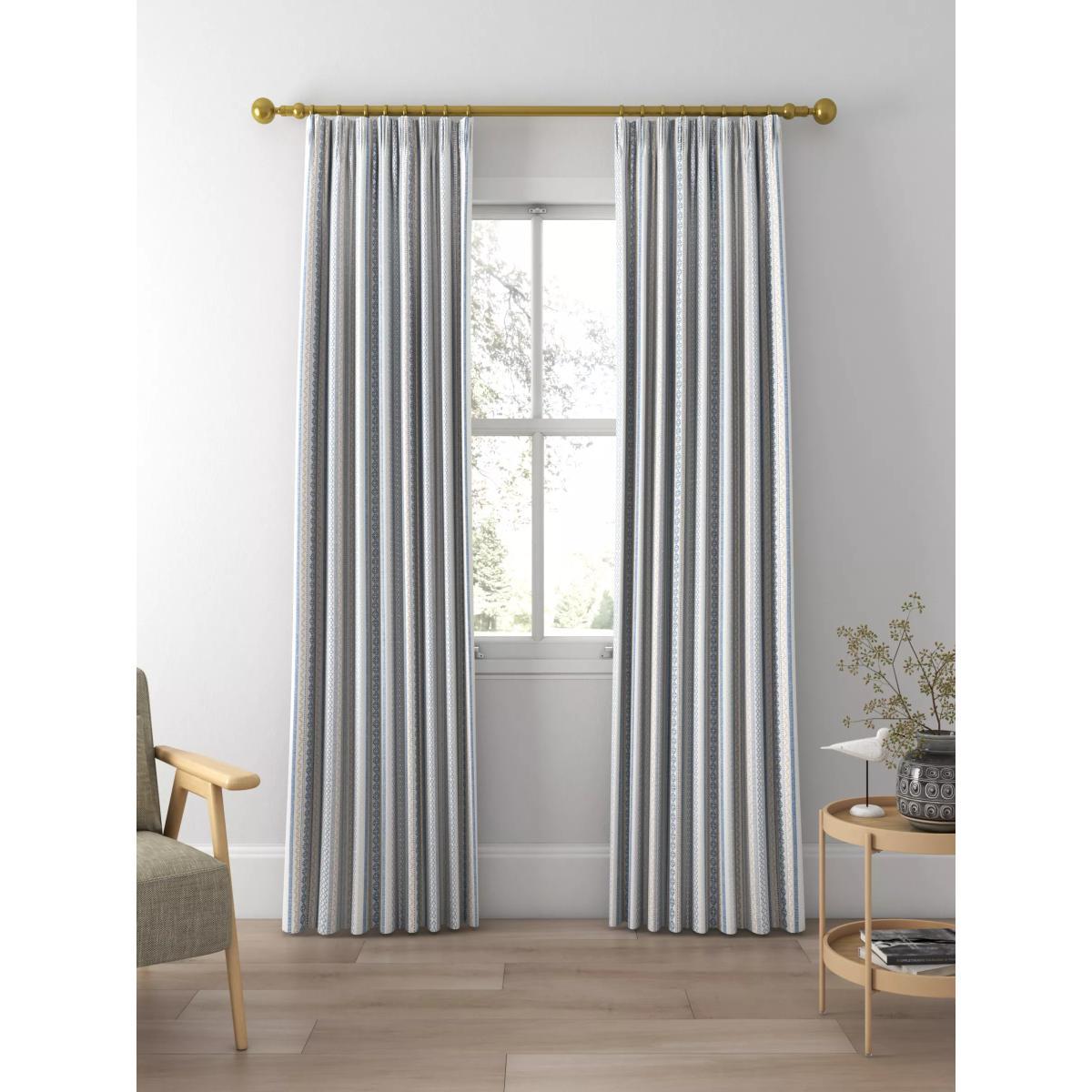 These jacquard curtains are woven with geometric stripe patterns giving a contemporary and rustic feel. The pencil pleat creates small, neat folds at the top of the curtain and the soft lining lends a full look, improving the drape and enhancing the vibrancy of the pattern. Choosing the right size These curtains can be hung with a pole or track using curtain hooks (not included). There are three hook positions on the heading, allowing you to choose how your curtains sit against the track or pole. For example, if you're using a track you may want to use the middle or lower row of hooks to cover the track, whereas if you're using a pole you may want to use the top row of hooks so the curtains hang below the rings. The specified drop is taken from the top row of hook pockets to the bottom edge of the curtain. The width stated indicates the size of one curtain panel when laid completely flat. This pack contains two panels, and the track/pole length we've recommended allows for the two panels to be gathered when the curtains are drawn. For a fuller look, increase the curtain width. One pair of 168cm width curtains will fit a curtain track/pole size of 133-168cm One pair of 228cm width curtains will fit a curtain track/pole size of 182-228cm Worth knowing... We package our curtains in recycled materials to keep them protected whilst they make their way to you. This means that when they arrive there could be some creases in them. We recommend you hang them for a few days to allow them to flatten and for the creases to fall out. If after this period your curtains still show signs of being folded then follow the ironing instructions on the back of the packaging. Be aware that each style of curtain has different ironing instructions, including heat limitations according to the fabric, so do make sure you follow the guidance provided to get the best results. Do you need a curtain pole and accessories?
