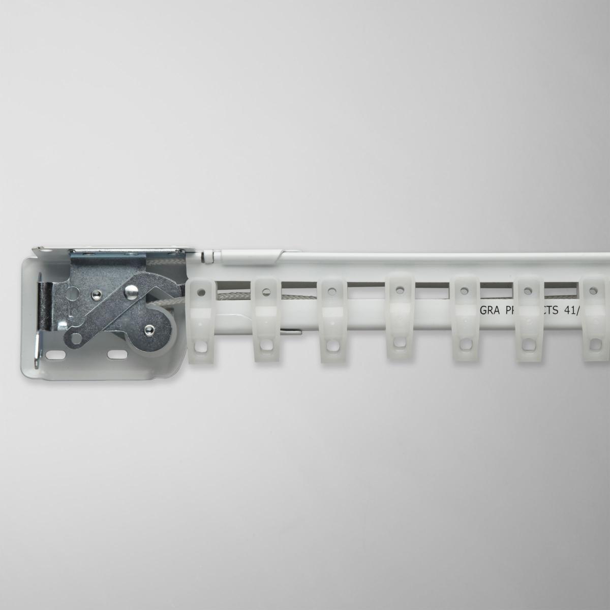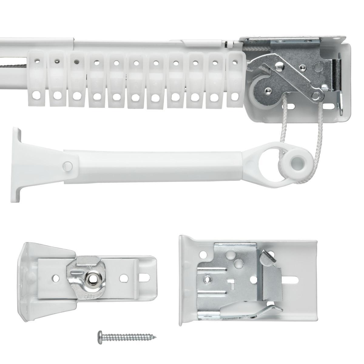 Extendable steel track suitable for medium to heavy weight curtains. For straight windows only. Fixings included. Universal brackets allow this track to be fixed to the ceiling, wall or window frame. These tracks operate with a cord, making curtains easier to draw and protecting the fabric from handling.