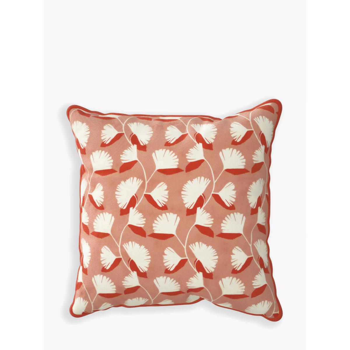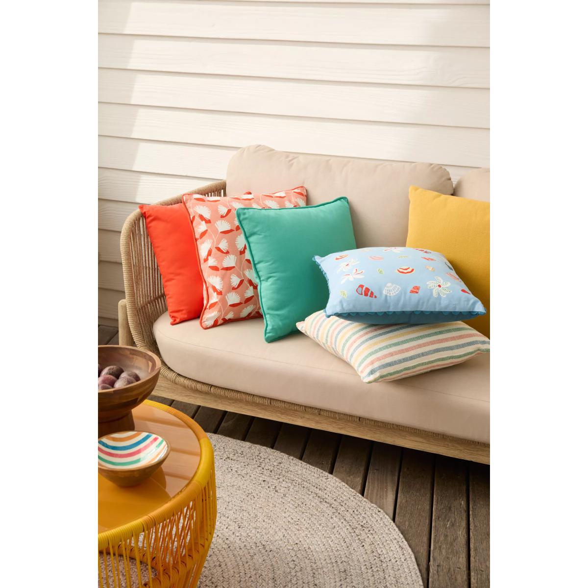 Add pattern and colour to garden or conservatory furniture with this shower-resistant floral cushion. Square-shaped, it's made of cotton with a coating to repel light rainfall. Bring it inside during cooler months and inclement weather. Better Cotton By choosing our cotton products, you’re supporting our investment in Better Cotton’s mission to help cotton communities survive and thrive while protecting and restoring the environment. Better Cotton Farmers are farmers who care for the environment and respect workers’ rights and wellbeing. This product is sourced via a system of mass balance and therefore may not contain Better Cotton.