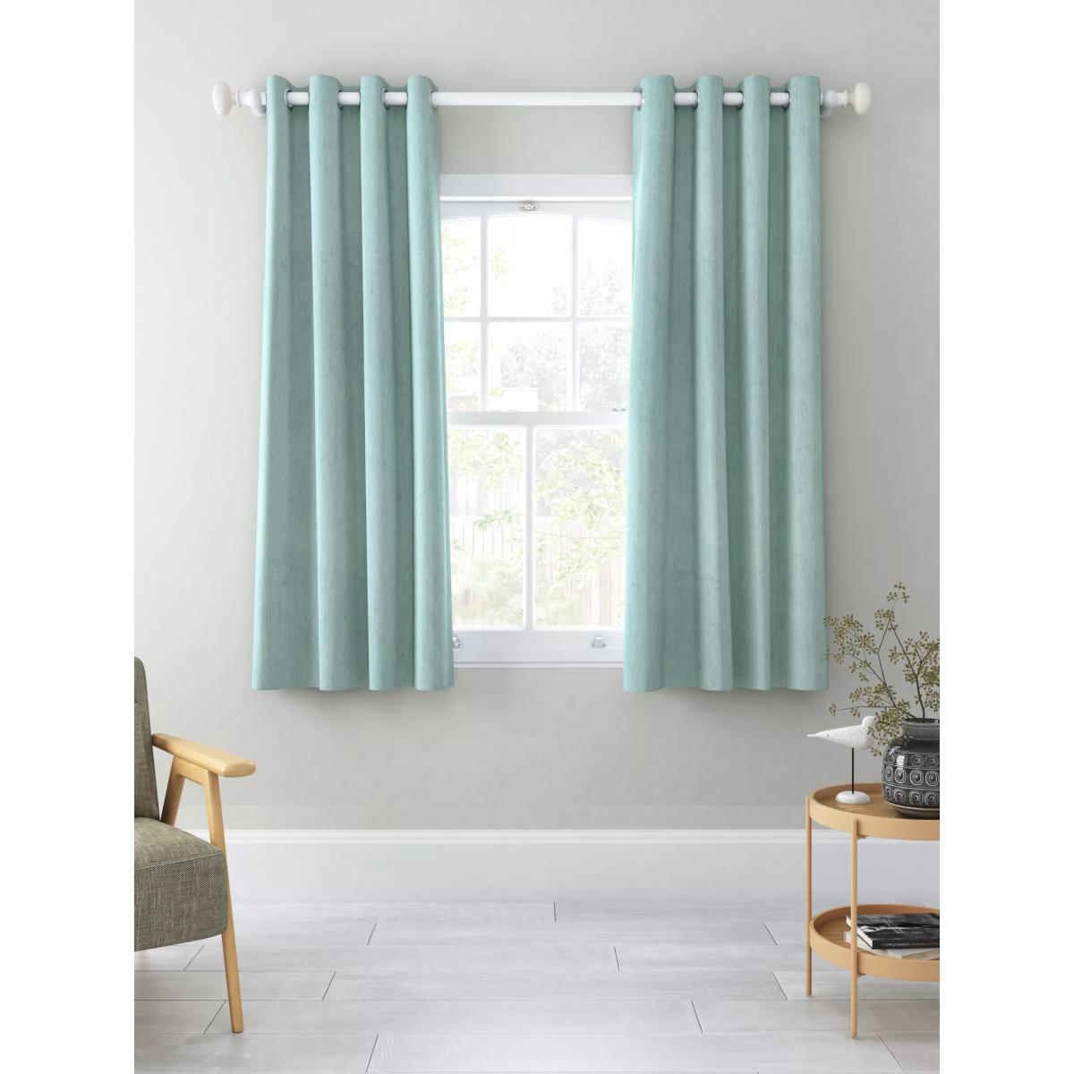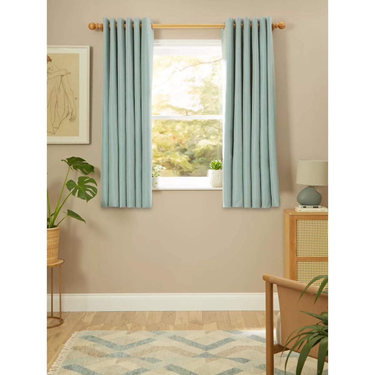 A pair of beautiful, blackout lined curtains with a sensual, silk-like feel and a terrific lustre. These curtains have an eyelet heading which gives them a more contemporary look with large, even folds. The blackout lining eliminates light and lends a full look to the curtain, improving the drape and enhancing the vibrancy of the pattern. Warm in winter, cool in summer As the blackout lining on these curtains blocks out sunlight they help keep your room cool as well as dark. This lining also adds an extra layer of insulation to the curtains, giving them the added benefit of being thermal. They protect against both heat loss and heat gain, regulating the temperature of your room so you’re kept warm in winter and cool in summer. The width stated indicates the size of one curtain panel when laid completely flat. This pack contains two panels, and the track/pole length we've recommended allows for the two panels to be gathered when the curtains are drawn. For a fuller look, increase the curtain width. One pair of 167cm width curtains will fit a curtain track/pole size 133-167cm One pair of 228cm width curtains will fit a curtain track/pole size 182-228cm Worth knowing... We package our curtains in recycled materials to keep them protected whilst they make their way to you. This means that when they arrive there could be some creases in them. We recommend you hang them for a few days to allow them to flatten and for the creases to fall out. If after this period your curtains still show signs of being folded then follow the ironing instructions on the back of the packaging. Be aware that each style of curtain has different ironing instructions, including heat limitations according to the fabric, so do make sure you follow the guidance provided to get the best results. Do you need a curtain pole and accessories?