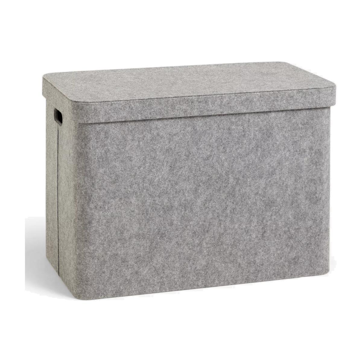 This felt-covered MDF storage box is ideal for storing all kinds of bits and bobs, helping to keep your home tidy and organised. It has a large capacity and features integrated handles to help you move it from place to place. Our felt is made using fibres that have been produced using recycled plastic bottles, helping to reduce the volume and environmental impact of plastic which could end up in a landfill.