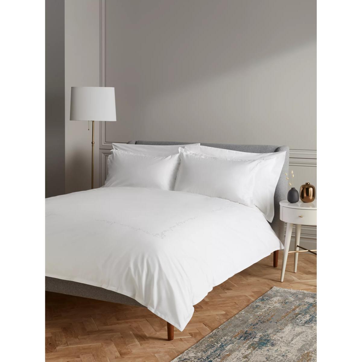 Rows of tiny embroidered flowers add interest to this otherwise plain and simple white bedding. Made from 100% cotton percale, the naturally breathable fabric helps keep you cool and comfortable throughout the night. Please note that duvet covers and pillowcases are sold separately and not in sets. Bedding sizes To fit duvet/pillow size (cm) Standard pillowcase, L75 x W50cm Single duvet cover, L200 x W135cm Double duvet cover, L200 x W200cm King duvet cover, L220 x W225cm Super king duvet cover, L220 x W260cm