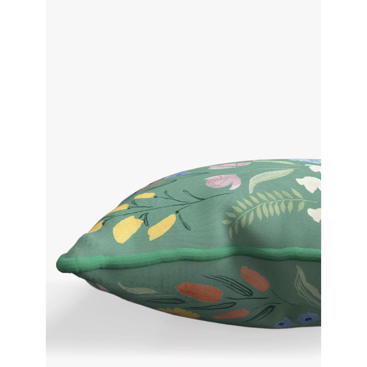Add pattern and colour to garden or conservatory furniture with this shower-resistant floral print cushion. Square-shaped, it's made of cotton with a coating to repel light rainfall. Bring it inside during cooler months and inclement weather. Better Cotton By choosing our cotton products, you’re supporting our investment in Better Cotton’s mission to help cotton communities survive and thrive while protecting and restoring the environment. Better Cotton Farmers are farmers who care for the environment and respect workers’ rights and wellbeing. This product is sourced via a system of mass balance and therefore may not contain Better Cotton.