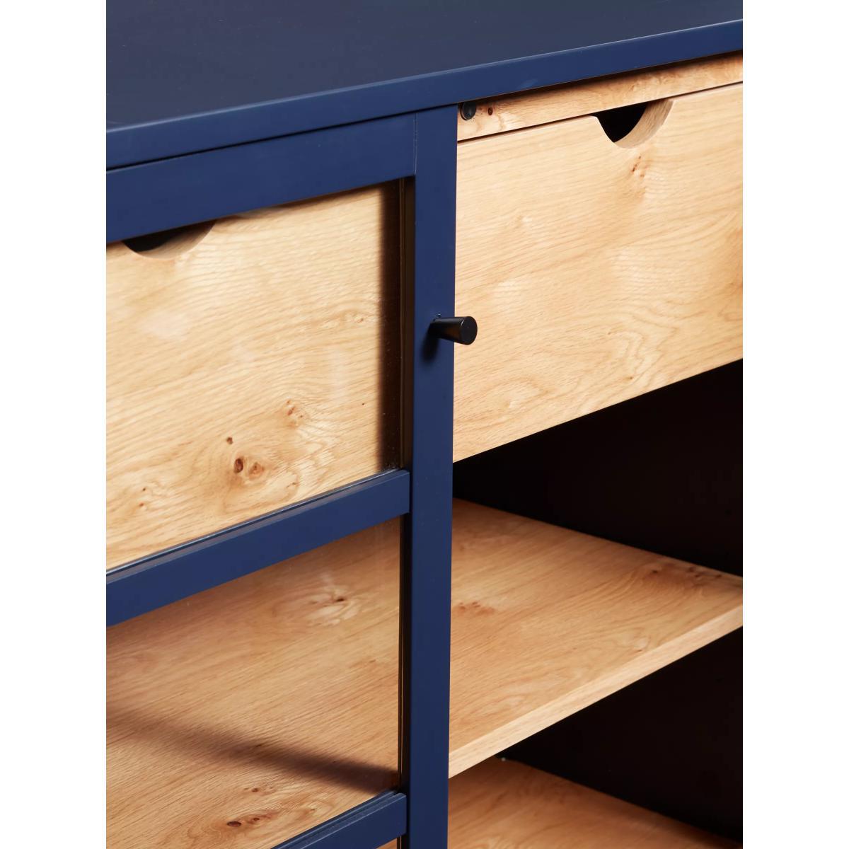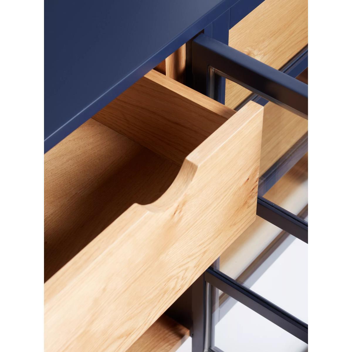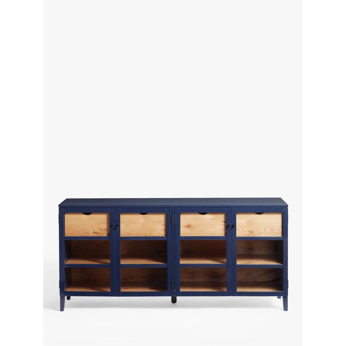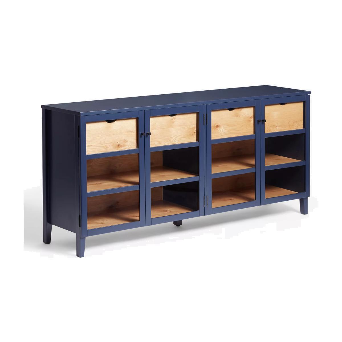 With a warm, painted finish and relaxed design inspired by classic Mediterranean interiors, we've made this spacious sideboard from a combination of high-quality oak and oak veneer. There's plenty of storage space thanks to internal shelving and four drawers, and the glass doors keep the design light and modern. Ideal if you want to introduce a dash of colour to your living room. Want to see it first? You may want to see and get a feel for the furniture in one of our shops before ordering. We'll be able to tell you where the range you'd like to view is on display.