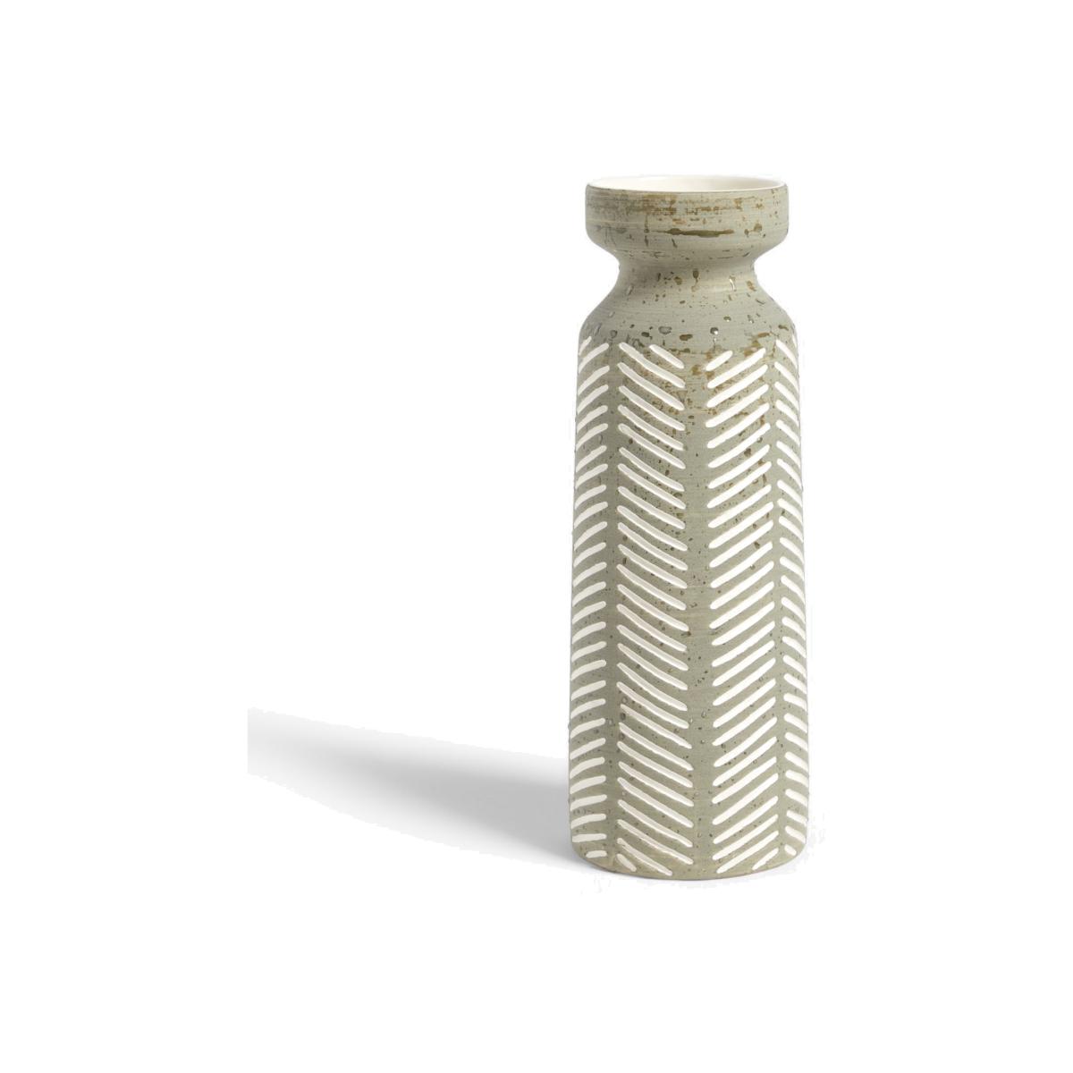 Made from earthenware our Funnel Line vase has diagonal lines marking its body which create the illusion of more length. Be aware that as it's handmade there could be variations in the colour of this vase. It means each piece is unique.