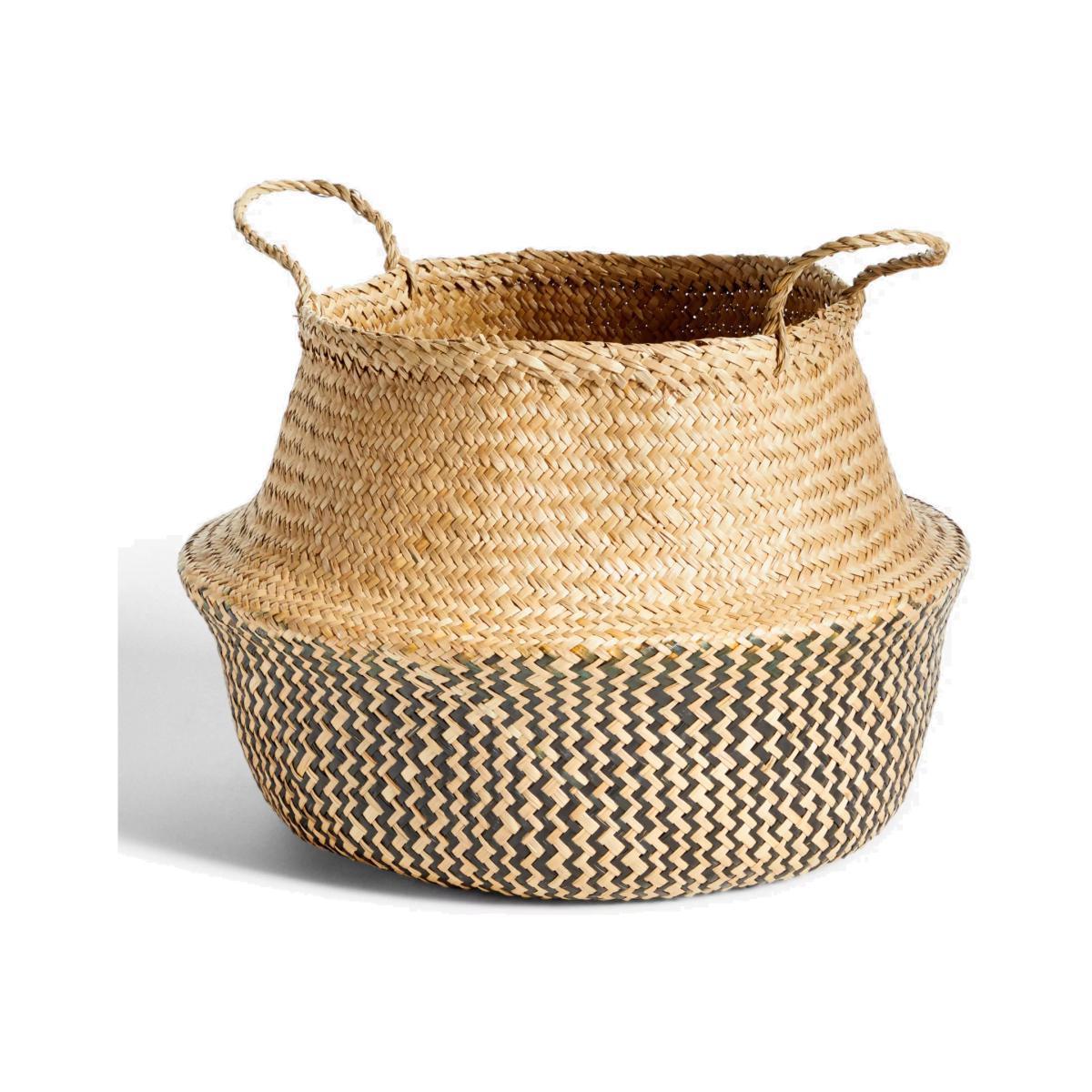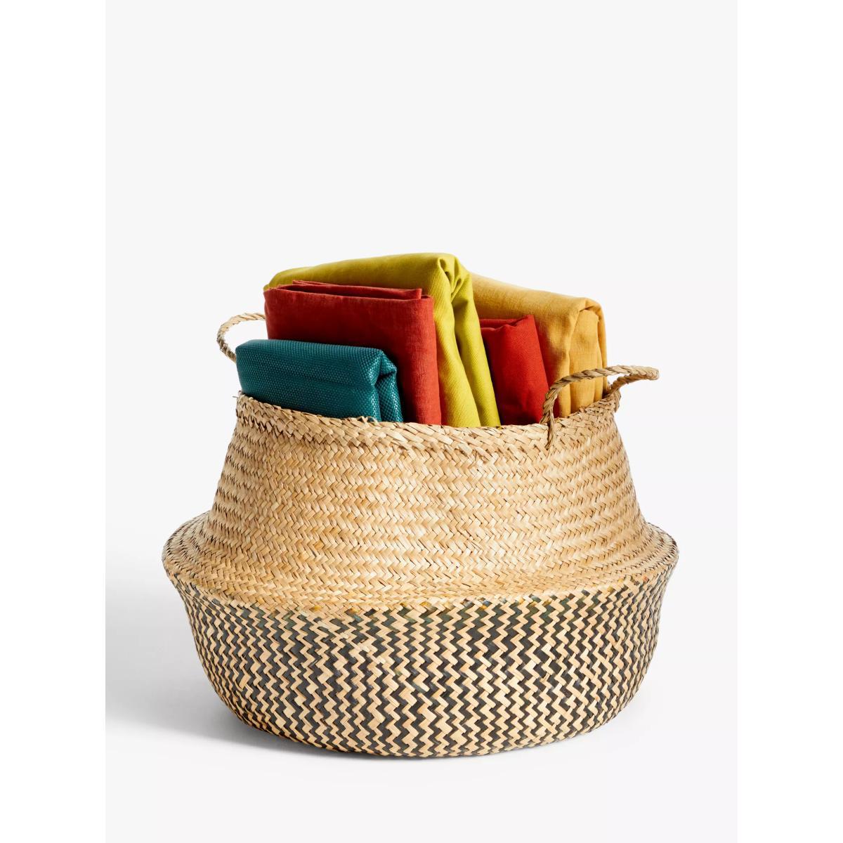 I love this basket for its blend of practicality and visual appeal. The black patterned seagrass offers a contemporary twist on a classic material, making it versatile enough to work in coastal, boho, or modern interiors. It’s perfect for adding texture and organisation to living rooms, bathrooms, or even bedrooms. Practical styling tips include using it to corral throws, magazines, or bath linens, while its neutral tones allow it to seamlessly fit in with a range of colour palettes. To maximise its visual impact, try pairing it with other natural textures and layered textiles for a relaxed yet polished look.