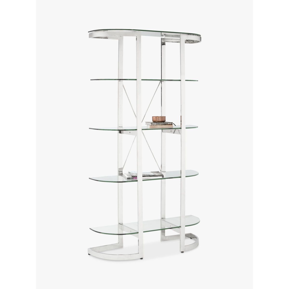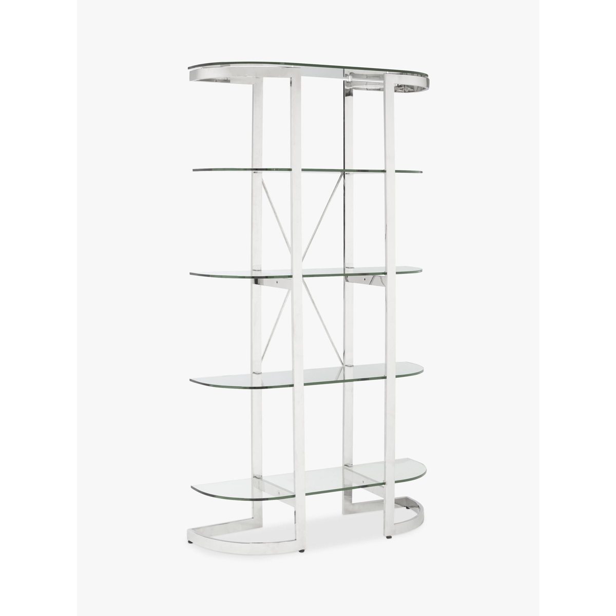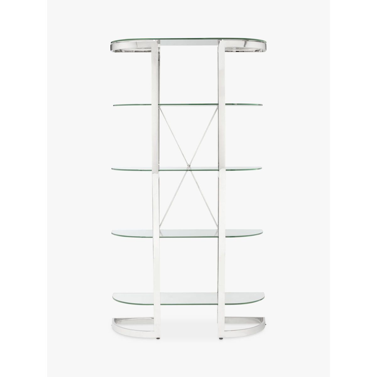Oozing luxurious deco appeal, our Gatsby range is made from 10mm tempered glass and sleek, 201 grade polished stainless steel for a chic boutique hotel look which reflects light to stunning effect. Incorporating appealing curved elements, this collection nods to the timeless elegance of Art Deco design, whilst its versatile materials will slot effortlessly into all manner of interior schemes. Display books and decorative accessories on this striking four-shelf bookcase, to show your favourites off to full effect. The glass shelves instantly create the look and feel of more space, while the stunning metal frame lends a unique structure which elevates this storage piece to statement status.