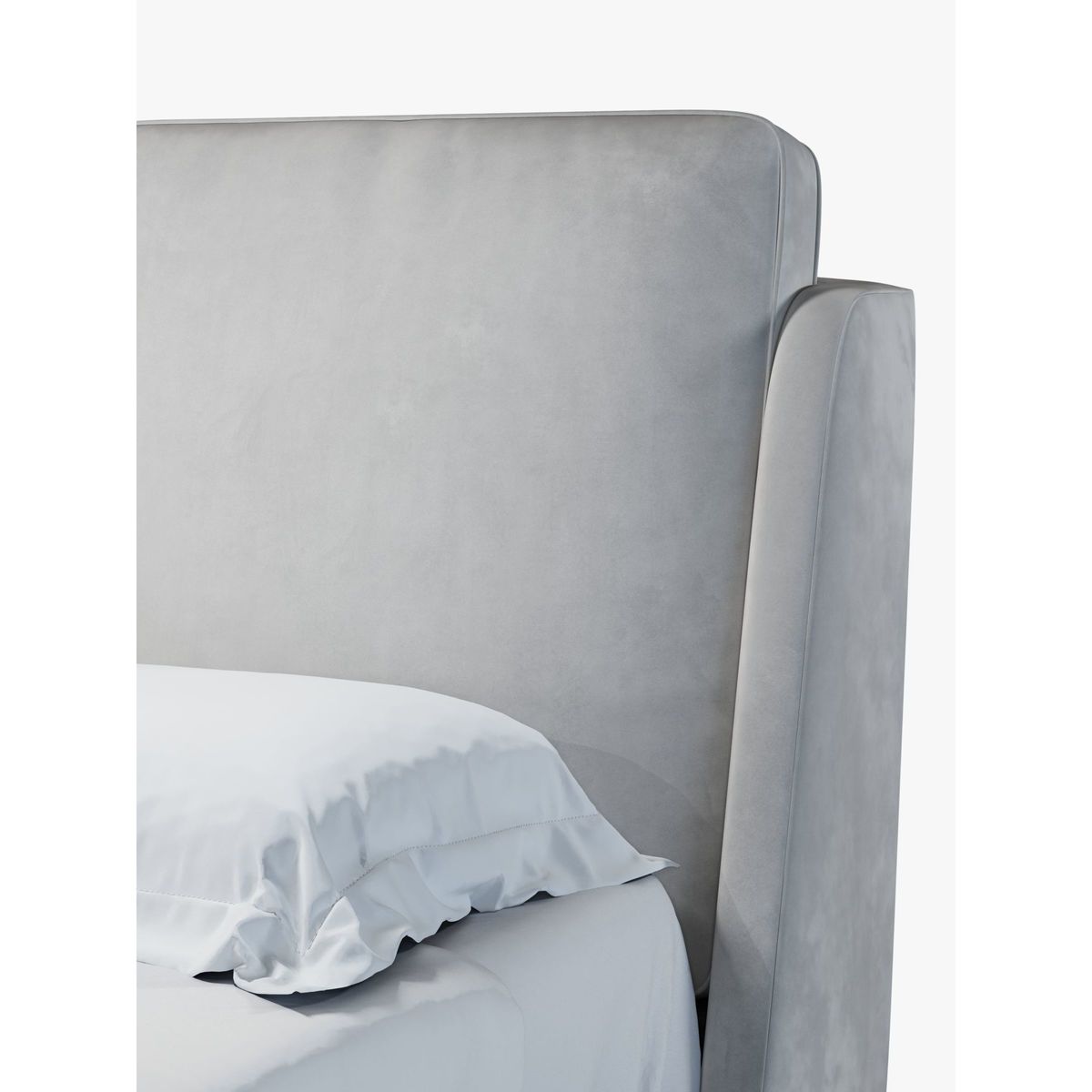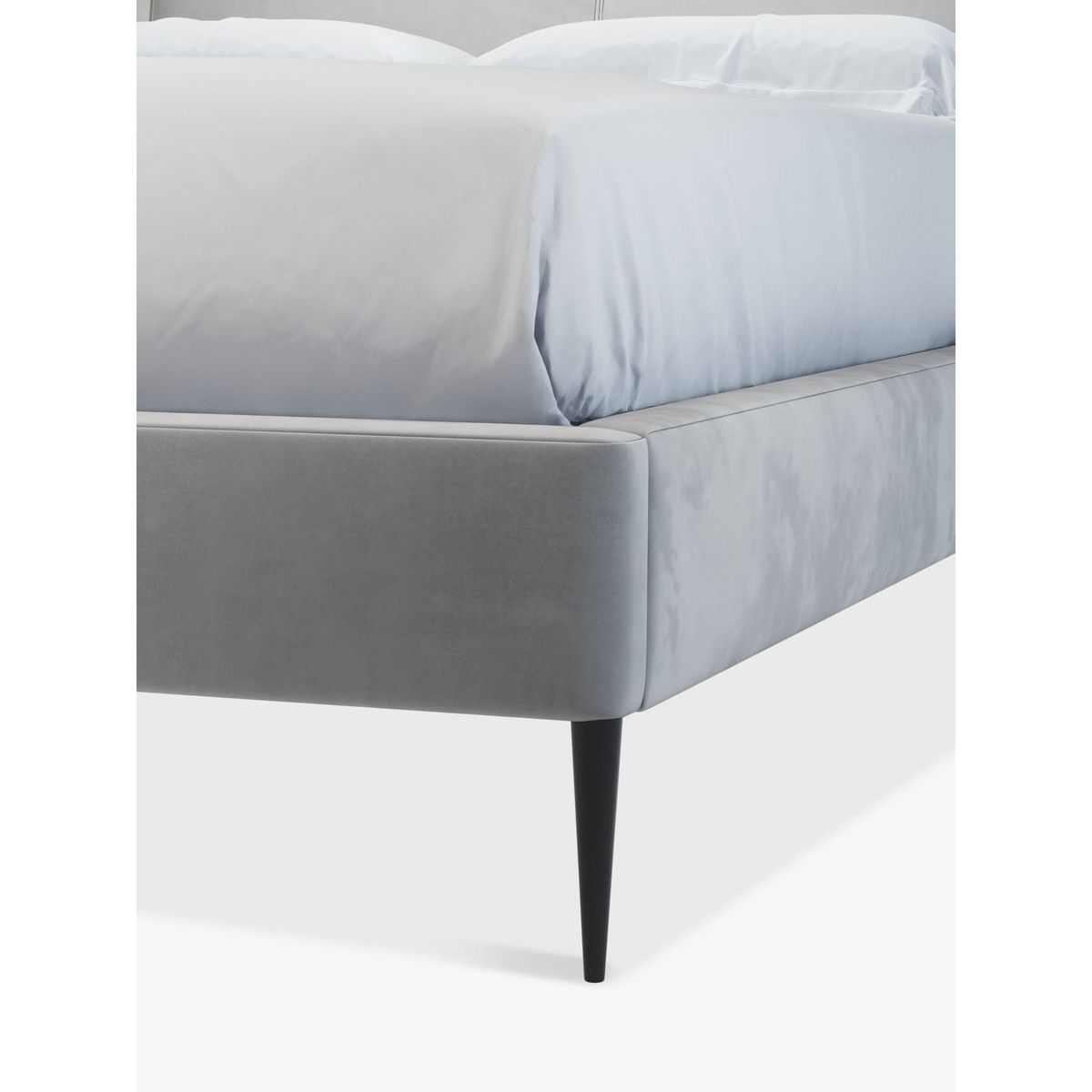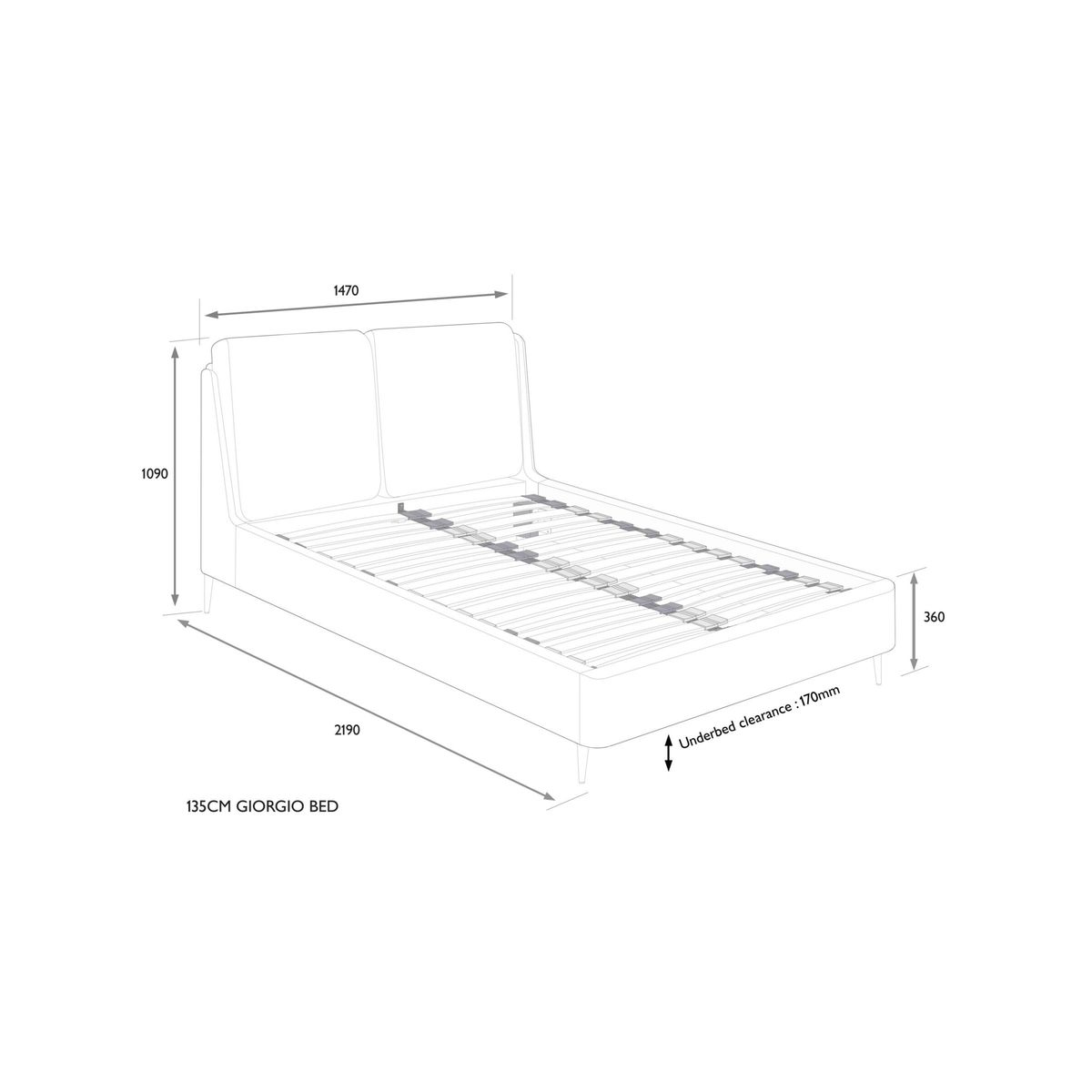 The Giorgio bed frame is designed with a premium, yet current feel in mind. Its cushioned back and modern, clean-lined frame is supported with sleek black tapered legs. Ideal for elevating your bedroom decor, it has sprung slats that offer additional support for you and your mattress. Upholstered in our Band B fabric, Opulence. Offering a luxurious, soft touch, this velvet-feel fabric is available in a rich colour palette. Smart Slats This bed frame is designed with wider slats at the shoulders, lumbar and feet, that provide maximum support for your mattress so that you experience perfect spinal alignment while you sleep. Standard slat caps are black so we have added grey slat caps to ensure that you know where to place the wider slats.
