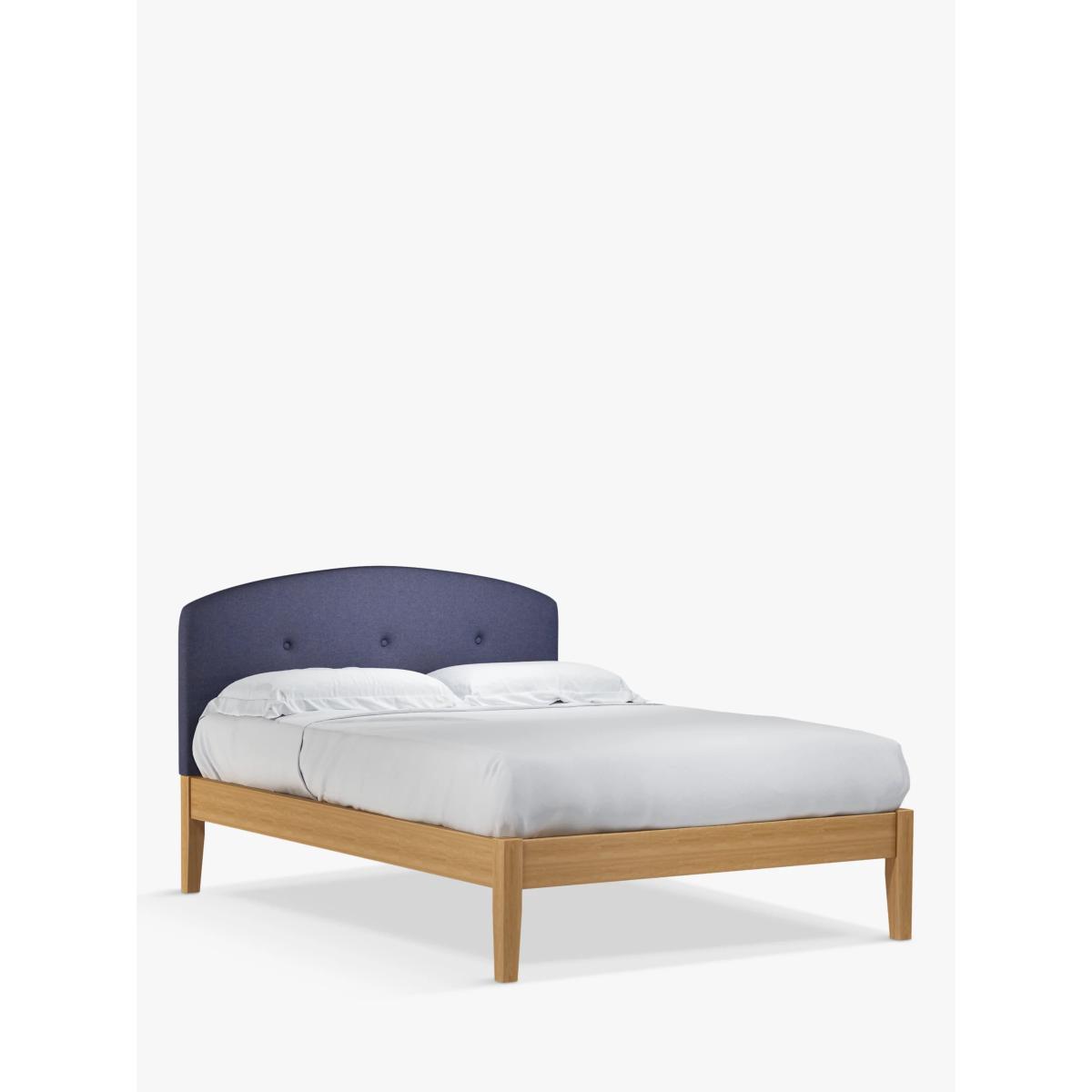 Meet Grace Kitami , our bed frame which is designed with an upholstered headboard and a sturdy solid oak base. It's a classic shape, but the gently curved and well-padded headboard gives it a modern edge. It's accented with button detailing and it can be upholstered in a fabric of your choice. Sprung slats in the base provide a supportive and responsive foundation for your mattress. Built with Smart Slats This bed frame is designed with wider slats at the shoulders, lumbar and feet. They provide maximum support for you and your mattress so that you experience perfect spinal alignment while you sleep. The standard slat caps are black so we have added grey slat caps to ensure that you know where to place the wider slats. Choose from one of our fabrics: Our Band A fabric, Topaz is woven to create a linen-effect feel Our Band A fabric, Saga is woven with man-made fibres, making it exceptionally durable and versatile Our Band B fabric, Erin has a velvet-style, chenille feel. It's woven with man-made fibres to create a beautifully soft yarn and can appear two-tone in different lights Our Band B fabric, Opulence is a soft and luxurious velvet-like fabric Our Band B fabric, Mole is a soft and cosy woven wool-blend. Piling and bobbling may occur naturally over time Our Band C fabric, Aquaclean Harriet is made from a short, dense pile of velvet that has a soft, brushed finish. An Aquaclean treatment has been applied to this resilient fabric which means you can banish the majority of household stains with water. The treatment covers every fibre with an invisible coating so it doesn't need to be retreated or re-coated. It will naturally develop lines, scuffs and shading over time. Want to see it first? You may want to see and get a feel for the furniture before ordering. Pop into one of our shops to see the full range of colours and fabrics on offer. We'll be able to tell you where the range you'd like to view is on display.