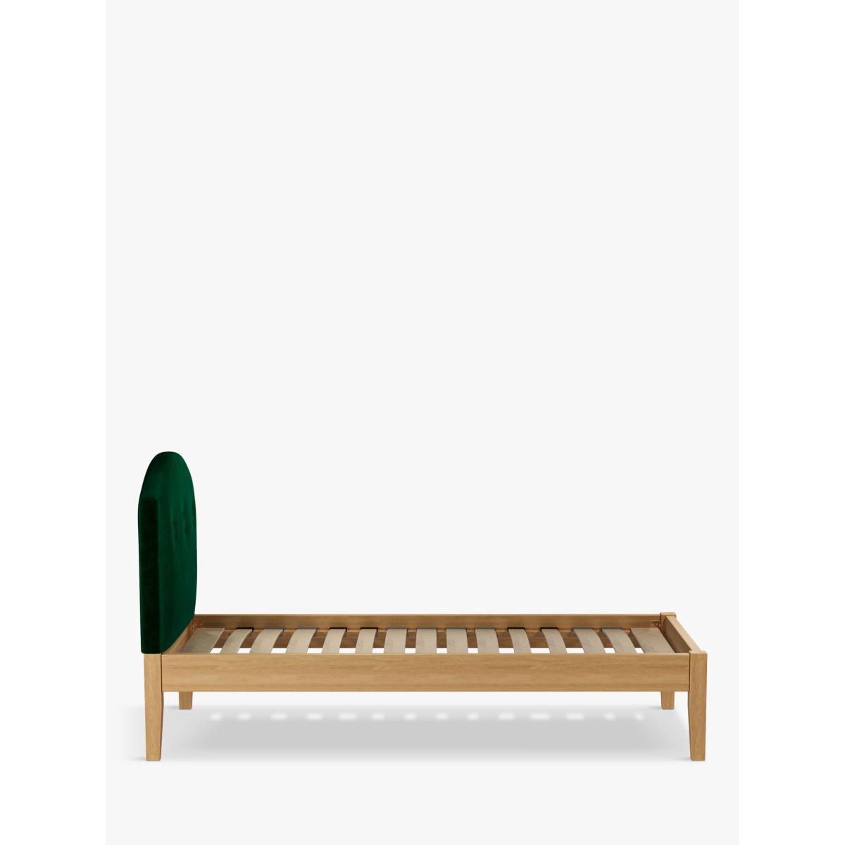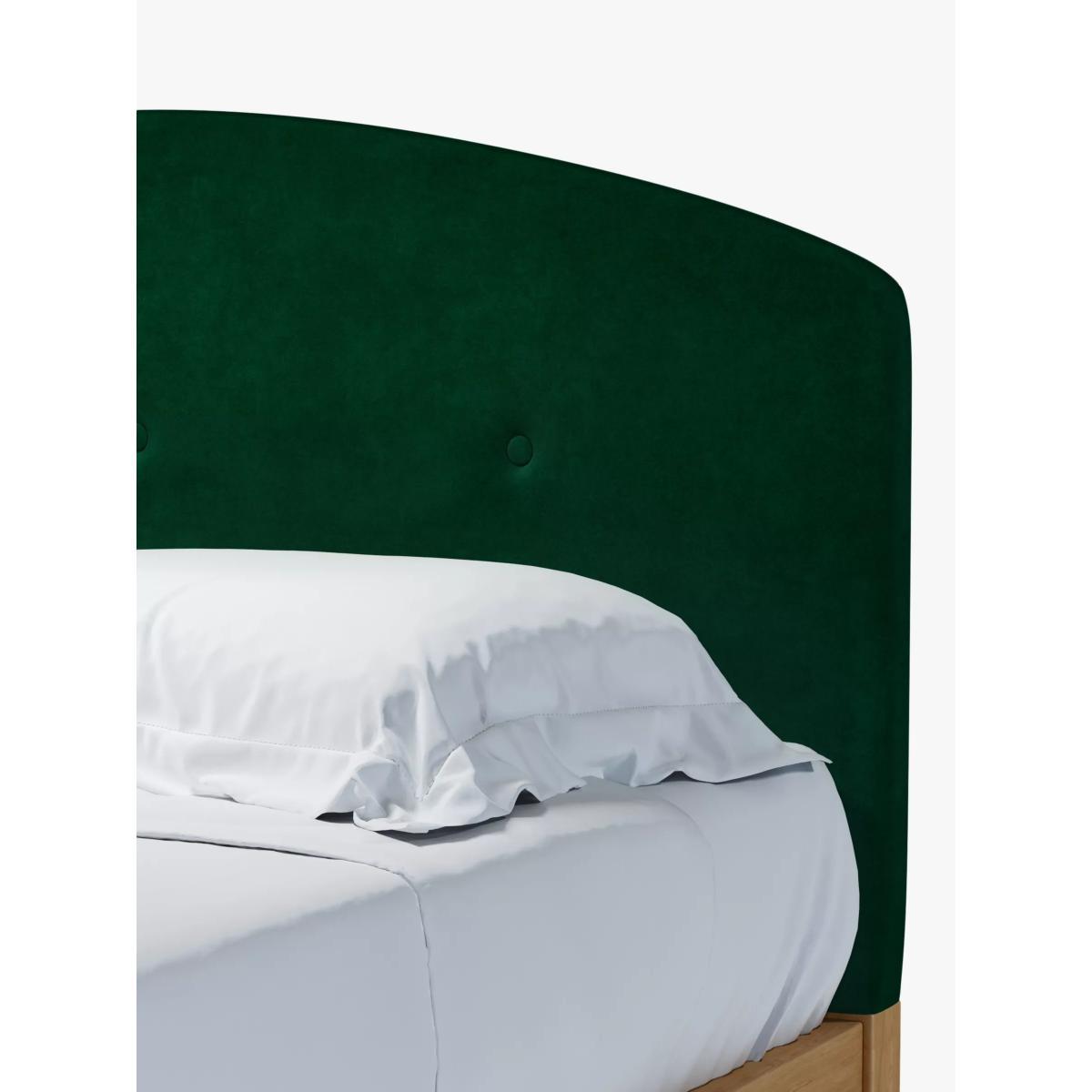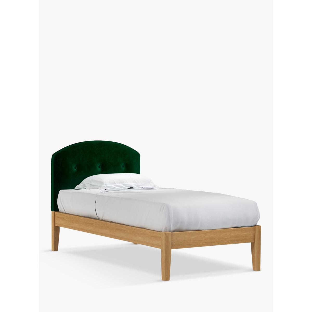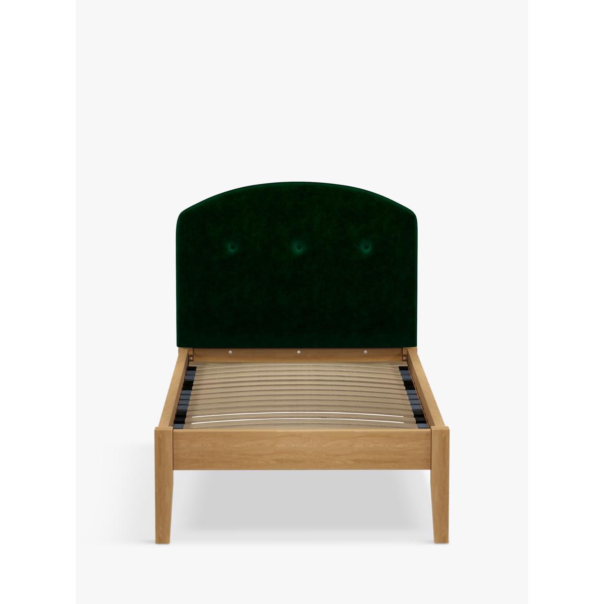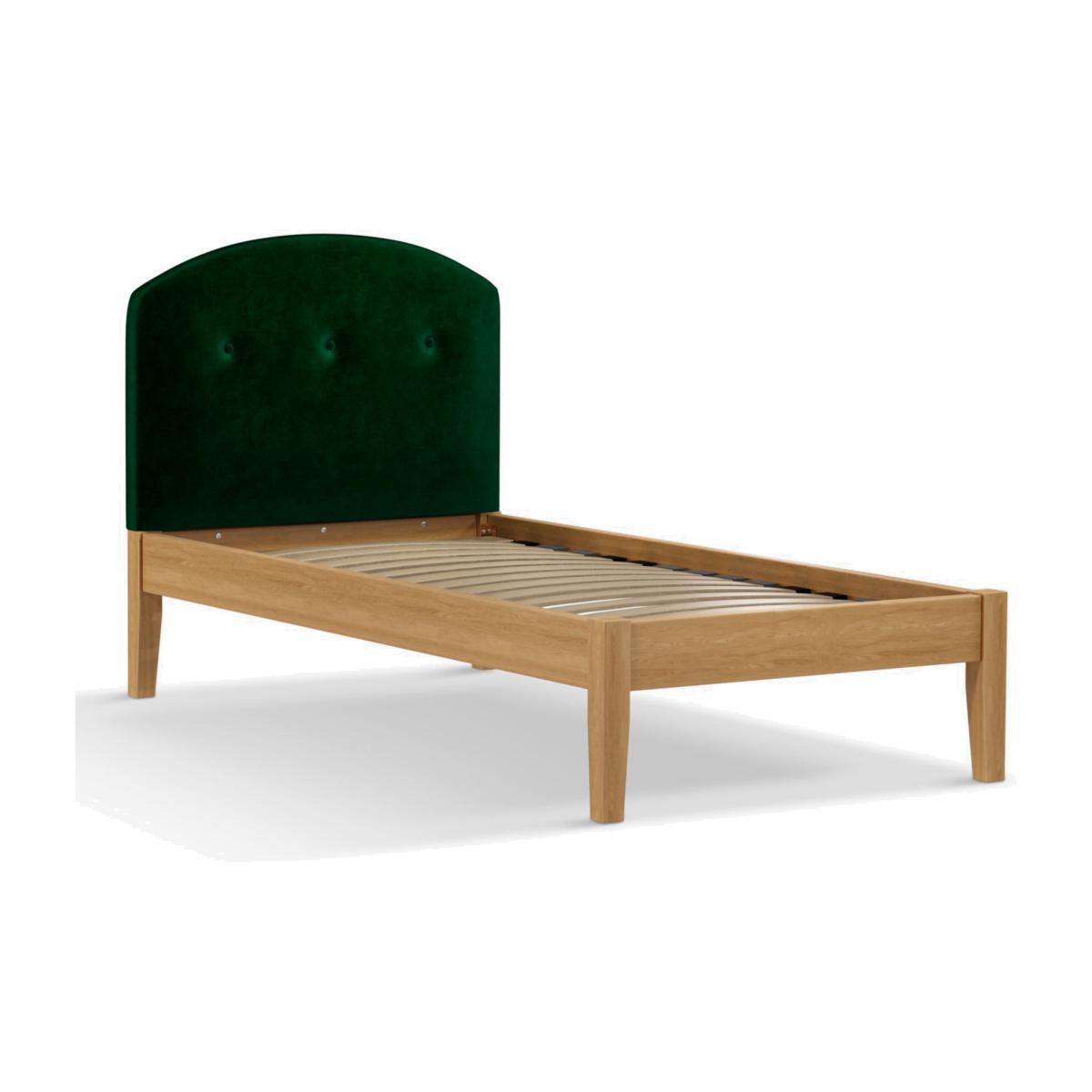 Meet Grace Kitami , our bed frame which is designed with an upholstered headboard and a sturdy solid oak base. It's a classic shape, but the gently curved and well-padded headboard gives it a modern edge. It's accented with button detailing and it can be upholstered in a fabric of your choice. Sprung slats in the base provide a supportive and responsive foundation for your mattress. Built with Smart Slats This bed frame is designed with wider slats at the shoulders, lumbar and feet. They provide maximum support for you and your mattress so that you experience perfect spinal alignment while you sleep. The standard slat caps are black so we have added grey slat caps to ensure that you know where to place the wider slats. Choose from one of our fabrics: Our Band A fabric, Topaz is woven to create a linen-effect feel Our Band A fabric, Saga is woven with man-made fibres, making it exceptionally durable and versatile Our Band B fabric, Erin has a velvet-style, chenille feel. It's woven with man-made fibres to create a beautifully soft yarn and can appear two-tone in different lights Our Band B fabric, Opulence is a soft and luxurious velvet-like fabric Our Band B fabric, Mole is a soft and cosy woven wool-blend. Piling and bobbling may occur naturally over time Our Band C fabric, Aquaclean Harriet is made from a short, dense pile of velvet that has a soft, brushed finish. An Aquaclean treatment has been applied to this resilient fabric which means you can banish the majority of household stains with water. The treatment covers every fibre with an invisible coating so it doesn't need to be retreated or re-coated. It will naturally develop lines, scuffs and shading over time. Want to see it first? You may want to see and get a feel for the furniture before ordering. Pop into one of our shops to see the full range of colours and fabrics on offer. We'll be able to tell you where the range you'd like to view is on display.