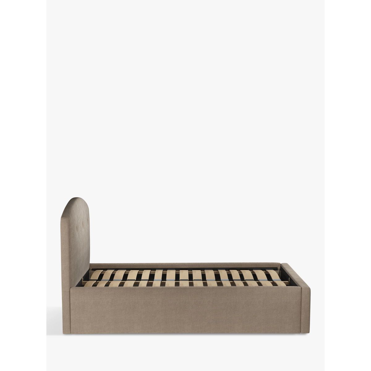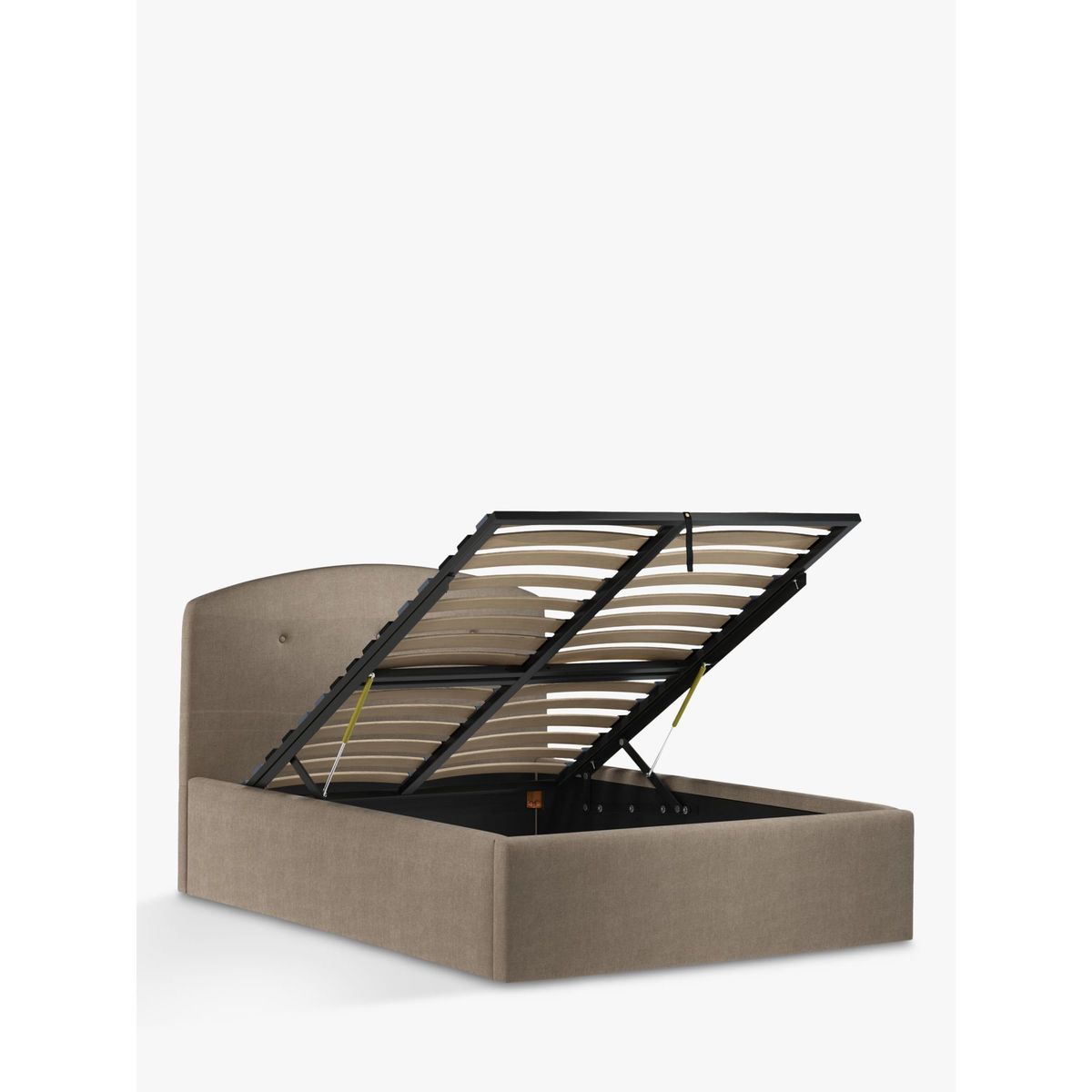 The Grace ottoman storage bed frame has a sophisticated design, thanks to button detailing on its carefully curved headboard. Its handle and hydraulic arms facilitate an easy manual lift-up, and reveals a functional and spacious storage space for linens. Sprung slats provide additional support for you and your mattress. Built with Smart Slats This bed frame is designed with wider slats at the shoulders, lumbar and feet. They provide maximum support for you and your mattress so that you experience perfect spinal alignment while you sleep. The standard slat caps are black so we have added grey slat caps to ensure that you know where to place the wider slats. Our Band A fabric, Saga is woven with man-made fibres, making it exceptionally durable and versatile. Our Our Band A fabric, Topaz is woven to offer a linen-effect feel, and is available in a versatile palette of colours. Our Band B fabric, Erin is woven with man-made fibres to create a beautifully soft yarn. This tactile, velvet-style chenille fabric exhibits a two-tone look in different lights. Our Band B fabric, Opulence offers a luxurious, soft-touch. This velvet-feel fabric is available in a rich colour palette. Our Band B fabric, Mole is a woven wool-blend that's soft and cosy. Piling and bobbling may occur naturally over time. Our Band B fabric, Shawford is a cotton-linen blend, that's textured with a subtle metallic finish. Our Band B fabric, Relaxed Linen is durable, resilient and versatile, woven from man-made and natural fibres Want to see it first? You may want to see and get a feel for the furniture in one of our shops before ordering. We'll be able to tell you where the range you'd like to view is on display.