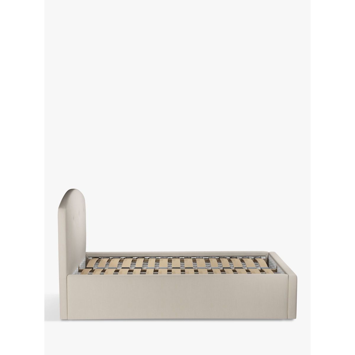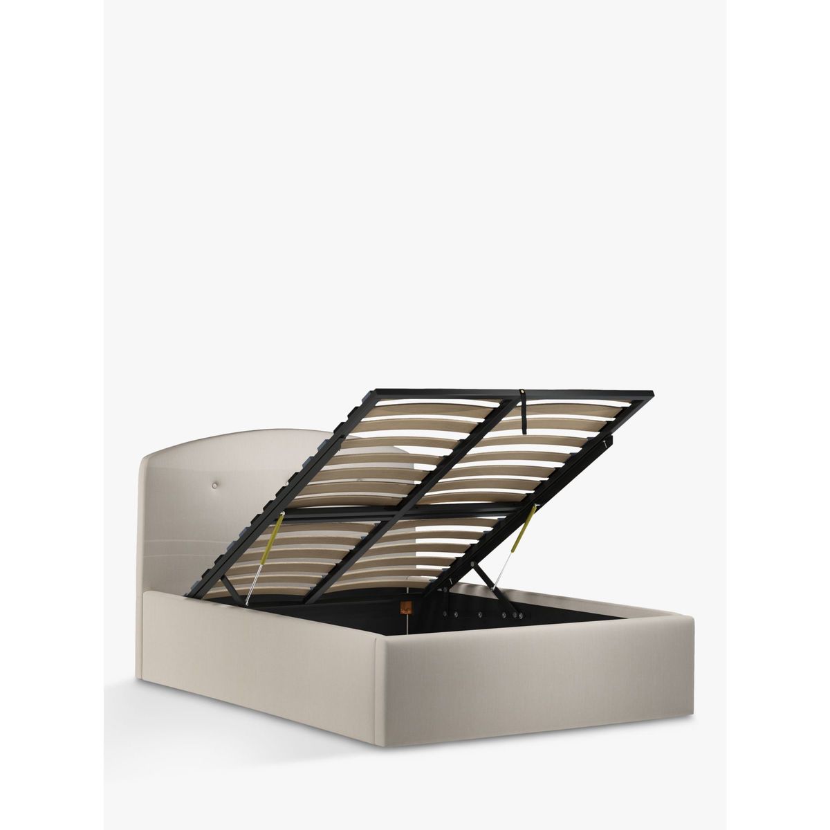 The Grace ottoman storage bed frame has a sophisticated design, thanks to button detailing on its carefully curved headboard. Its handle and hydraulic arms facilitate an easy manual lift-up, and reveals a functional and spacious storage space for linens. Sprung slats provide additional support for you and your mattress. Built with Smart Slats This bed frame is designed with wider slats at the shoulders, lumbar and feet. They provide maximum support for you and your mattress so that you experience perfect spinal alignment while you sleep. The standard slat caps are black so we have added grey slat caps to ensure that you know where to place the wider slats. Our Band A fabric, Saga is woven with man-made fibres, making it exceptionally durable and versatile. Our Our Band A fabric, Topaz is woven to offer a linen-effect feel, and is available in a versatile palette of colours. Our Band B fabric, Erin is woven with man-made fibres to create a beautifully soft yarn. This tactile, velvet-style chenille fabric exhibits a two-tone look in different lights. Our Band B fabric, Opulence offers a luxurious, soft-touch. This velvet-feel fabric is available in a rich colour palette. Our Band B fabric, Mole is a woven wool-blend that's soft and cosy. Piling and bobbling may occur naturally over time. Our Band B fabric, Shawford is a cotton-linen blend, that's textured with a subtle metallic finish. Our Band B fabric, Relaxed Linen is durable, resilient and versatile, woven from man-made and natural fibres Want to see it first? You may want to see and get a feel for the furniture in one of our shops before ordering. We'll be able to tell you where the range you'd like to view is on display.
