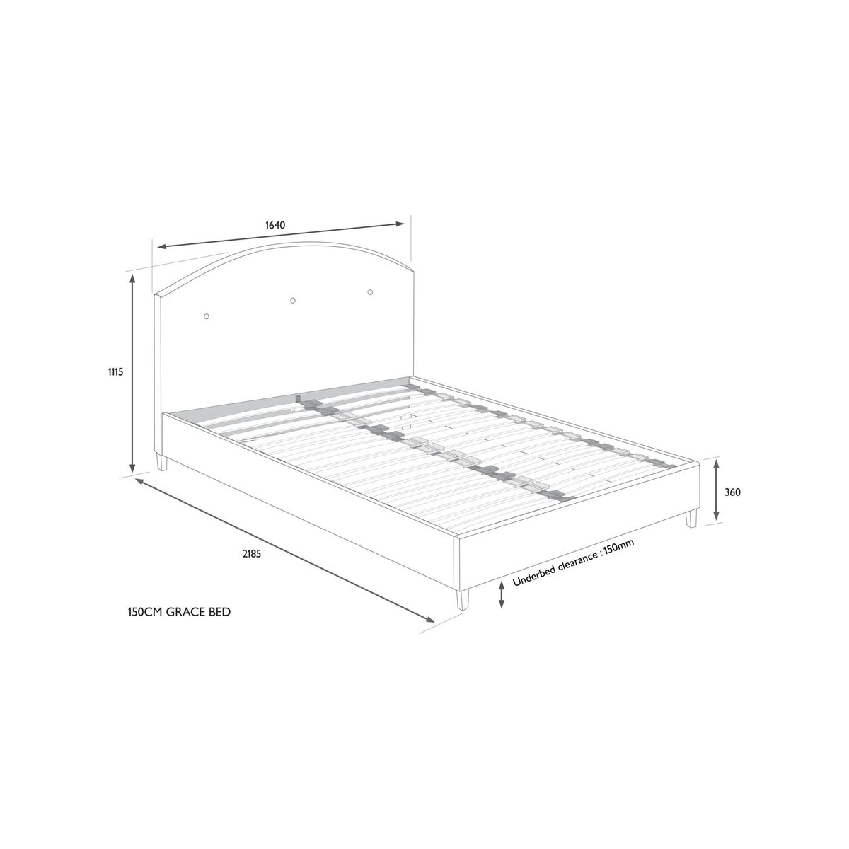 The Grace bed frame has an understated sophistication to its design, thanks to button detailing on its curved headboard. Featuring sprung slats that offer additional support for you and your mattress, it's supported by robust wooden legs for a durable finish. Smart Slats This bed frame is designed with wider slats at the shoulders, lumbar and feet, that provide maximum support for you and your mattress so that you experience perfect spinal alignment while you sleep. Standard slat caps are black so we have added grey slat caps to ensure that you know where to place the wider slats.