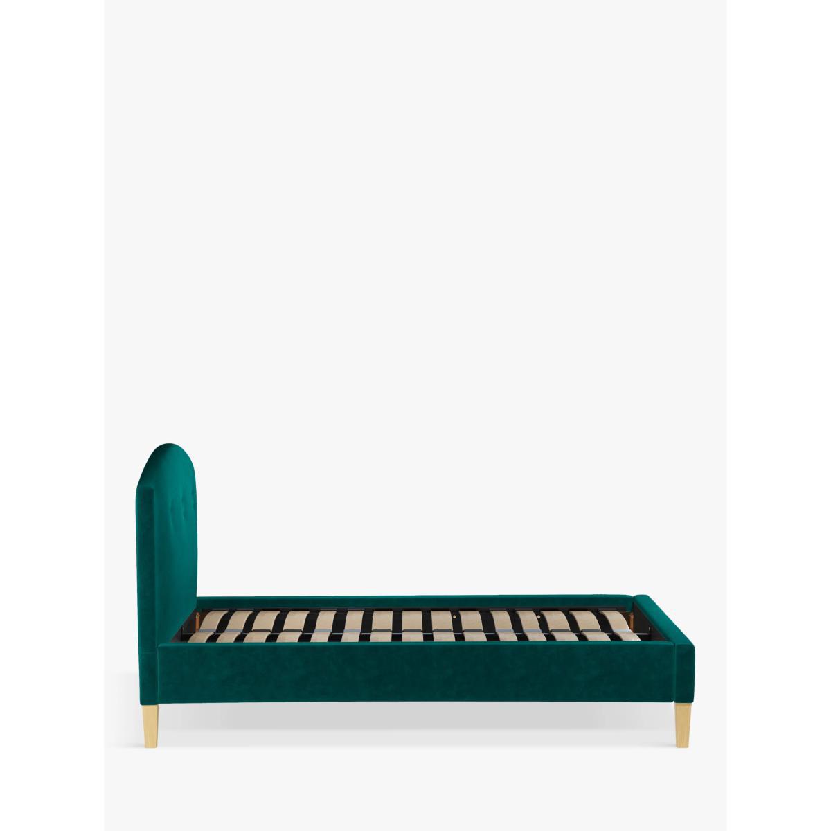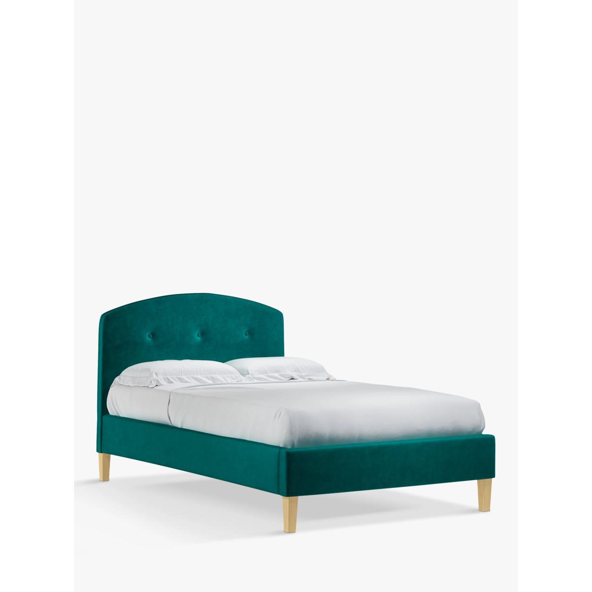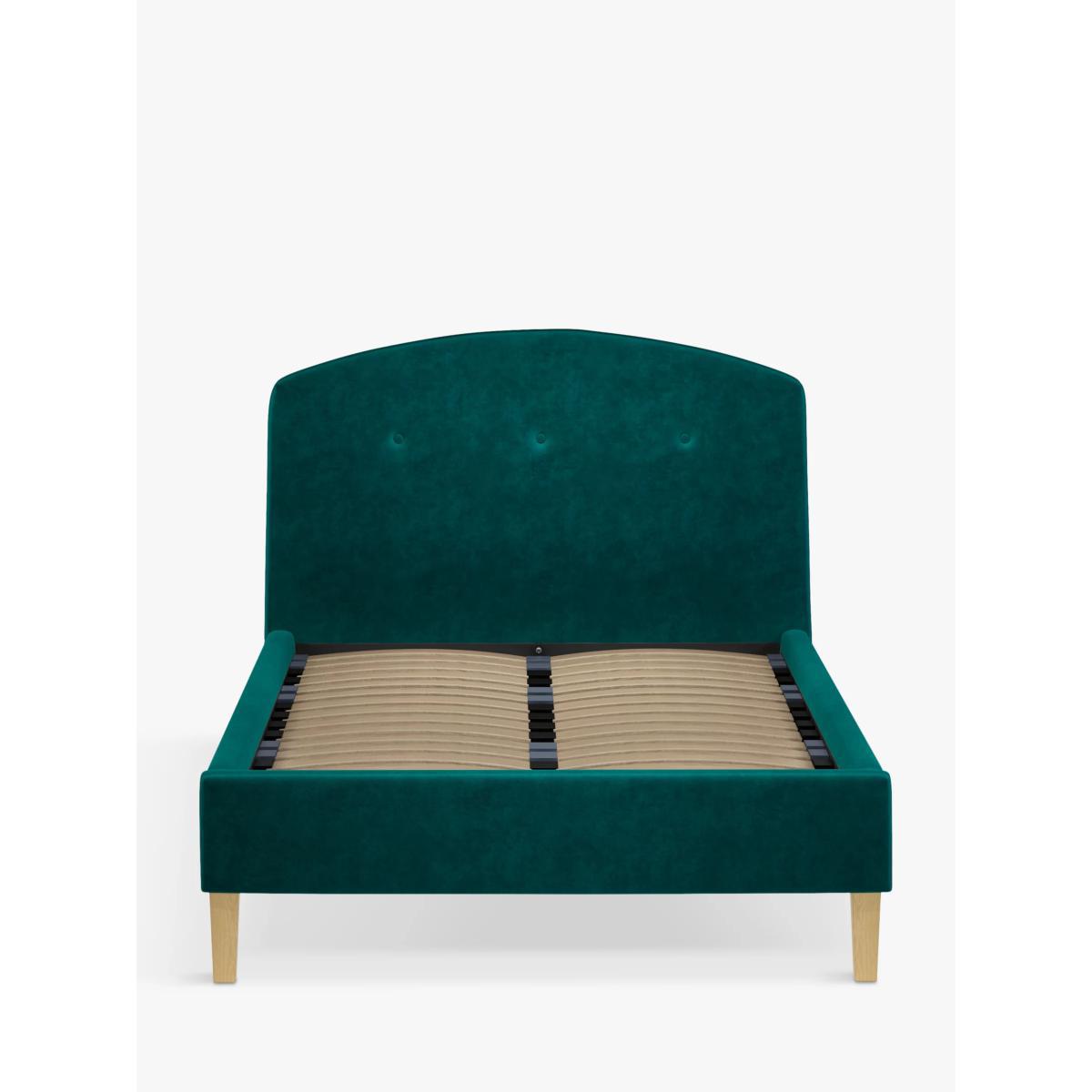 Our Grace bed frame is a classic shape, but the gently curved and well-padded headboard gives it a modern edge. It's accented with button detailing and sprung slats in the base provide a supportive and responsive foundation for your mattress. Built with Smart Slats This bed frame is designed with wider slats at the shoulders, lumbar and feet. They provide maximum support for you and your mattress so that you experience perfect spinal alignment while you sleep. The standard slat caps are black so we have added grey slat caps to ensure that you know where to place the wider slats. Choose from one of our fabrics: Our Band A fabric, Topaz is woven to create a linen-effect feel Our Band A fabric, Saga is woven with man-made fibres, making it exceptionally durable and versatile Our Band B fabric, Erin has a velvet-style, chenille feel. It's woven with man-made fibres to create a beautifully soft yarn and can appear two-tone in different lights Our Band B fabric, Opulence is a soft and luxurious velvet-like fabric Our Band B fabric, Mole is a soft and cosy woven wool-blend. Piling and bobbling may occur naturally over time Our Band B fabric, Relaxed Linen is durable, resilient and versatile, woven from man-made and natural fibres Our Band C fabric, Aquaclean Harriet is made from a short, dense pile of velvet that has a soft, brushed finish. An Aquaclean treatment has been applied to this resilient fabric which means you can banish the majority of household stains with water. The treatment covers every fibre with an invisible coating so it doesn't need to be retreated or re-coated. It will naturally develop lines, scuffs and shading over time. Want to see it first? You may want to see and get a feel for the furniture before ordering. Pop into one of our shops to see the full range of colours and fabrics on offer. We'll be able to tell you where the range you'd like to view is on display.