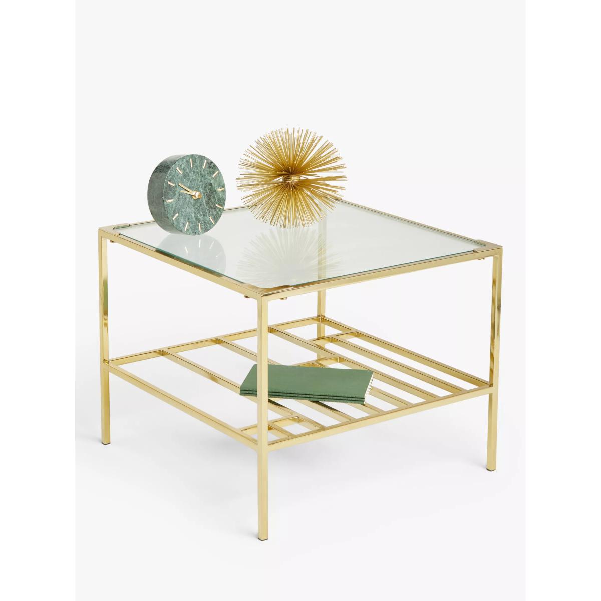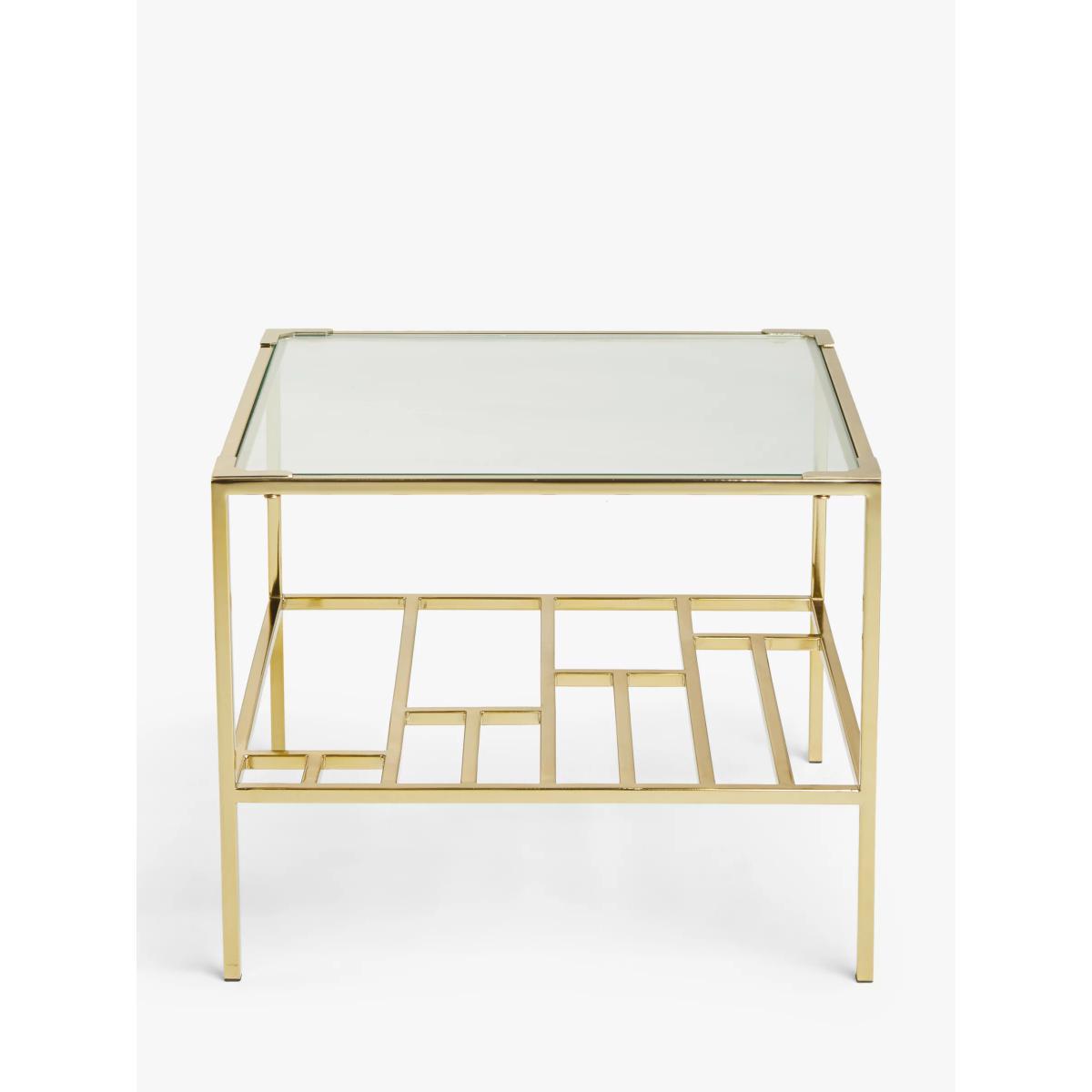 John Lewis & Partners Grid Glass Side Table, Clear/Gold