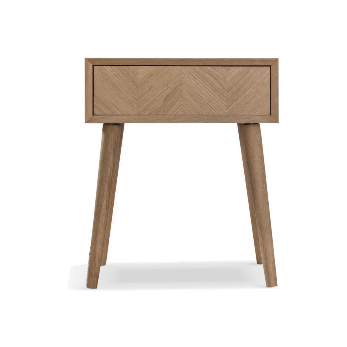 Our Haegen bedside table suits interiors which strive for simplicity. It's made from a combination of sturdy solid oak with veneers and its natural finish highlights the pattern of the wood grain. The design is sleek, with splayed legs that provide a stable base and an integrated drawer for storage. Want to see it first? You may want to see and get a feel for the furniture in one of our shops before ordering. We'll be able to tell you where the range you'd like to view is on display.