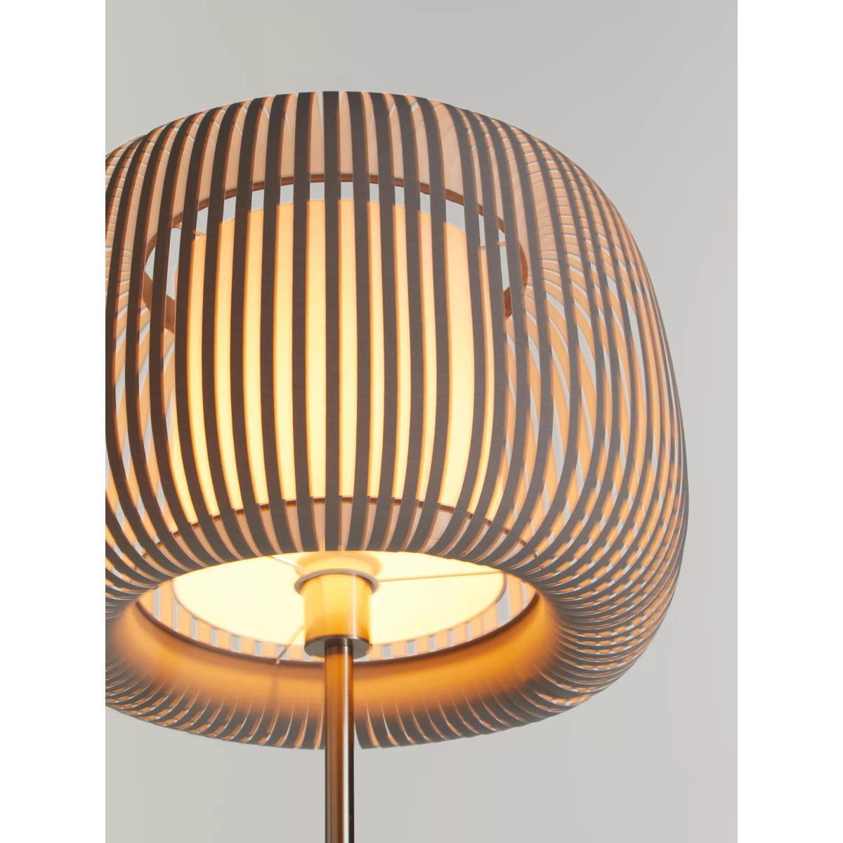 I love this lamp for its sleek, modern silhouette and warm, inviting glow. The delightfully textured shade adds visual interest without overpowering a space, making it a versatile piece for various interiors. It works particularly well in contemporary or minimalist rooms, but can also add a vintage or retro touch to more eclectic schemes. Practical styling tips include placing it next to a cosy reading chair or sofa in a living room, or using it as a statement piece in a corner to bring some ambient light. To keep the look cohesive, pair it with simple, streamlined furniture and neutral tones, letting the lamp's subtle character shine.