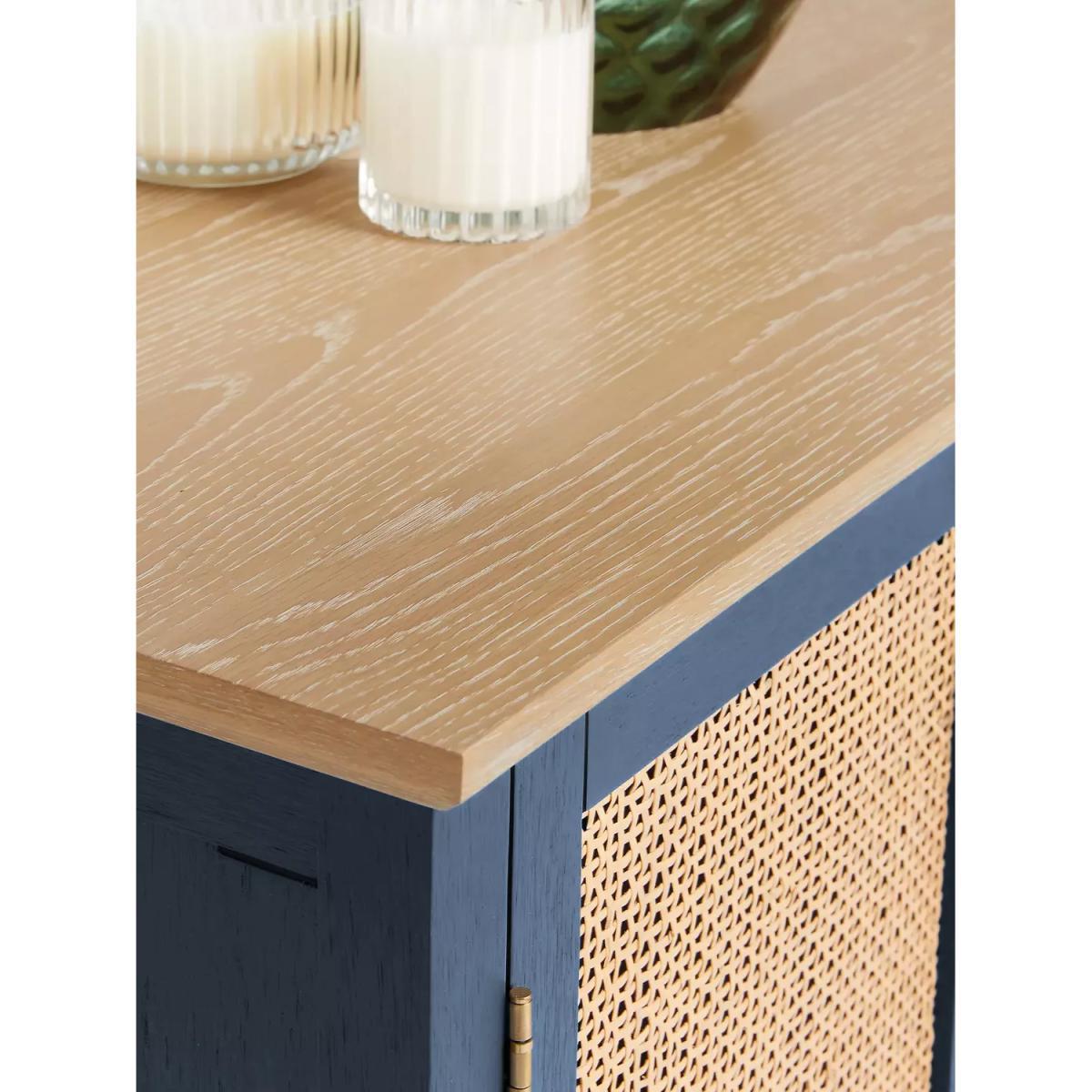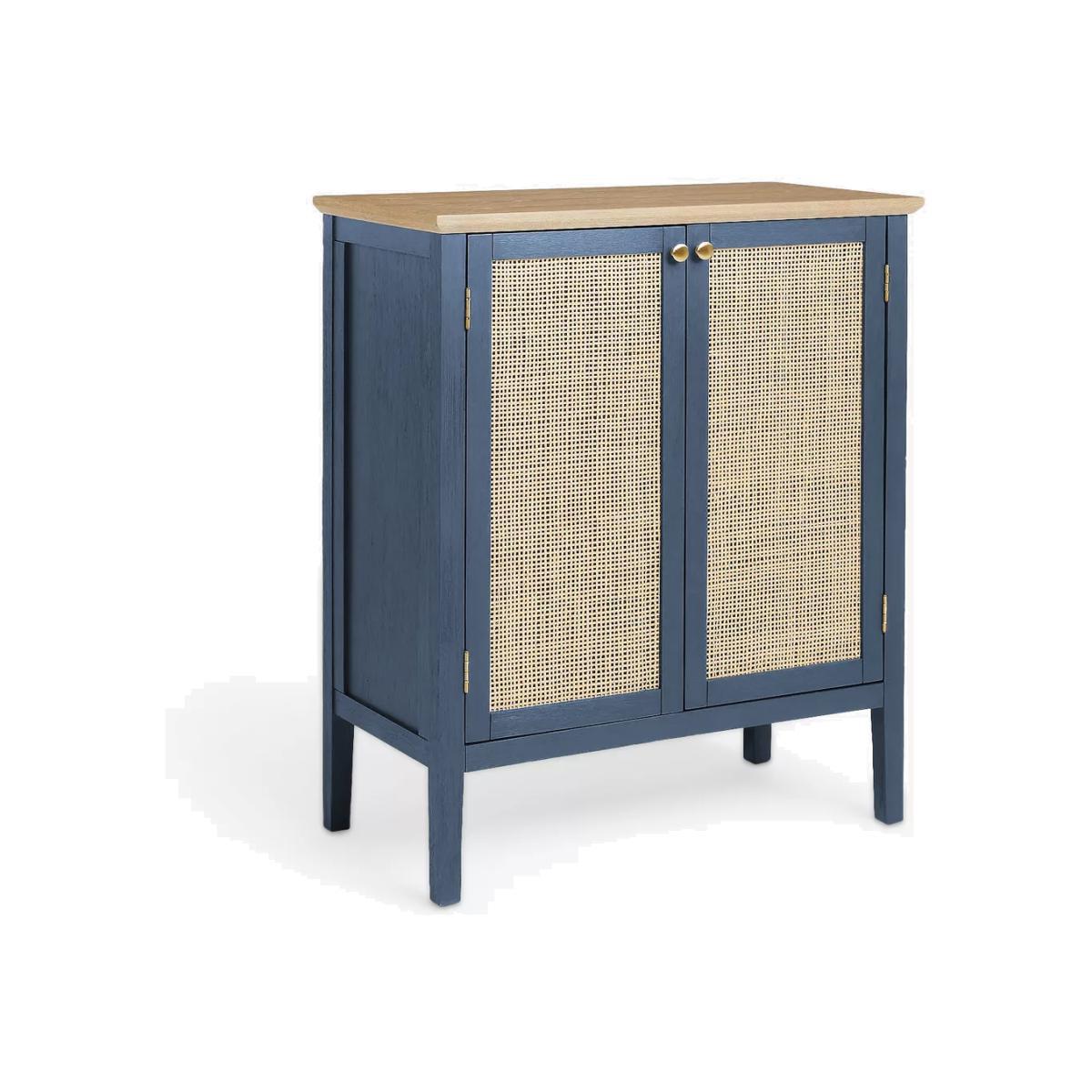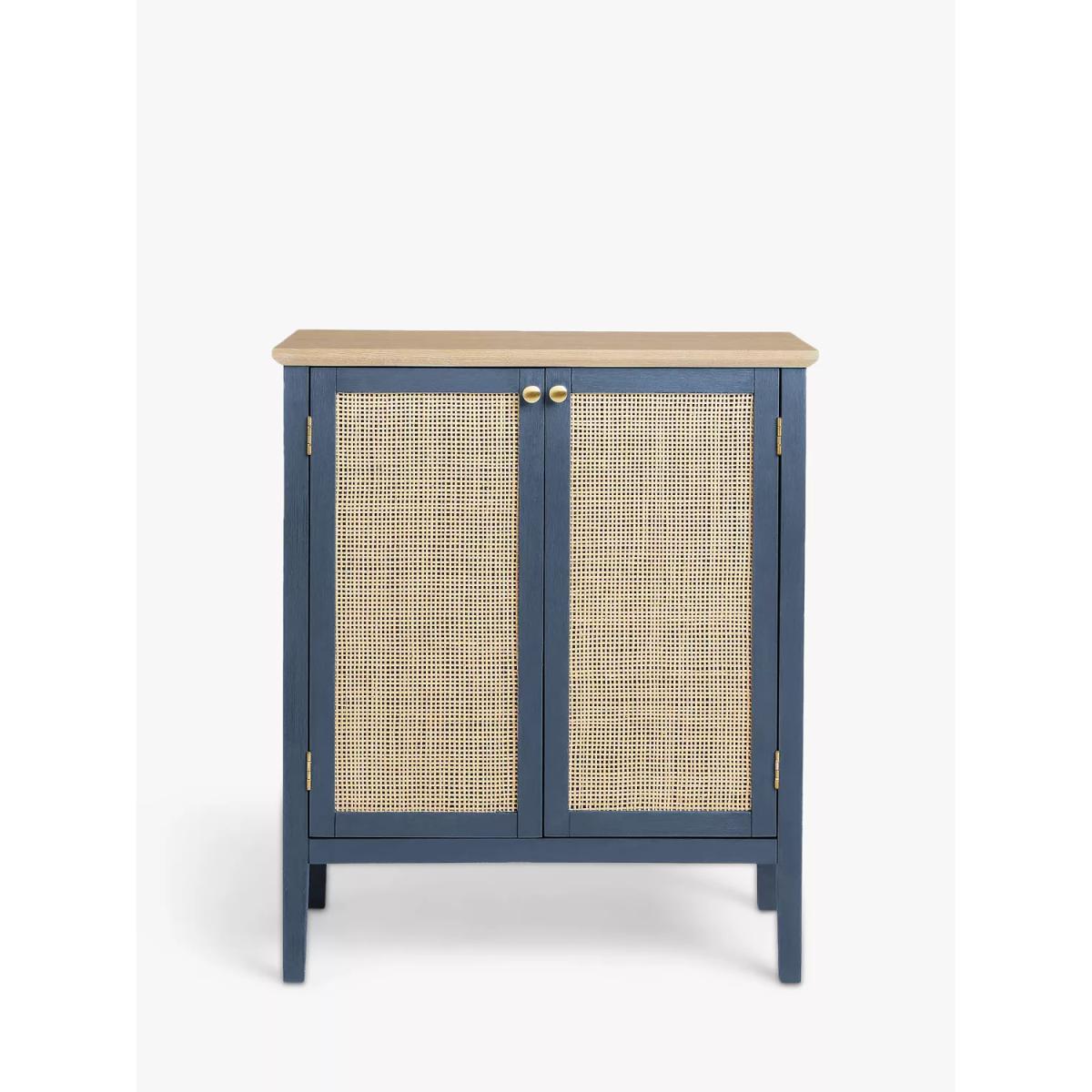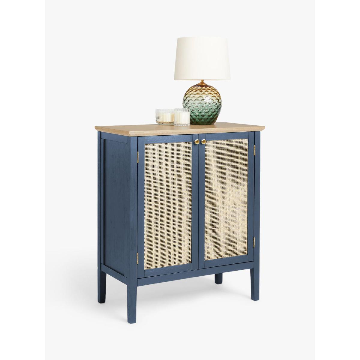 It's the modern country aesthetic that sells this storage cabinet, which is built from high-quality timbers using the best crafting techniques. Just the right size for storing spare crockery or decorative items, it's made from a combination of acacia wood, MDF and oak with natural rattan adding visual lightness to the front of the doors. The frame is painted to give your space an accent of colour, but we've kept the surface natural for the classic look. Want to see it first? You may want to see and get a feel for the furniture in one of our shops before ordering. We'll be able to tell you where the range you'd like to view is on display.