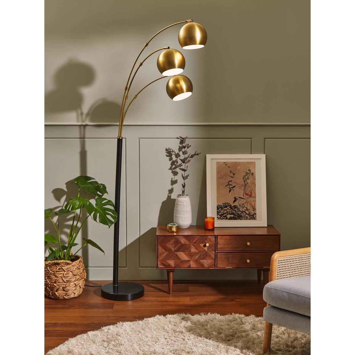 I love this floor lamp for its sleek, contemporary design, which makes it a versatile addition to both modern and minimal interiors. The arched arm and multi-head arrangement allow for flexible lighting, ideal for living rooms, reading nooks, or home offices. Its brass finish adds a touch of sophistication, making it a statement piece without overwhelming the space. When styling, consider placing it beside a neutral sofa or a reading chair to create an inviting corner. Practical tips include pairing it with dimmable bulbs to adjust the ambiance and ensuring the cable is discreetly managed for a clean look. Overall, this lamp combines form and function beautifully, making it a practical yet stylish lighting solution.