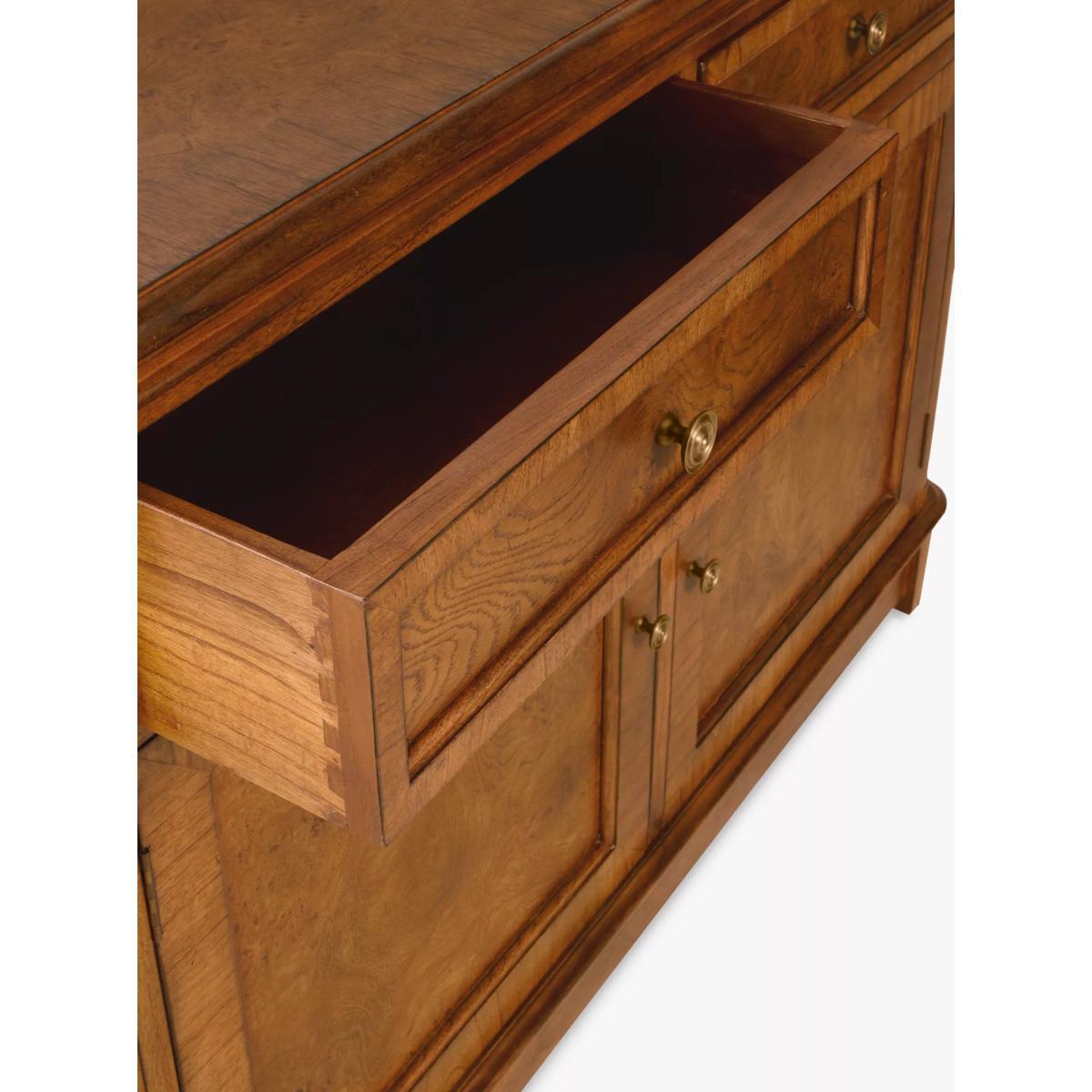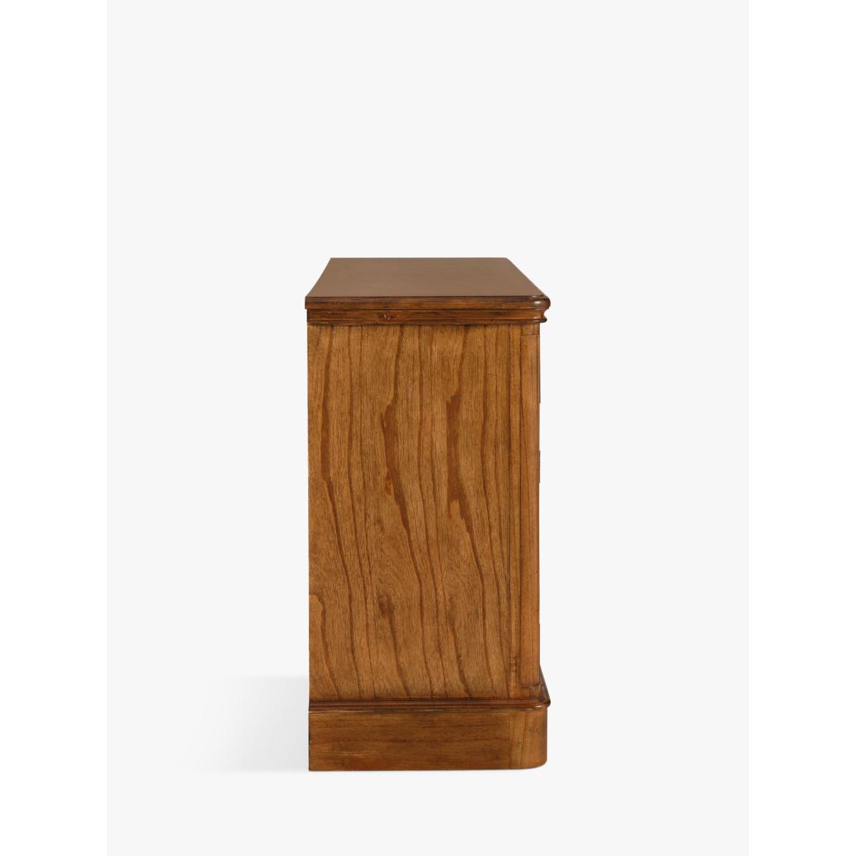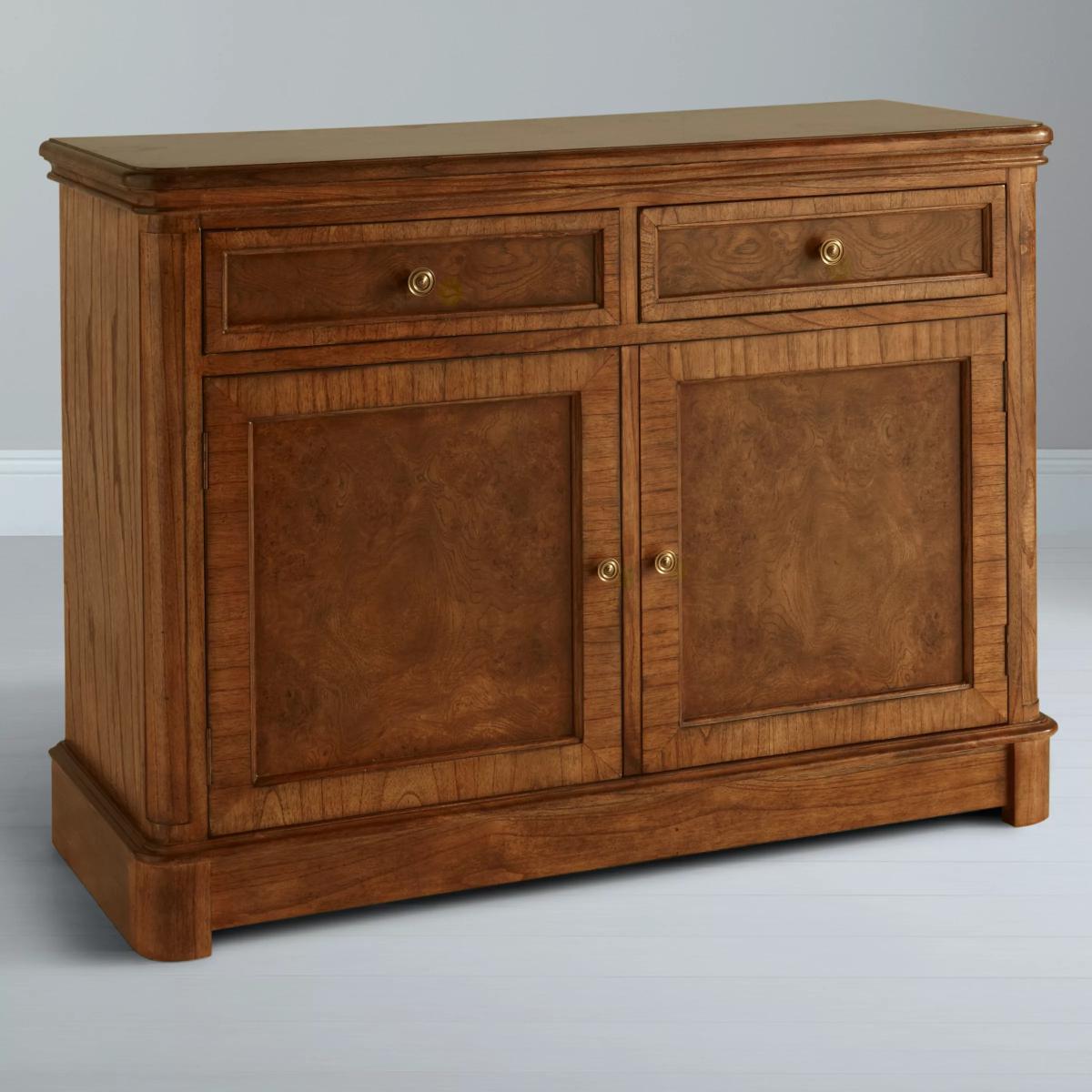 This formal sideboard with 2 drawers and 2 cupboards is made from melia oak solids and pippy oak veneers and is hand-polished with wax lacquer. It’s finished with antiqued brass knob handles and can provide essential storage space in your living room, dining room, bedroom or hallway. Pippy oak features small, tight clusters of knots, which appear sporadically in the growth of the tree. This feature is highly valued by master craftsmen for its decorative appearance. Melia ash is a fast growing tree, taking only 20-25 years to mature, and has been used for its stable and durable qualities. The cane used in Hemingway is natural and handmade This elegant furniture is inspired by the formal yet practical look of the late 19th century Arts and Crafts movement. Each piece in the Hemingway range is made from melia oak solids and pippy oak veneers, stained a rich deep colour, and hand-polished with wax lacquer. For a traditional finish, doors and drawers are finished with antiqued brass knob handles. The Hemingway range features a beautifully distressed finish, which makes each piece utterly unique to its owner. Please note: not all our ranges are on display in our shops.