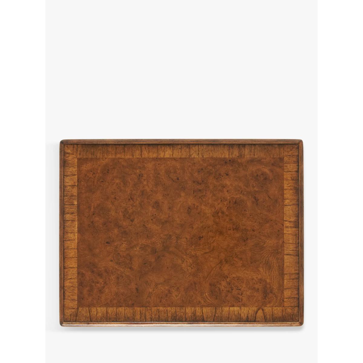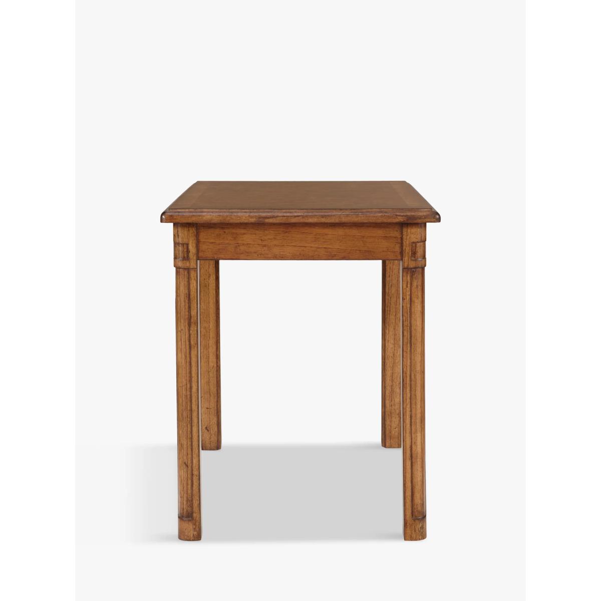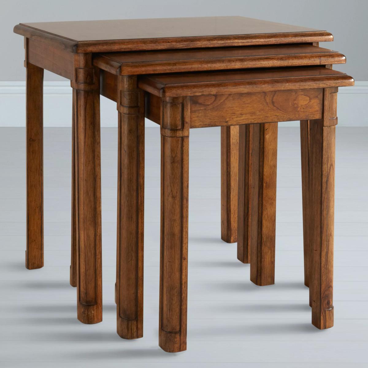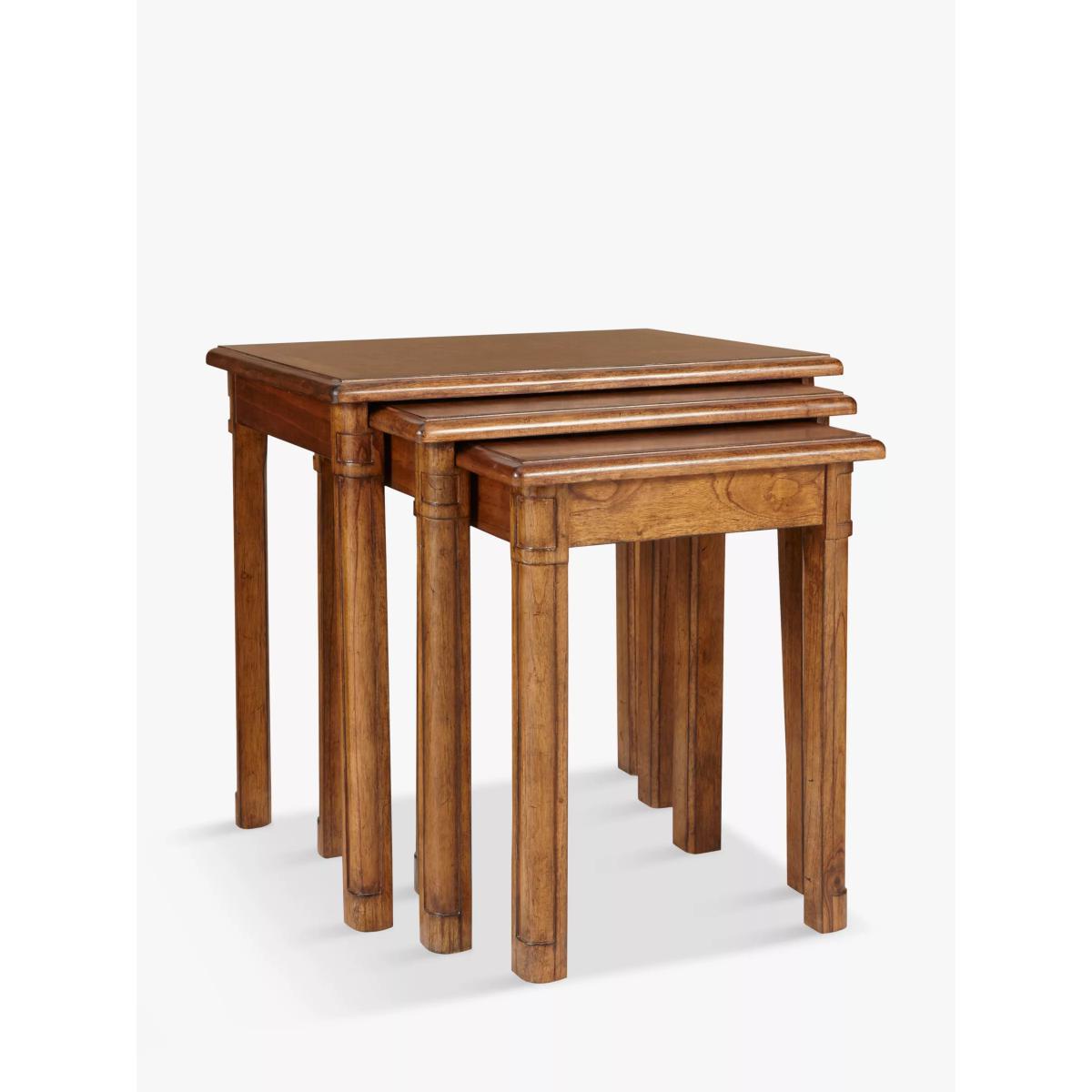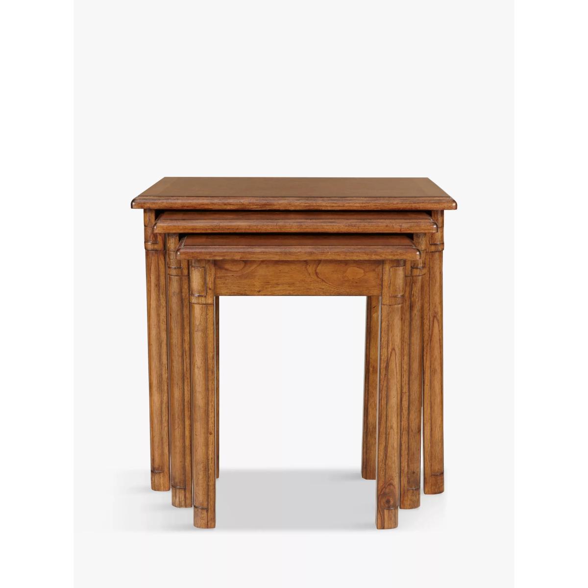 This formal nest of 3 tables is made from melia oak solids and pippy oak lacquered, hand-polished with wax lacquer, and would be a wonderful addition to your living room, dining room, bedroom or hallway. Alternatively, split the tables between rooms - perfect for a lamp of a vase of flowers. Pippy oak features small, tight clusters of knots, which appear sporadically in the growth of the tree. This feature is highly valued by master craftsmen for its decorative appearance. Melia ash is a fast growing tree, taking only 20-25 years to mature, and has been used for its stable and durable qualities. The cane used in Hemingway is natural and handmade. This elegant furniture is inspired by the formal yet practical look of the late 19th century Arts and Crafts movement. Each piece in the Hemingway range is made from melia oak solids and pippy oak lacquered, stained a rich deep colour, and hand-polished with wax unusual. For a traditional finish, doors and drawers are finished with antiqued brass knob handles. The Hemingway range features a beautifully distressed finish, which makes each piece utterly unique to its owner. Please note: not all our ranges are on display in our shops.