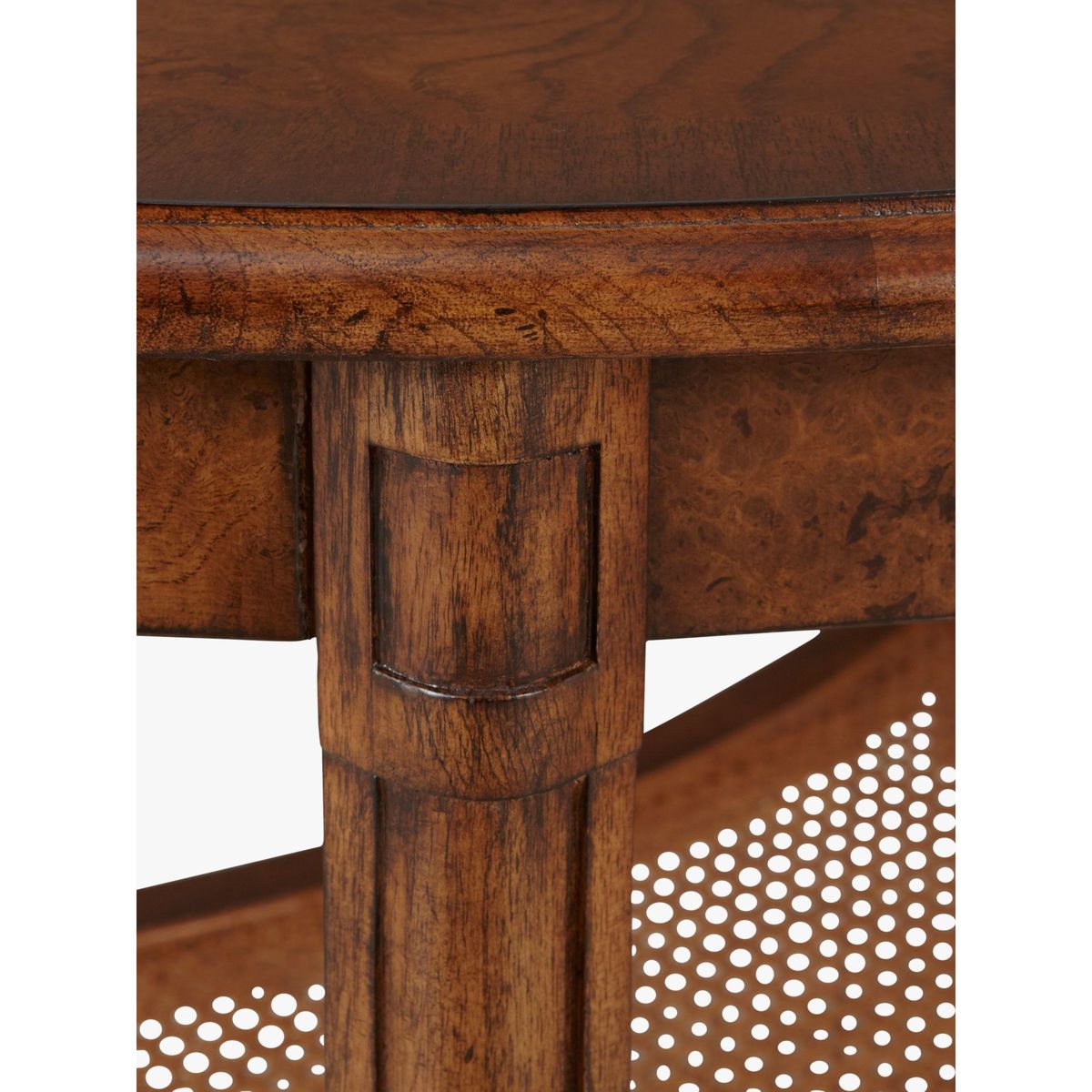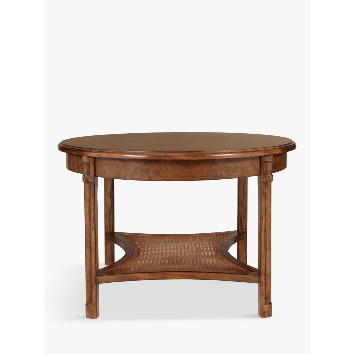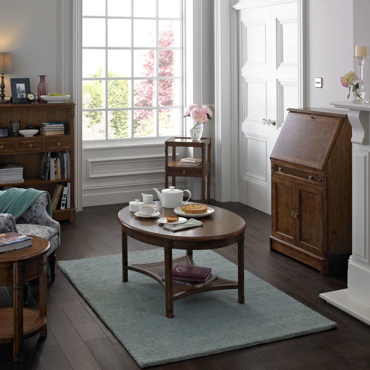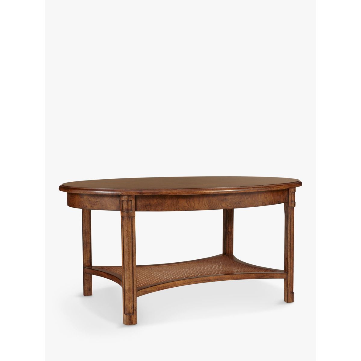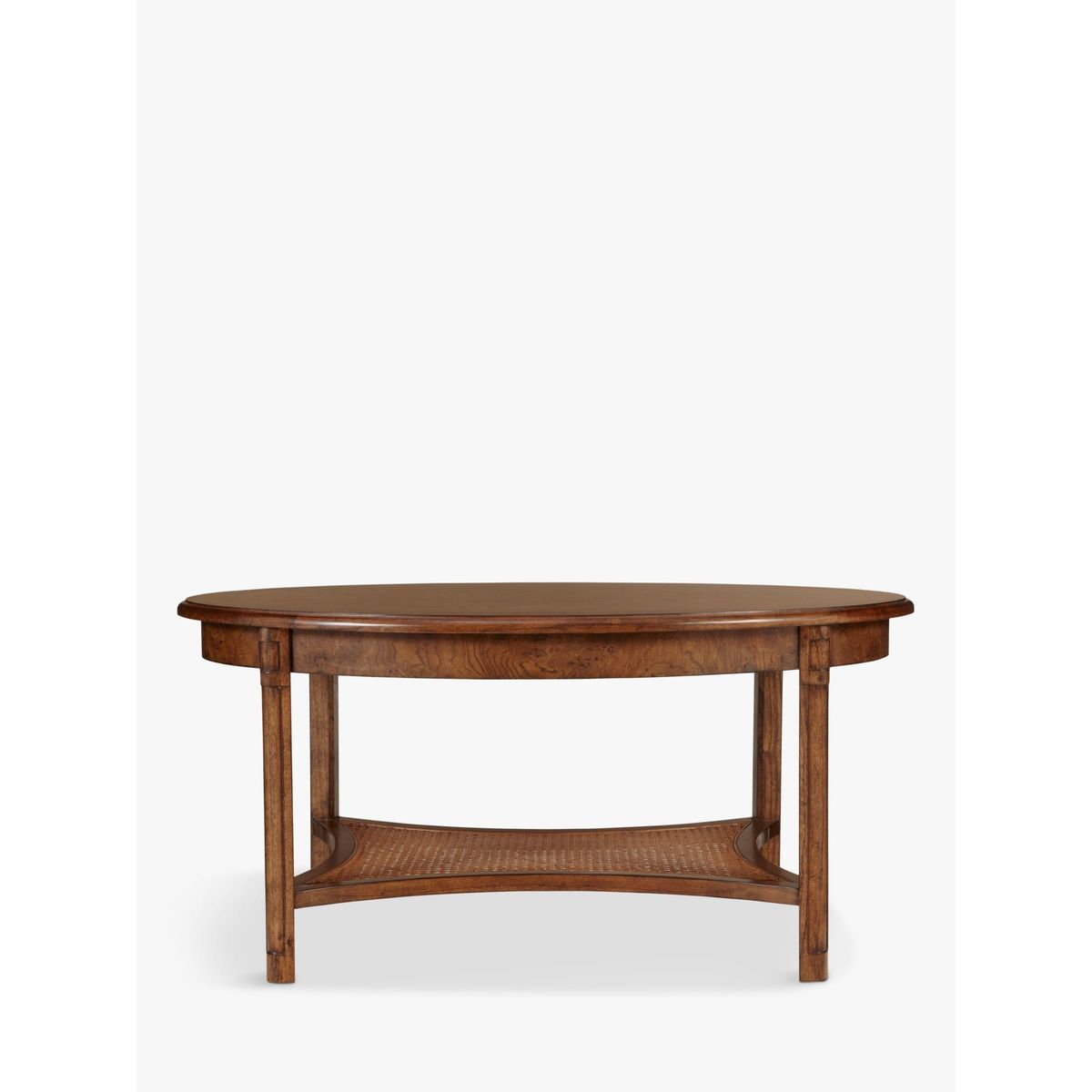 This formal coffee table is made from melia oak solids and pippy oak lacquered. It features woven cane shelf and is hand-polished with wax lacquer. The perfect focal point for entertaining guests in your living room. Pippy oak features small, tight clusters of knots, which appear sporadically in the growth of the tree. This feature is highly valued by master craftsmen for its decorative appearance. Melia ash is a fast growing tree, taking only 20-25 years to mature, and has been used for its stable and durable qualities. The cane used in Hemingway is natural and handmade. This elegant furniture is inspired by the formal yet practical look of the late 19th century Arts and Crafts movement. Each piece in the Hemingway range is made from melia oak solids and pippy oak lacquered, stained a rich deep colour, and hand-polished with wax unusual. For a traditional finish, doors and drawers are finished with antiqued brass knob handles. The Hemingway range features a beautifully distressed finish, which makes each piece utterly unique to its owner. Please note: not all our ranges are on display in our shops.