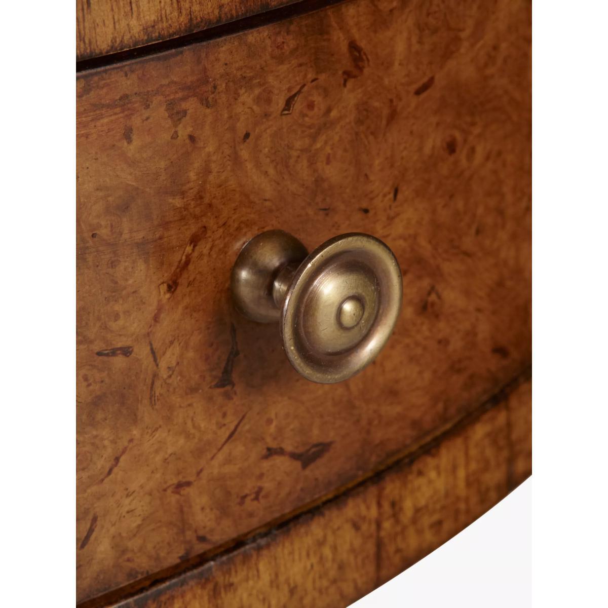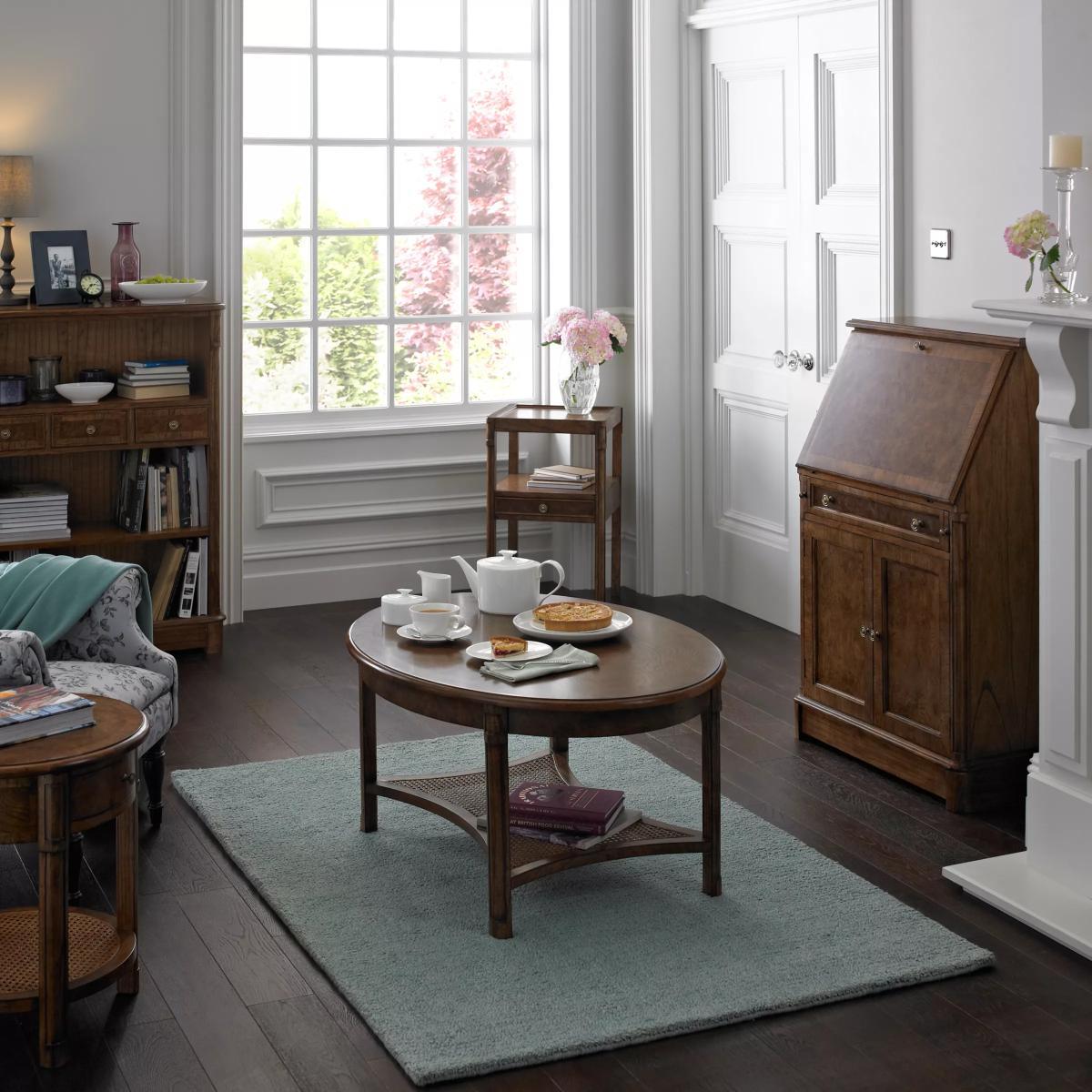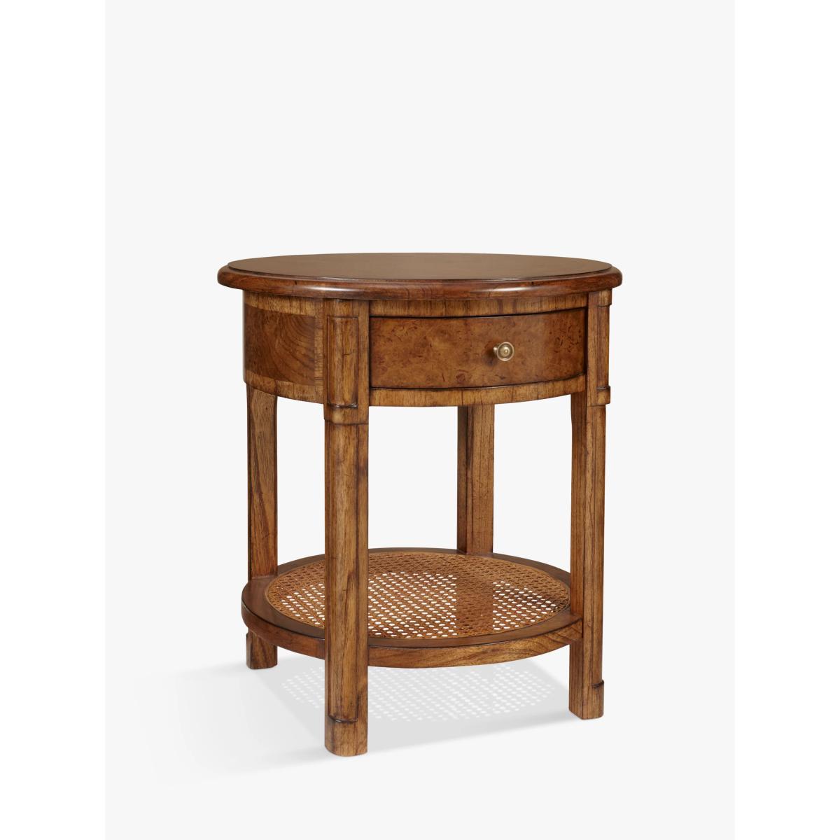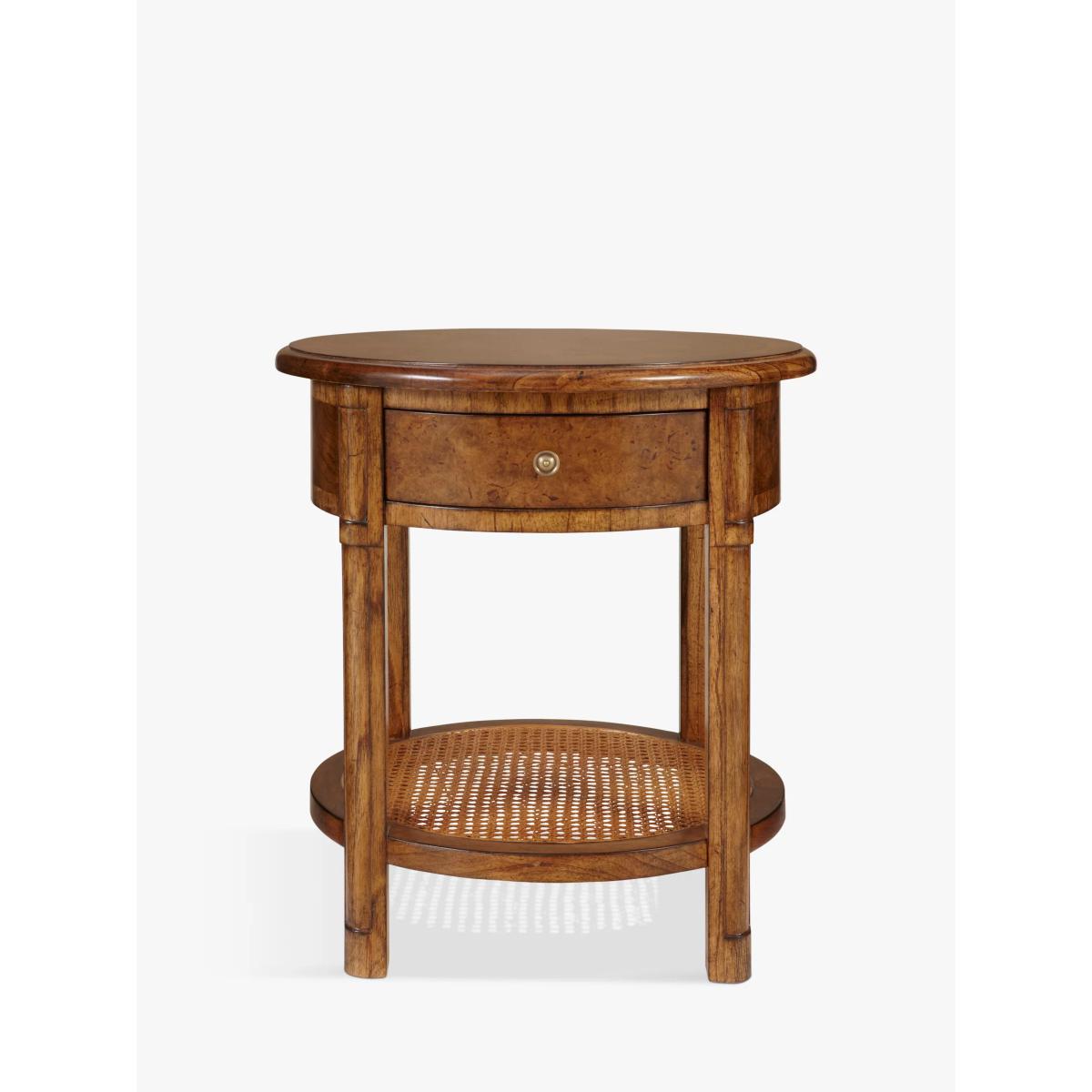 This Formal lamp table comes with a single drawer and woven cane shelf. It’s made from melia oak solids and pippy oak lacquered and is hand-polished with wax lacquer. Finished with antiqued brass knob handles, it makes a lovely addition to your living room, dining room, bedroom or even hallway. Pippy oak features small, tight clusters of knots, which appear sporadically in the growth of the tree. This feature is highly valued by master craftsmen for its decorative appearance. Melia ash is a fast growing tree, taking only 20-25 years to mature, and has been used for its stable and durable qualities. The cane used in Hemingway is natural and handmade. This elegant furniture is inspired by the formal yet practical look of the late 19th century Arts and Crafts movement. Each piece in the Hemingway range is made from melia oak solids and pippy oak lacquered, stained a rich deep colour, and hand-polished with wax unusual. For a traditional finish, doors and drawers are finished with antiqued brass knob handles. The Hemingway range features a beautifully distressed finish, which makes each piece utterly unique to its owner. Please note: not all our ranges are on display in our shops.