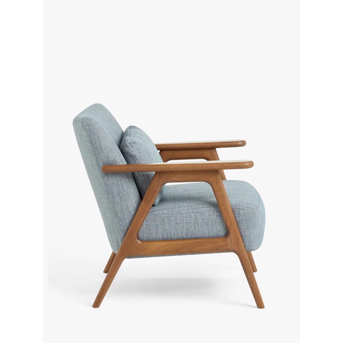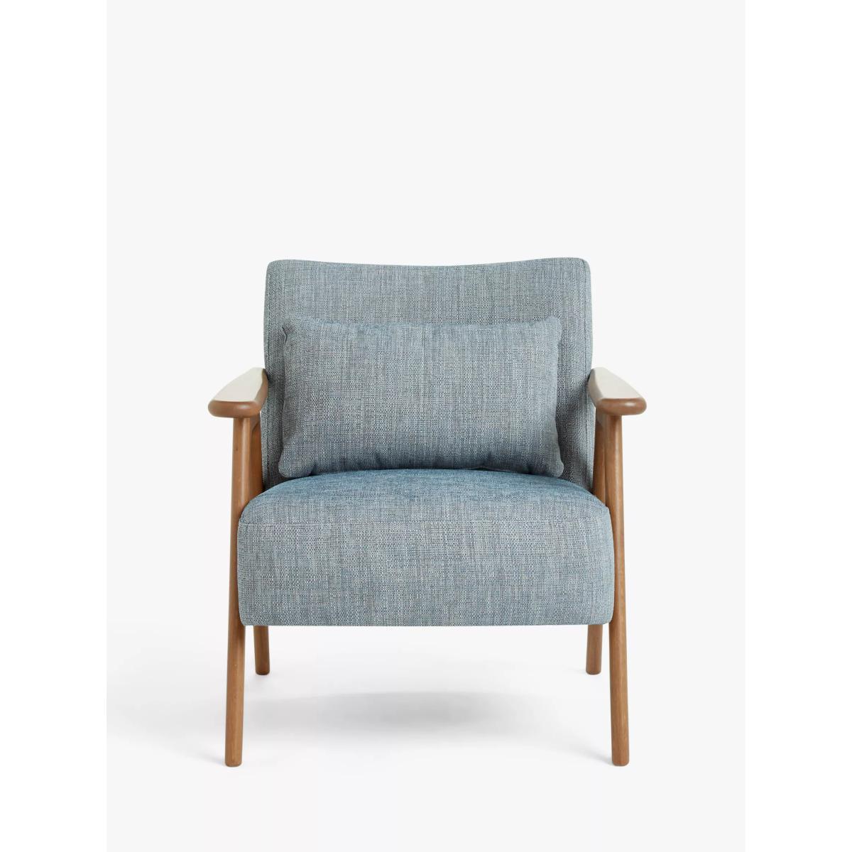 Product Information The beautifully crafted Hendricks armchair, with an exposed oak frame, and mid-century style complements any interior. It's the little things At John Lewis & Partners we care about our furniture; how it's designed, the materials used and the people who make it. That's why every detail is carefully considered, with more than 20 quality checks, to ensure you're as proud of it as we are. Want to see it first? You may want to see and get a feel for this piece of furniture in one of our shops before ordering. We'll be able to tell you where the range you'd like to view is on display.